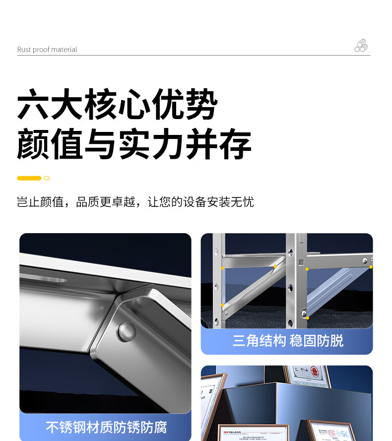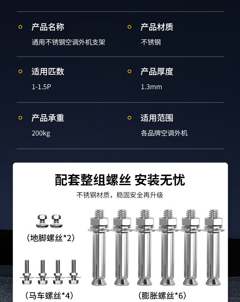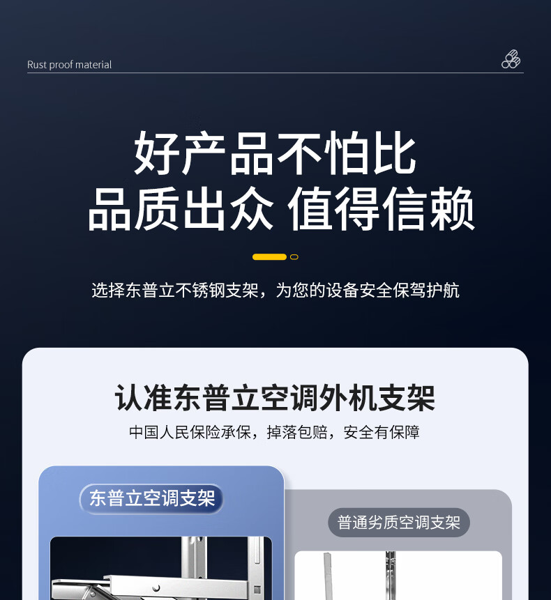 东普立空调支架加厚不锈钢空调外机支架加固空调室外架子空调挂架适用于美的格力奥克斯海尔等1-1.5P
