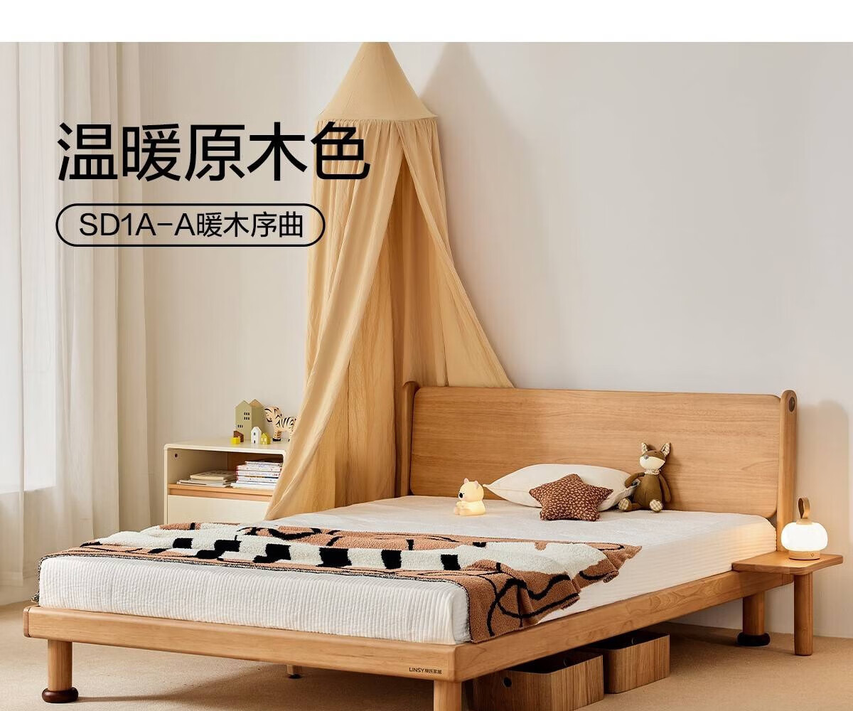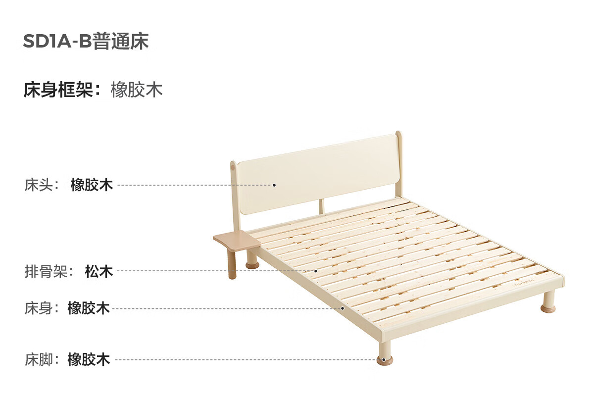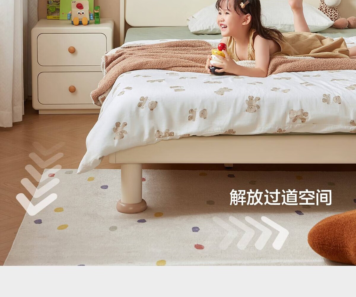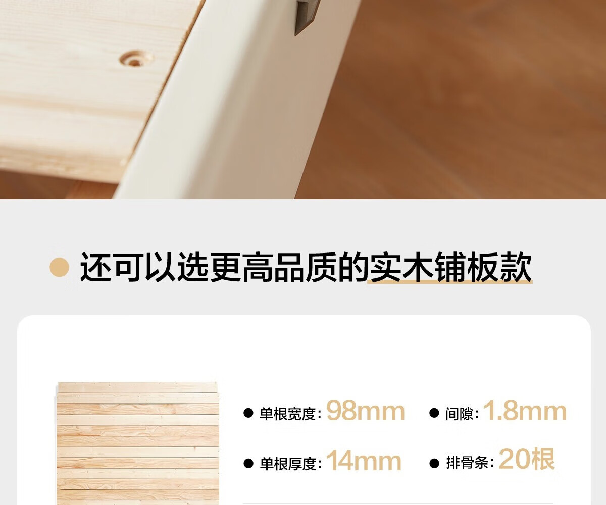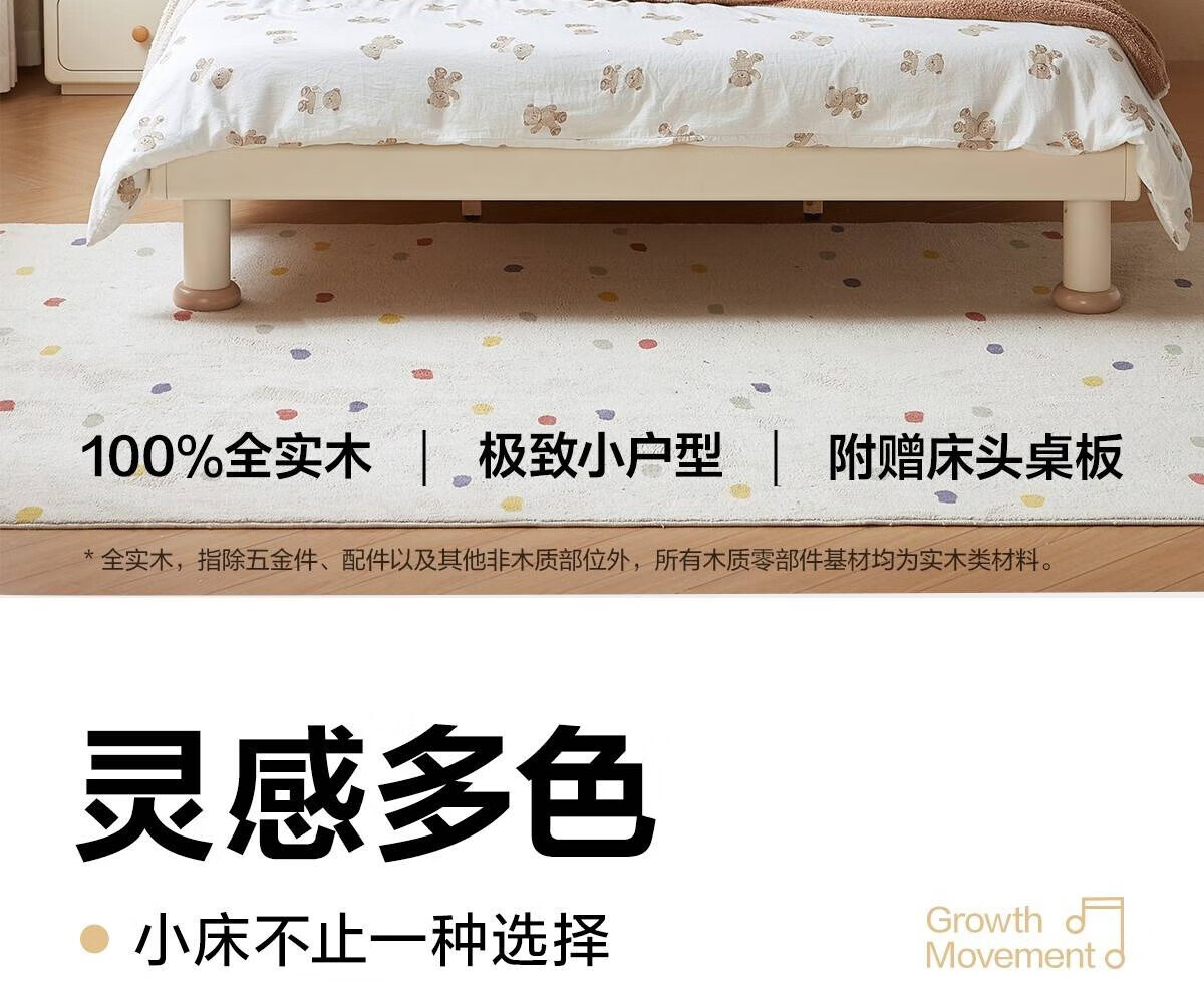 林氏家居实木儿童床现代简约男孩女孩大板床家用卧室青少年单人床SD1A 【奶油白|床铺板】床+13cm床垫 1.35x2米