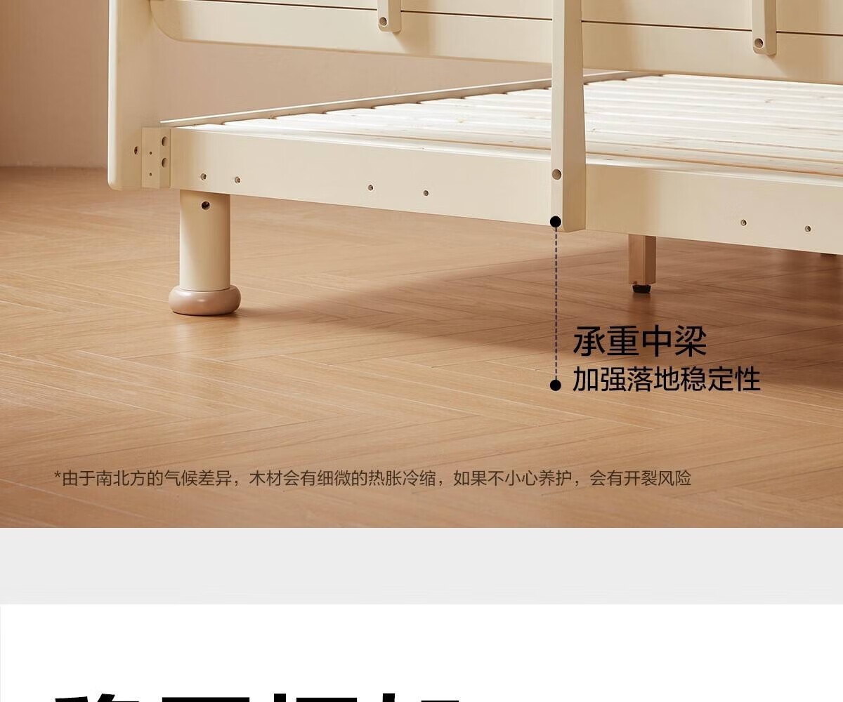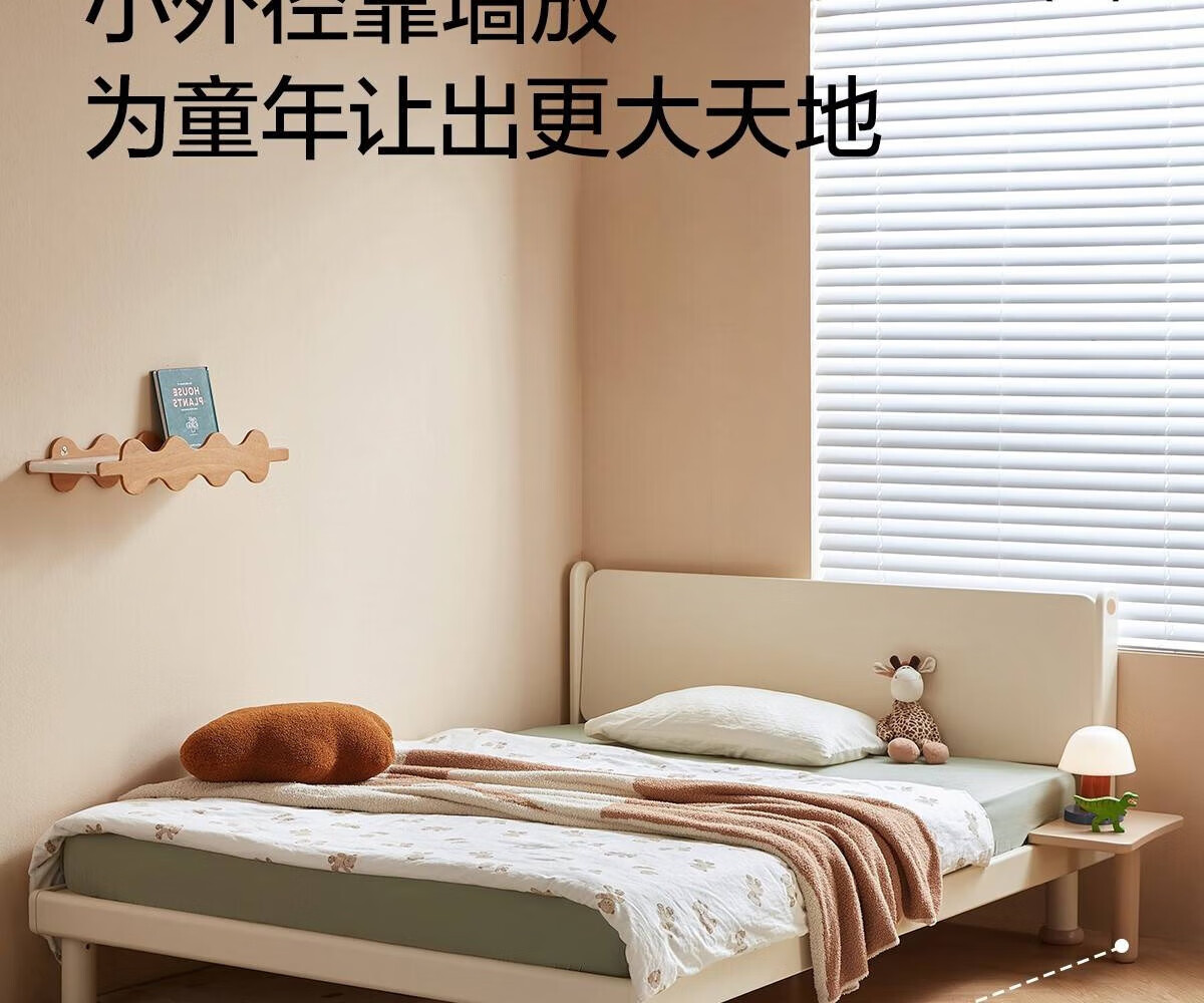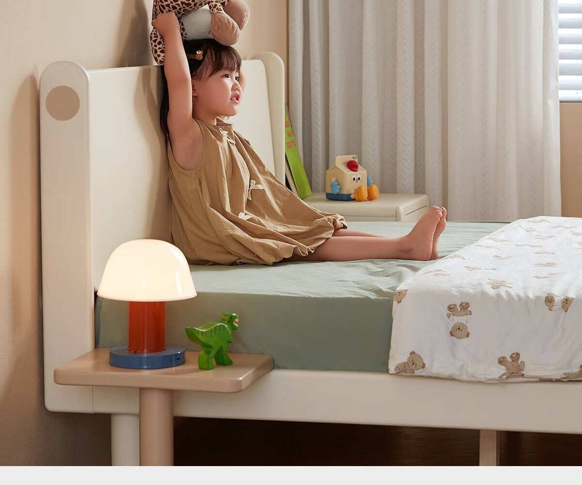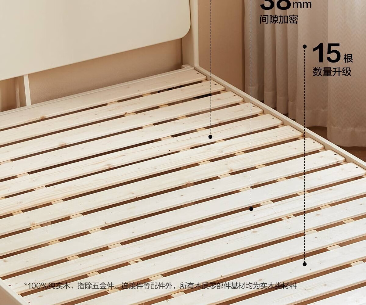 林氏家居实木儿童床现代简约男孩女孩大板床家用卧室青少年单人床SD1A 【奶油白|床铺板】床+13cm床垫 1.35x2米
