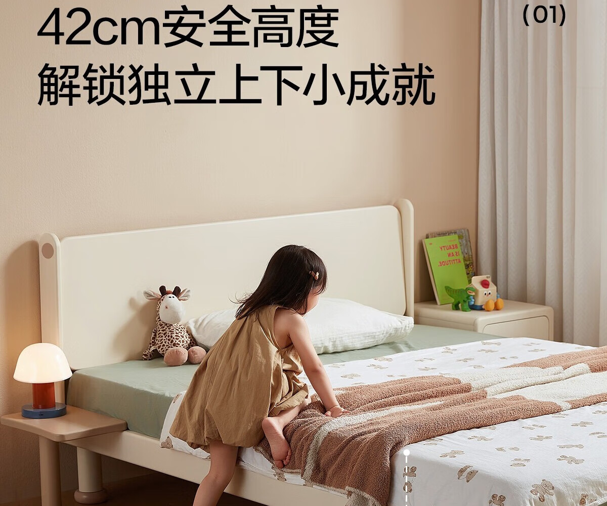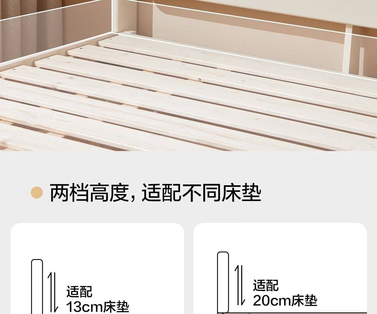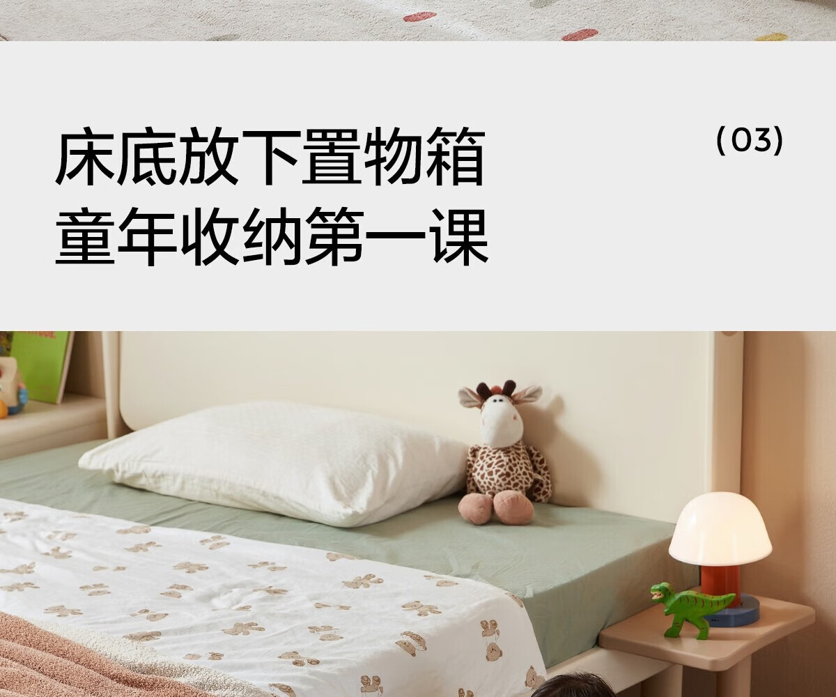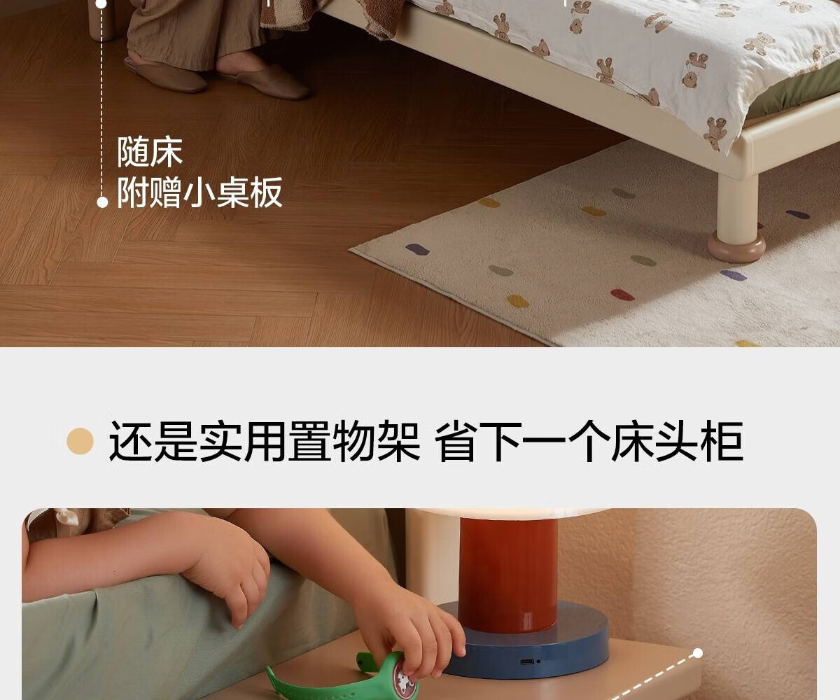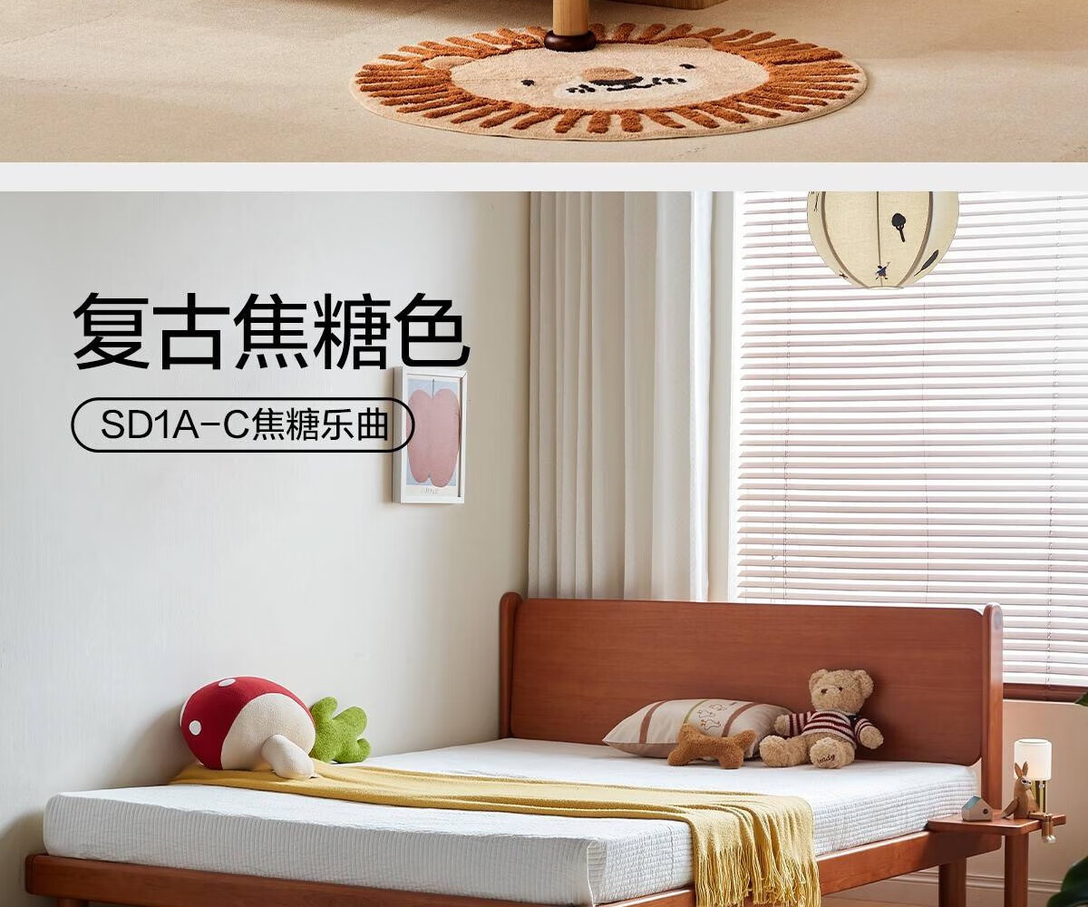 林氏家居实木儿童床现代简约男孩女孩大板床家用卧室青少年单人床SD1A 【奶油白|床铺板】床+13cm床垫 1.35x2米
