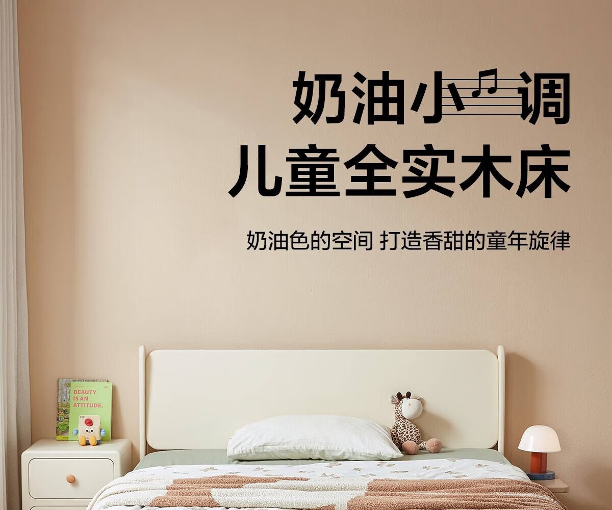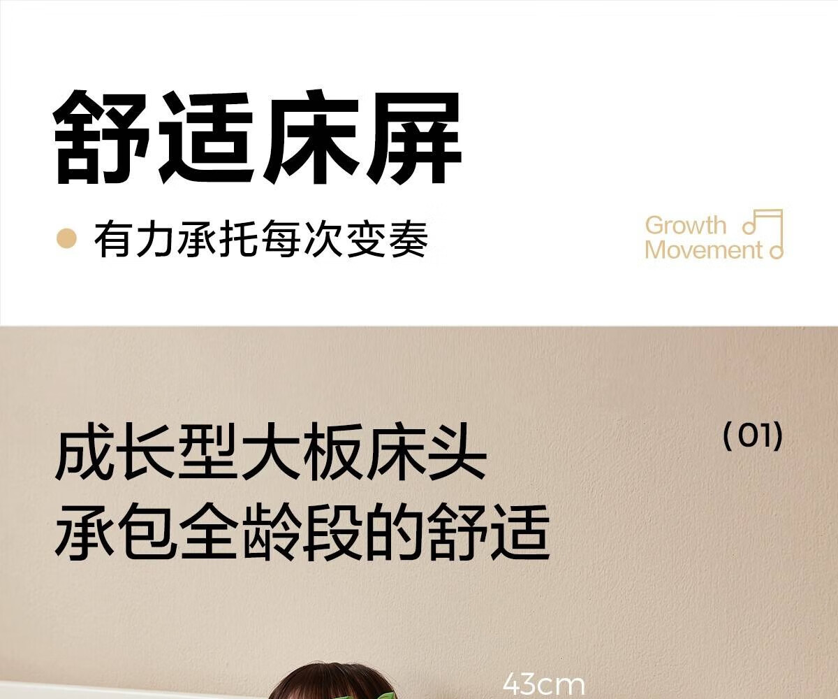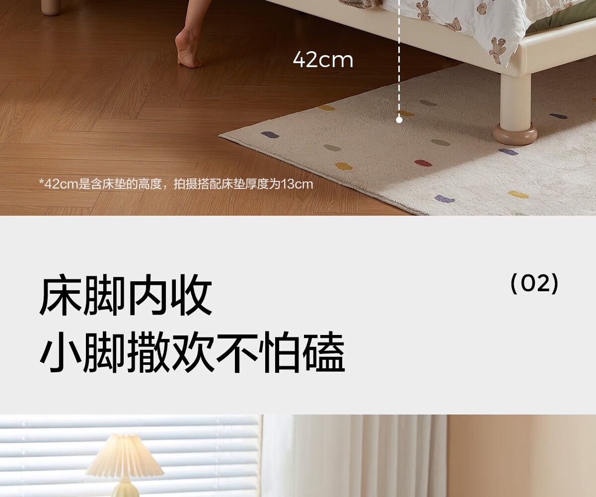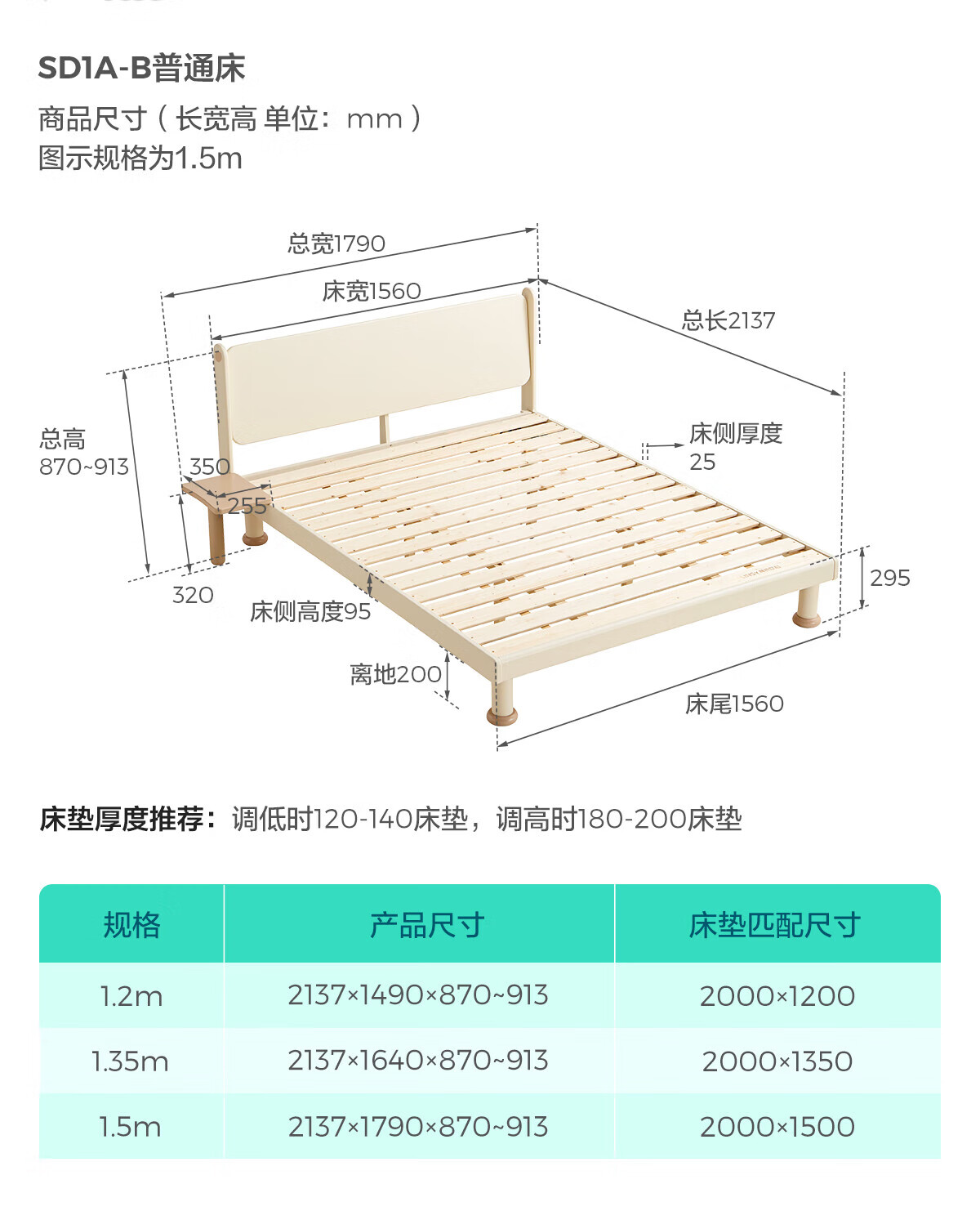 林氏家居实木儿童床现代简约男孩女孩大板床家用卧室青少年单人床SD1A 【奶油白|床铺板】床+13cm床垫 1.35x2米