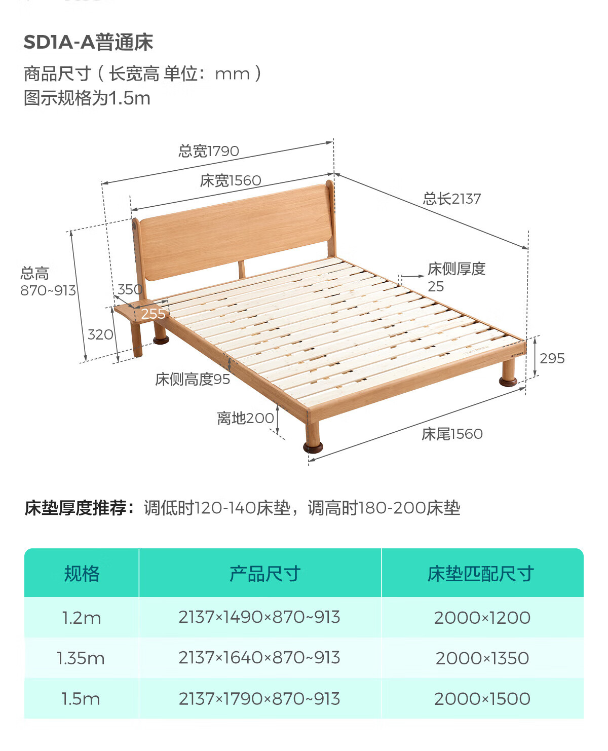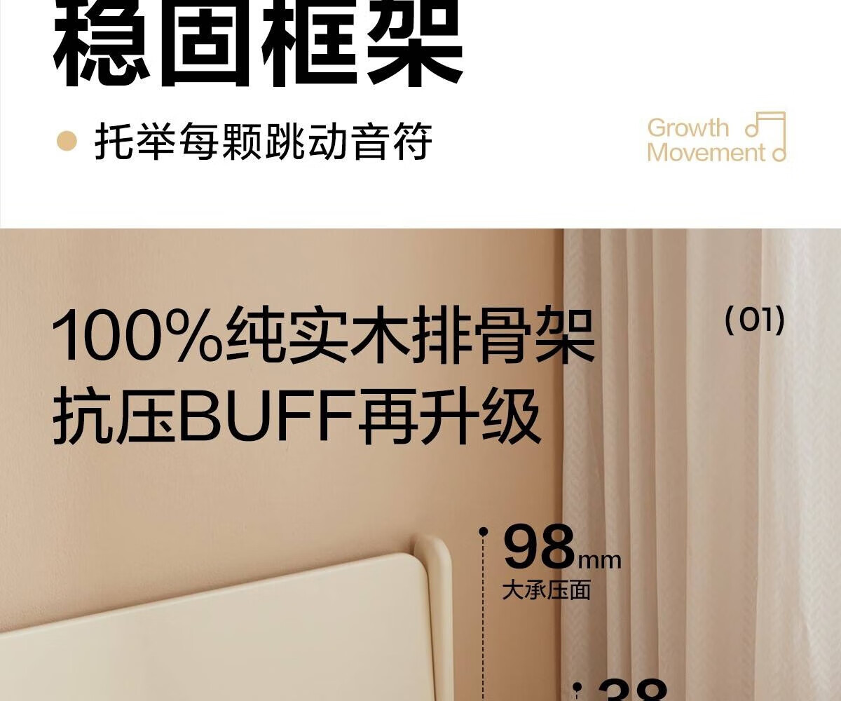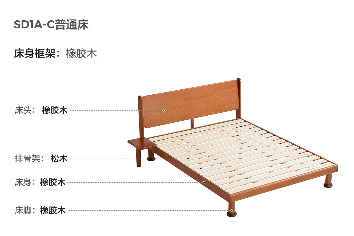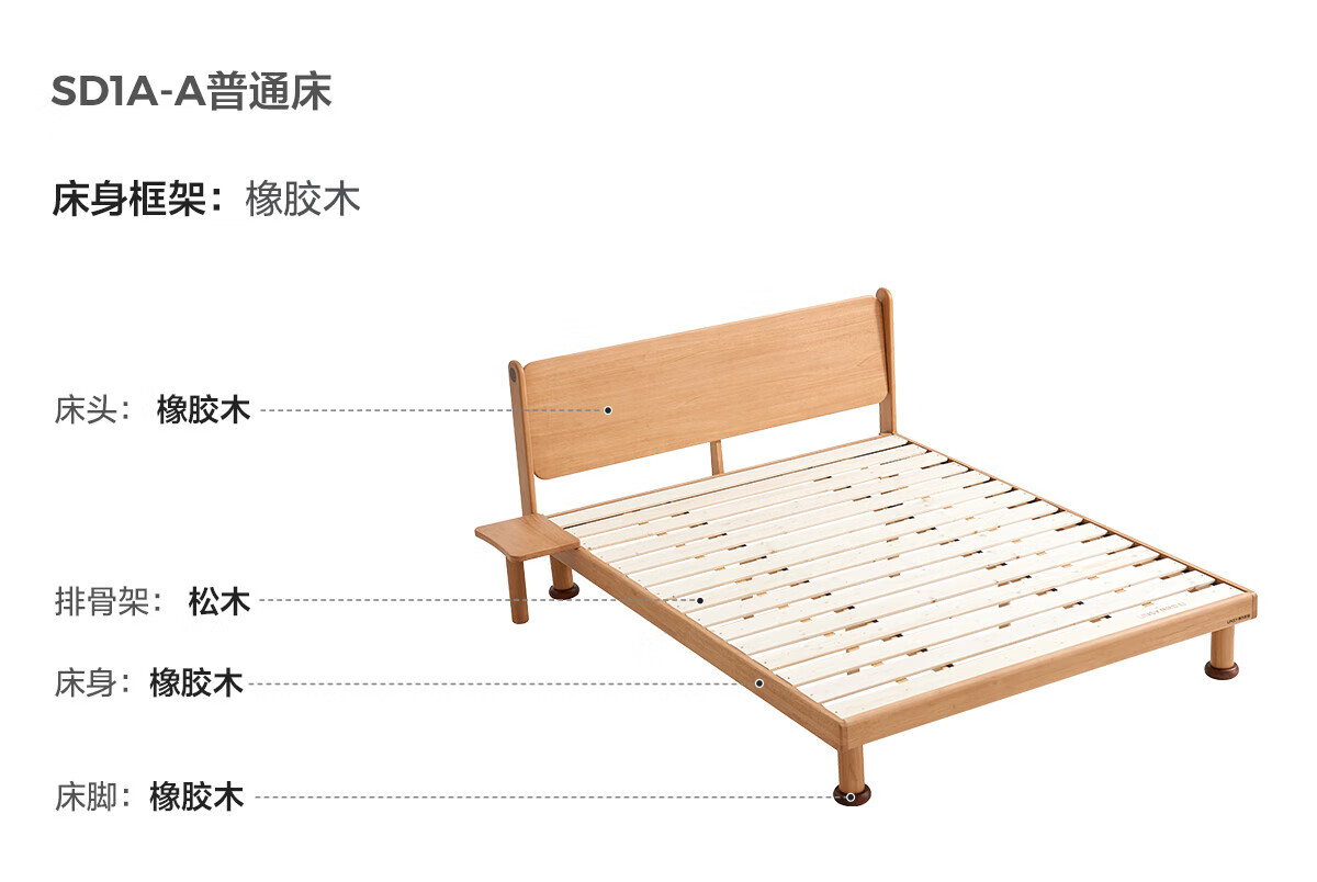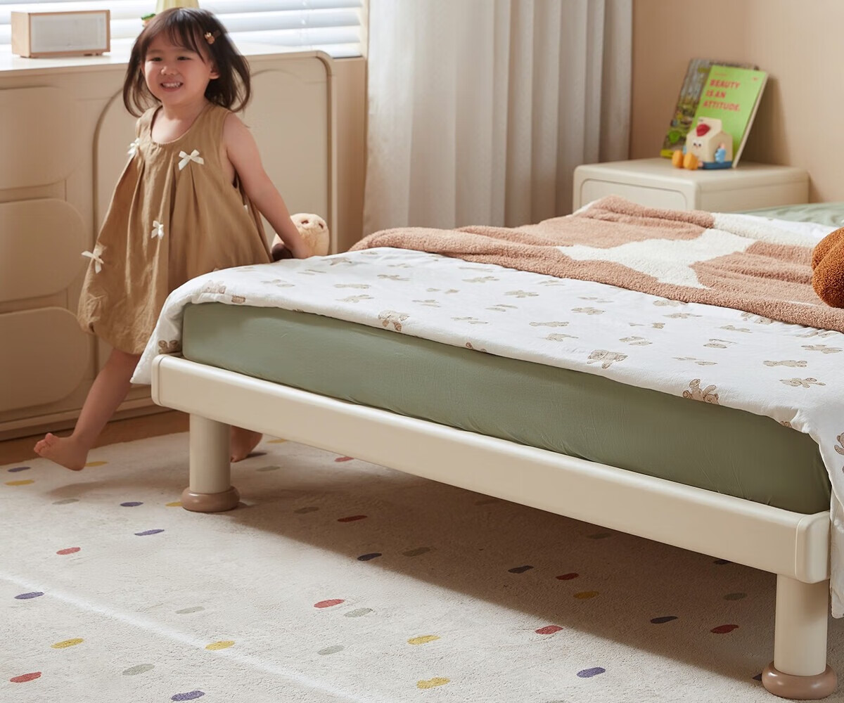 林氏家居实木儿童床现代简约男孩女孩大板床家用卧室青少年单人床SD1A 【奶油白|床铺板】床+13cm床垫 1.35x2米