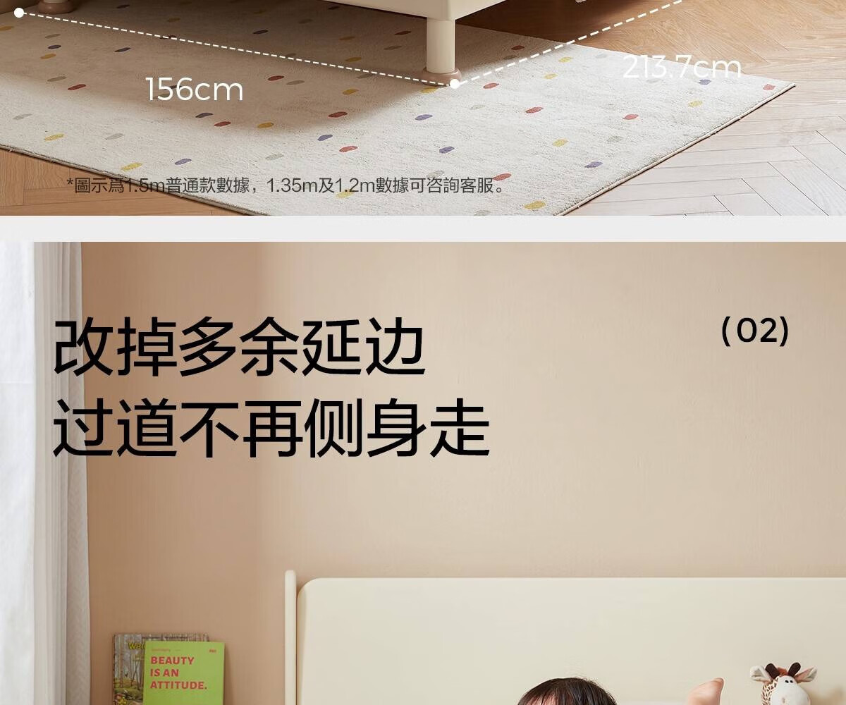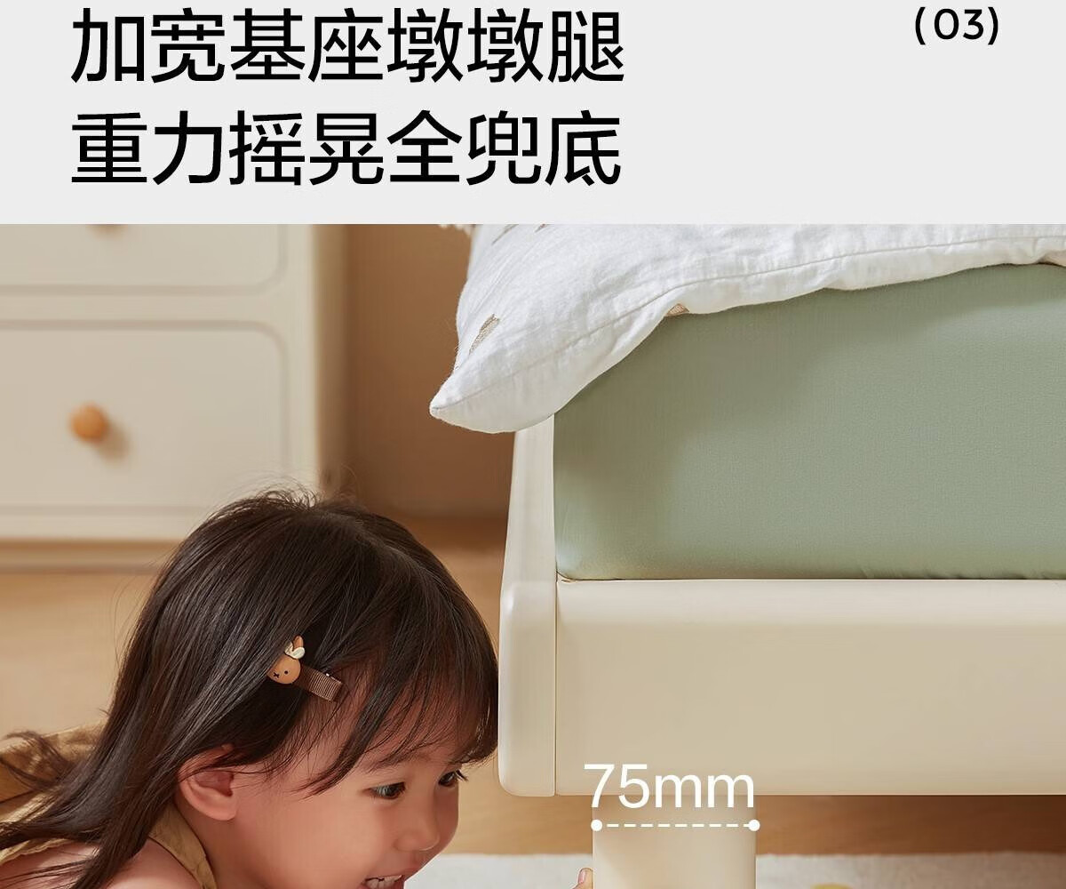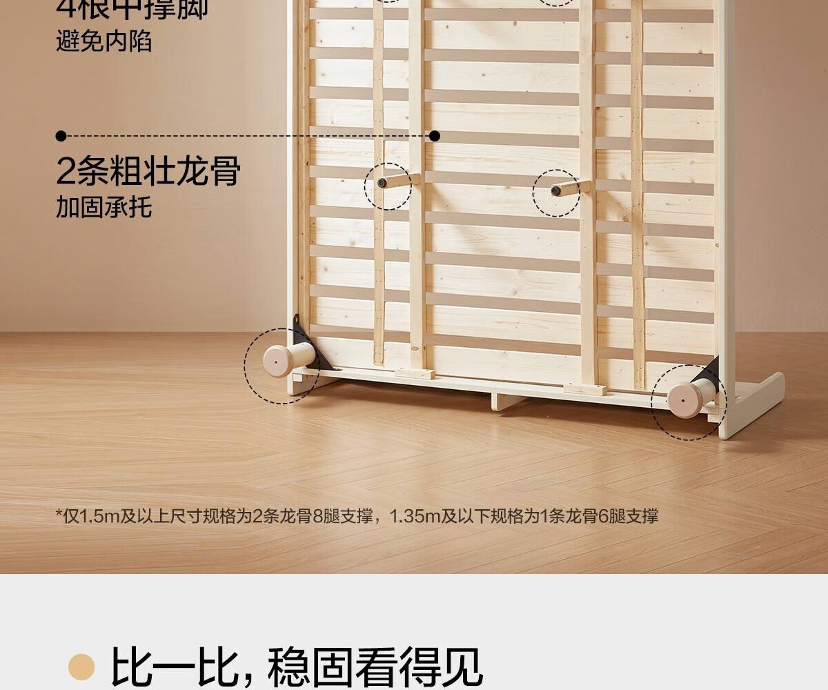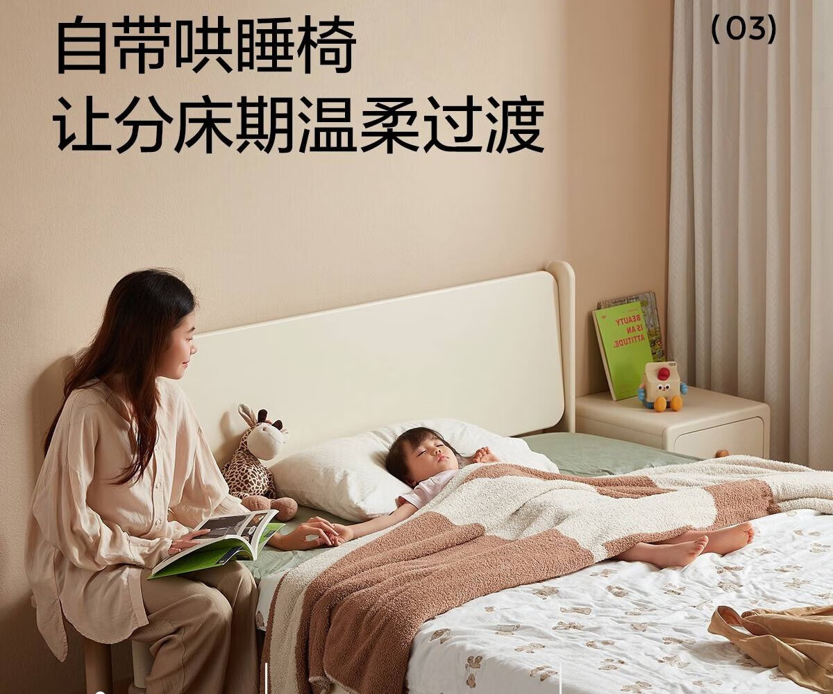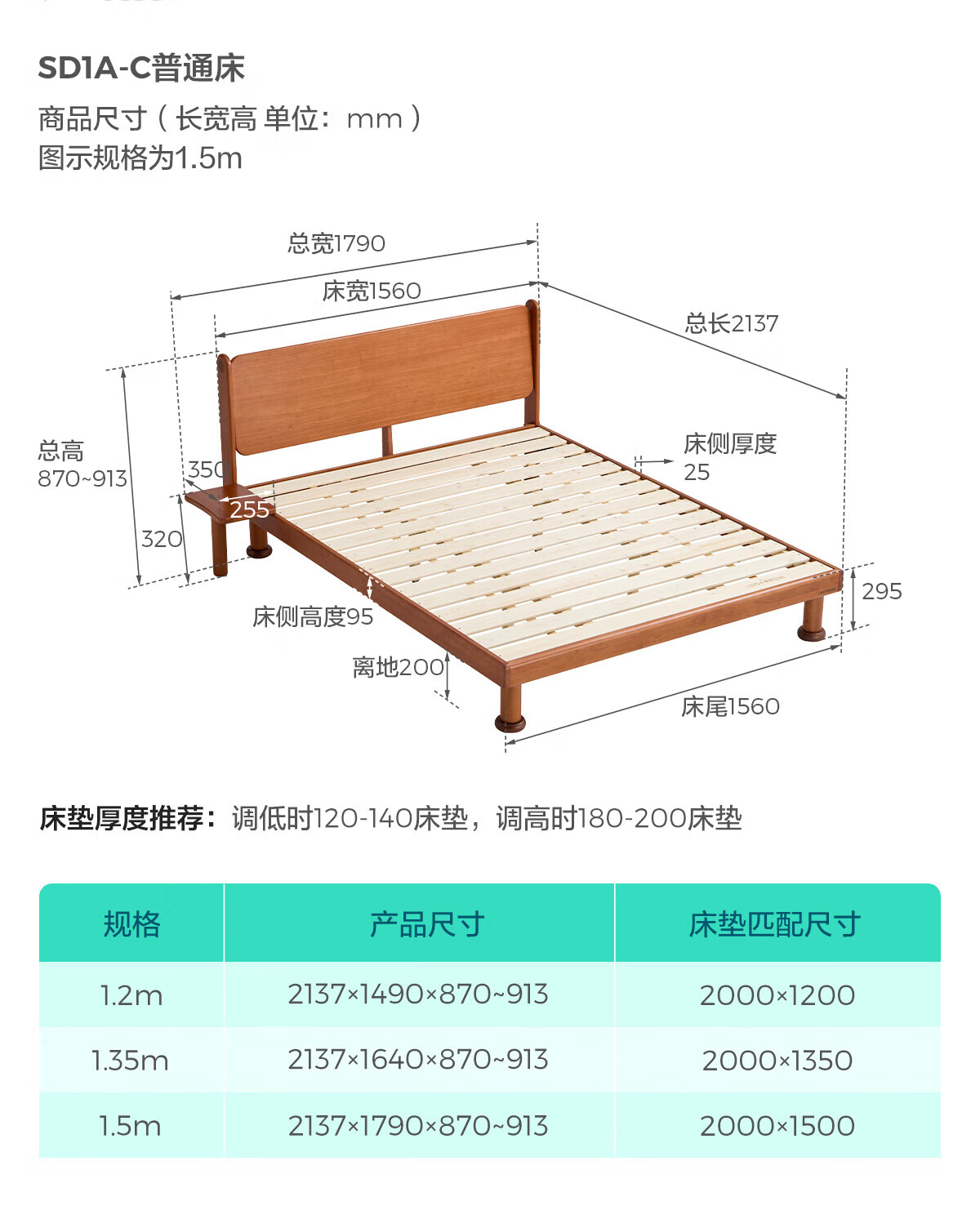 林氏家居实木儿童床现代简约男孩女孩大板床家用卧室青少年单人床SD1A 【奶油白|床铺板】床+13cm床垫 1.35x2米