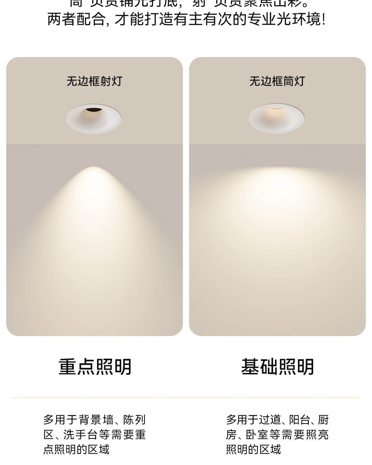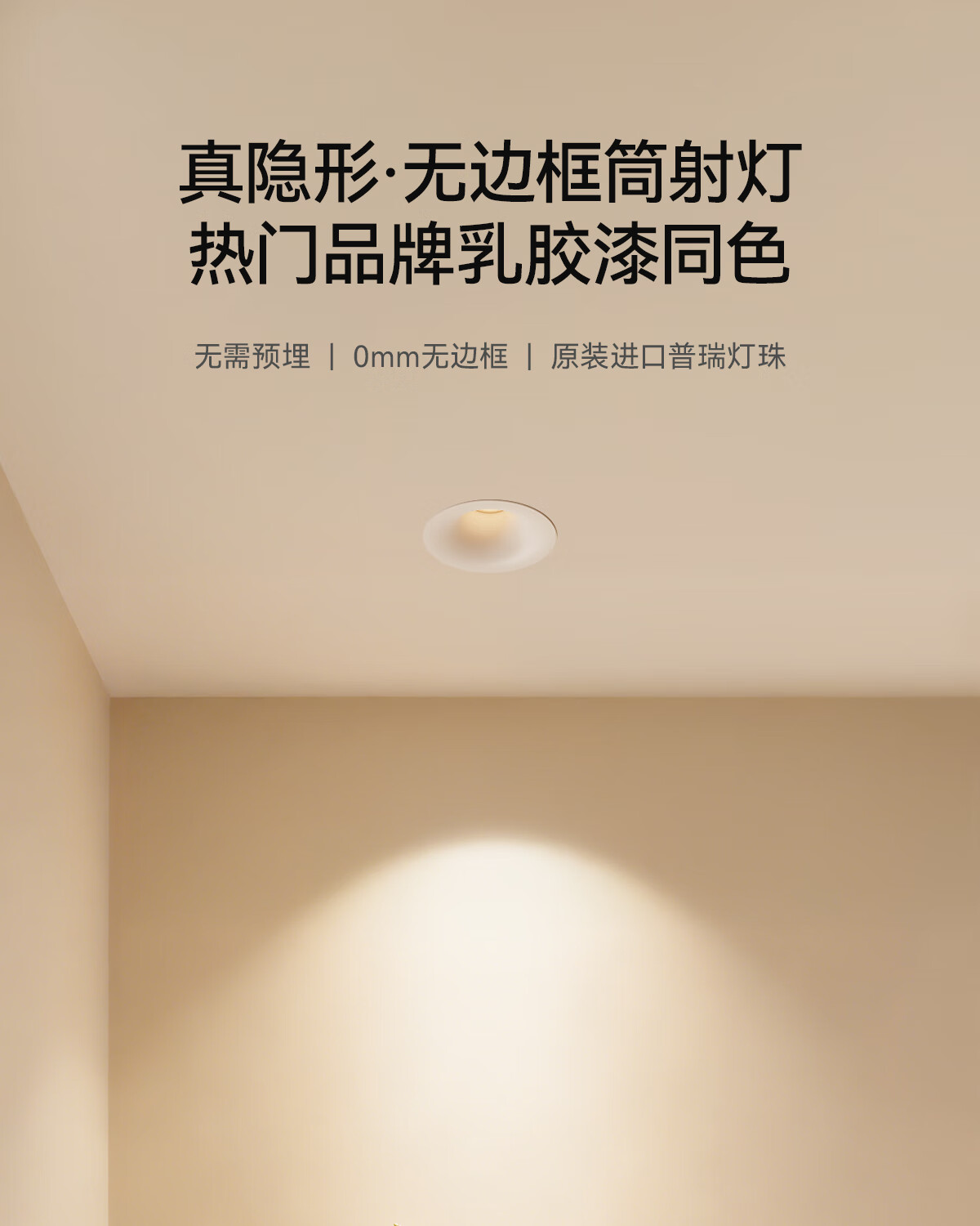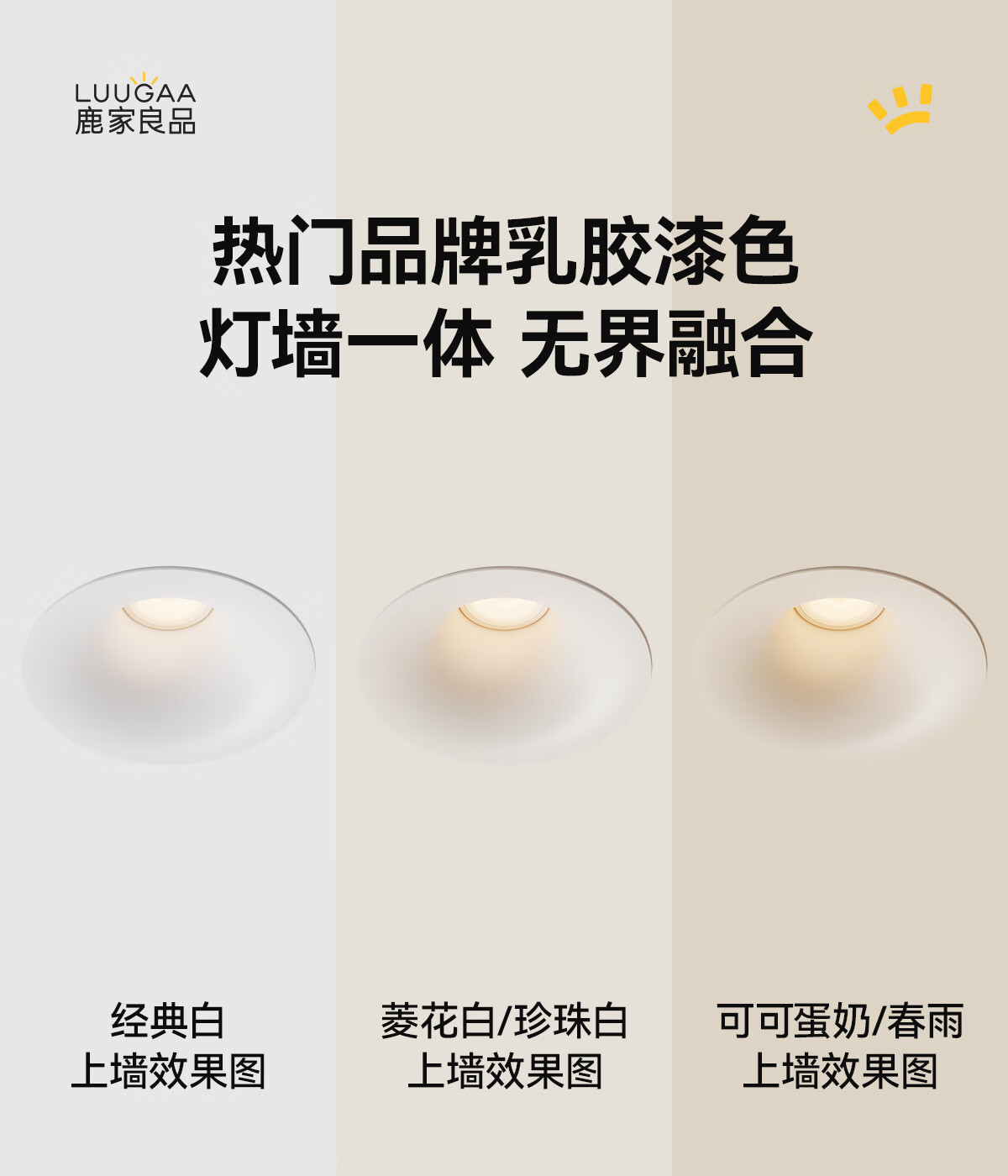 鹿家良品(LUUGAA)星月无边框射灯小山丘全光谱普瑞护眼防眩乳胶漆同色防眩过道灯 【荐】可可蛋奶/春雨|7W|4000K