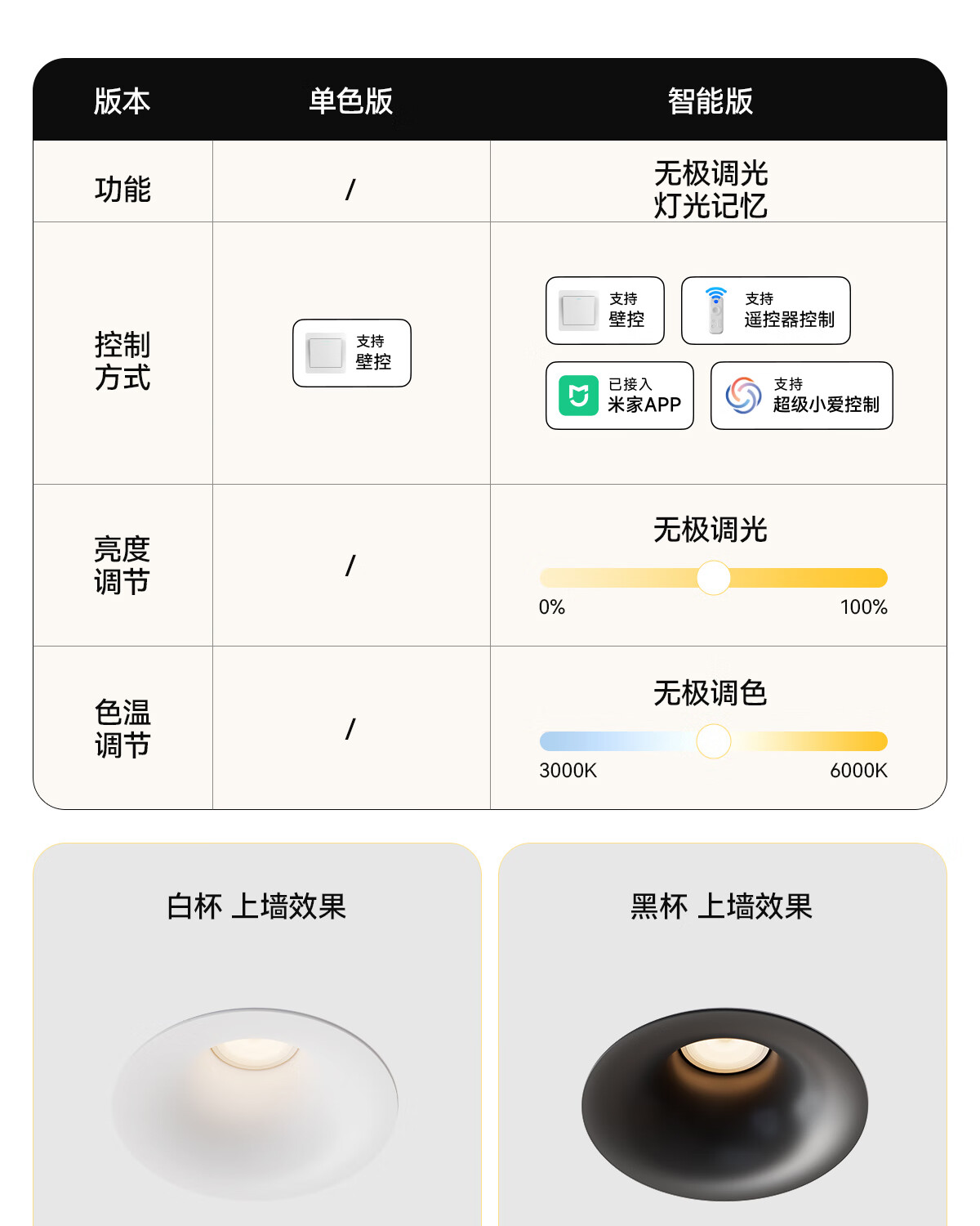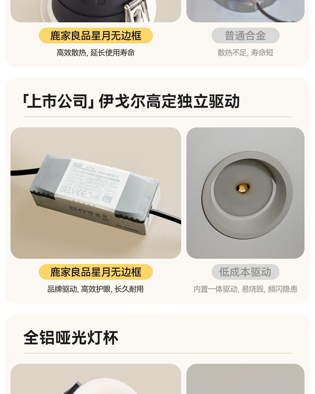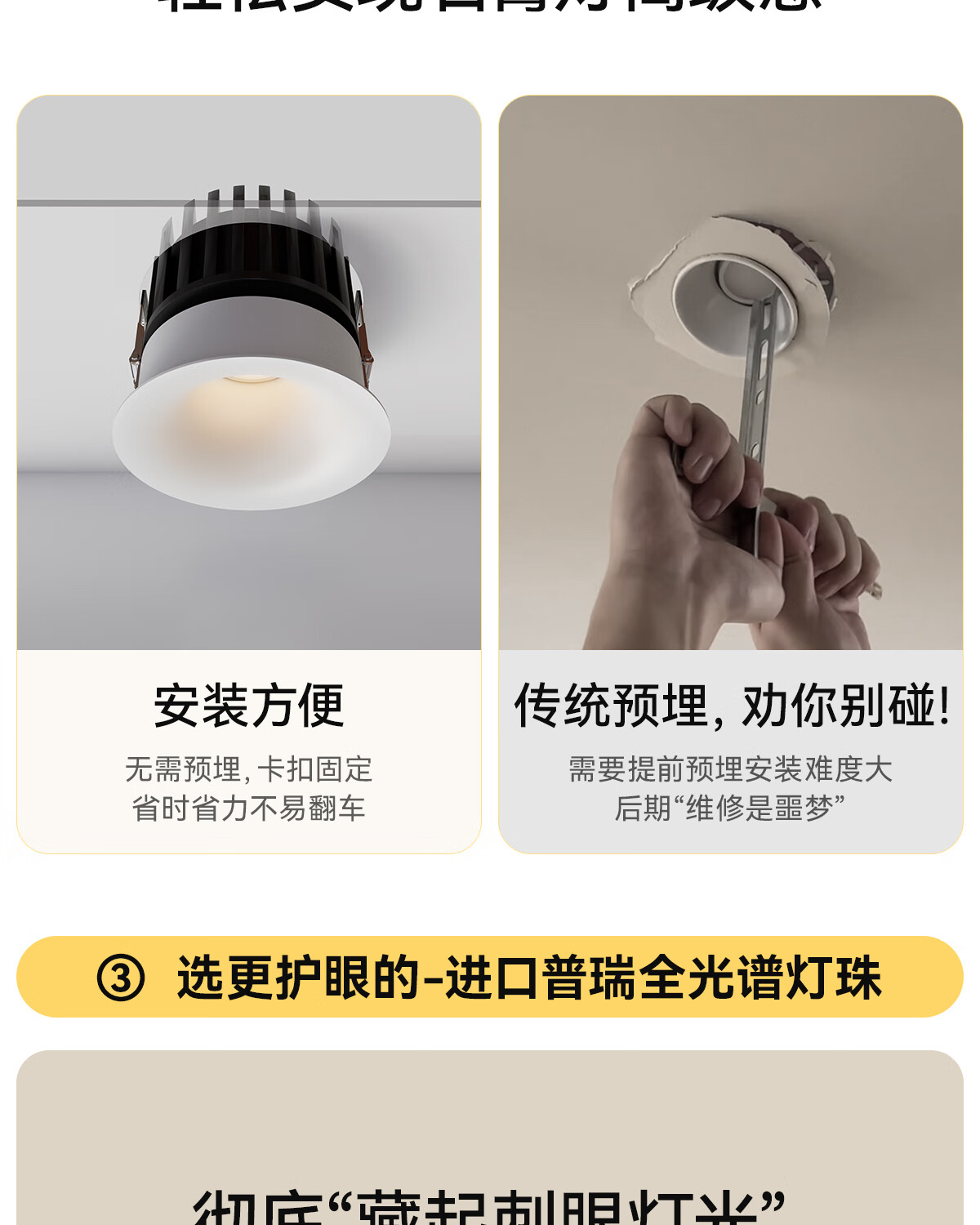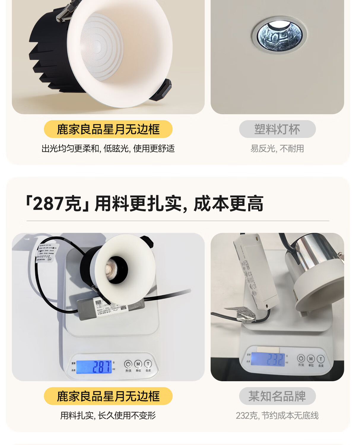 鹿家良品(LUUGAA)星月无边框射灯小山丘全光谱普瑞护眼防眩乳胶漆同色防眩过道灯 【荐】可可蛋奶/春雨|7W|4000K