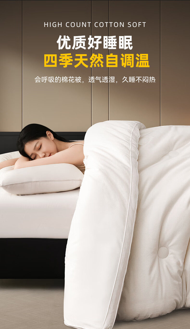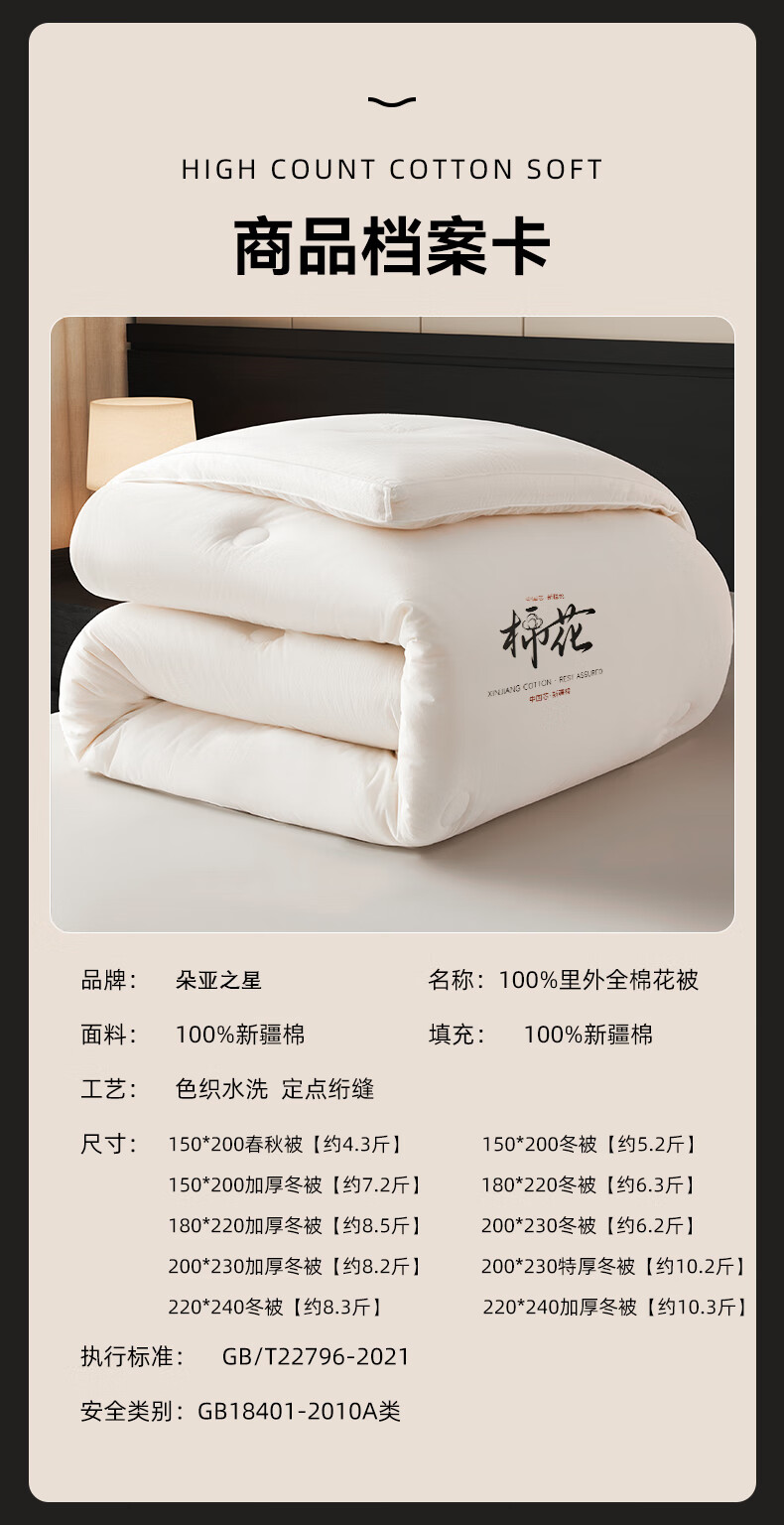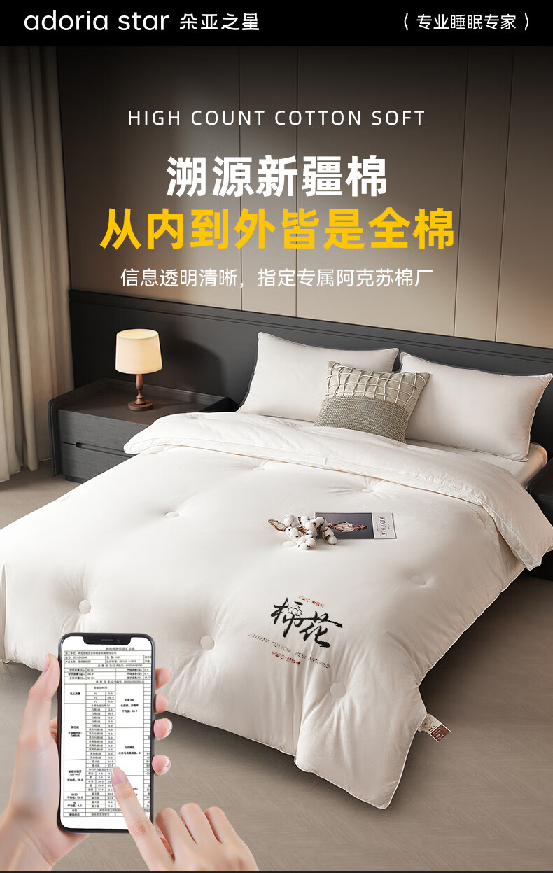 朵亚之星冬季被子被芯棉被200x230cm新疆棉花被秋冬加厚保暖冬被 白色 (全棉面料+100%新疆棉花填充) 200*230特厚冬被10.2斤