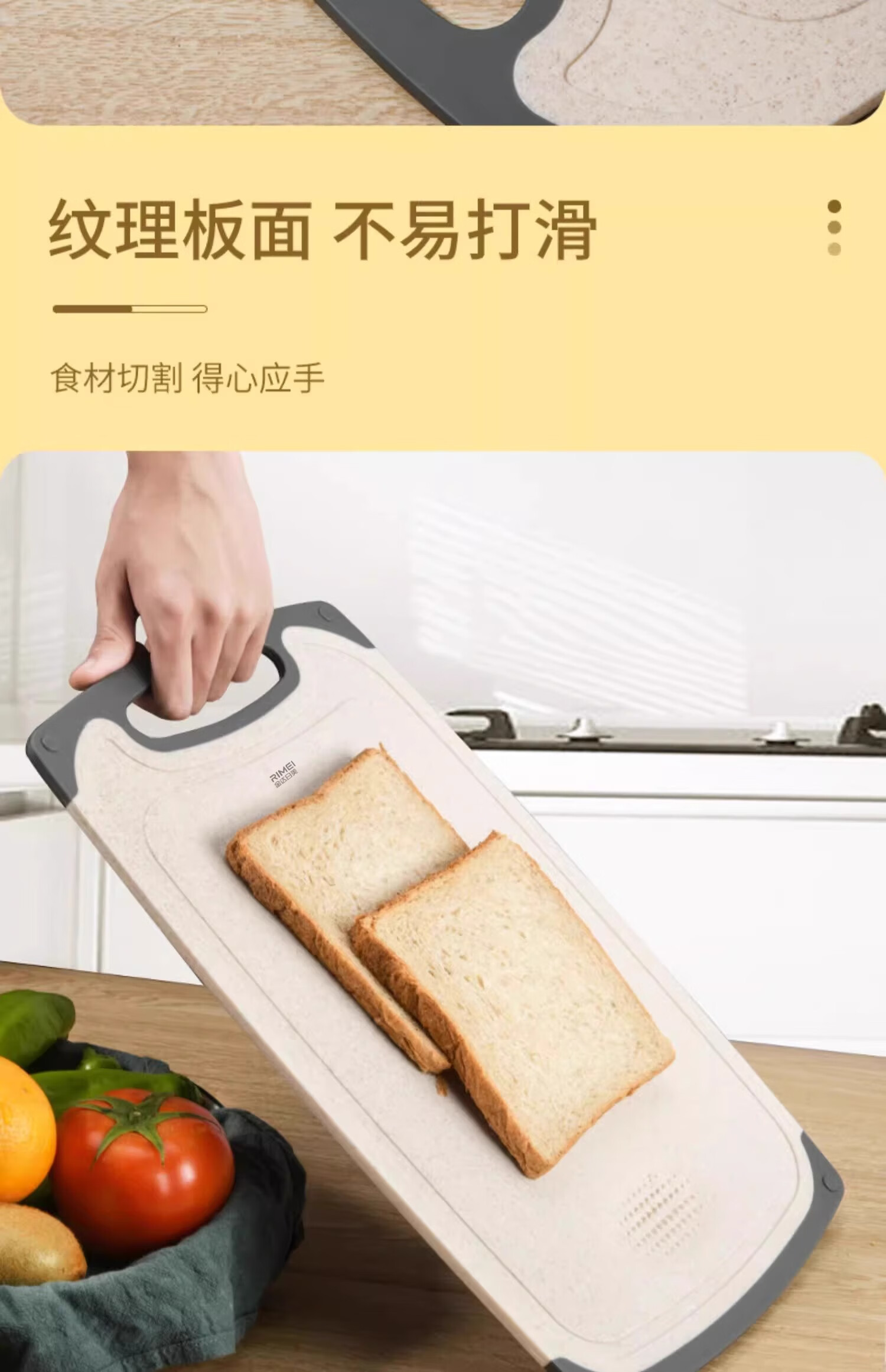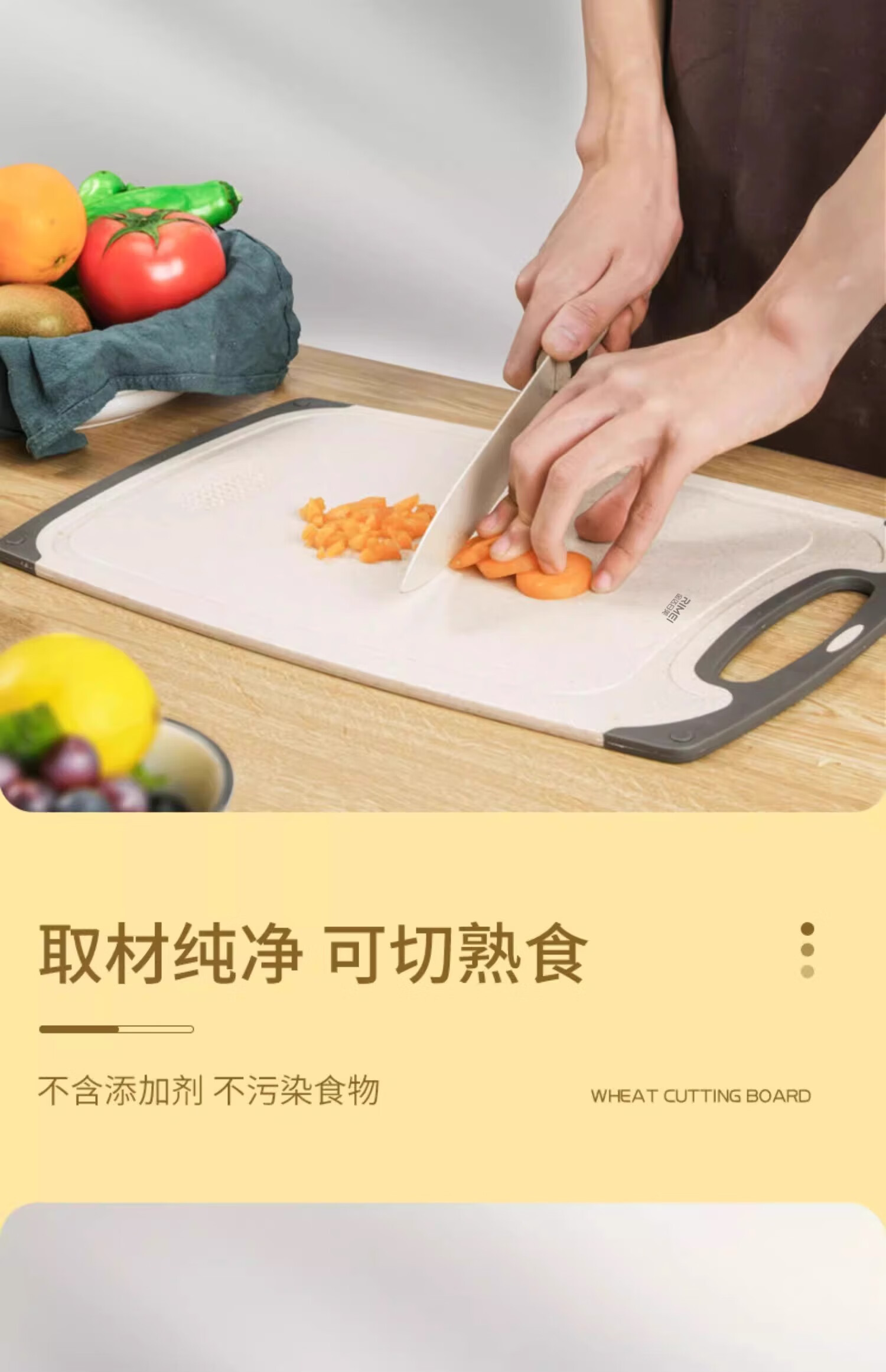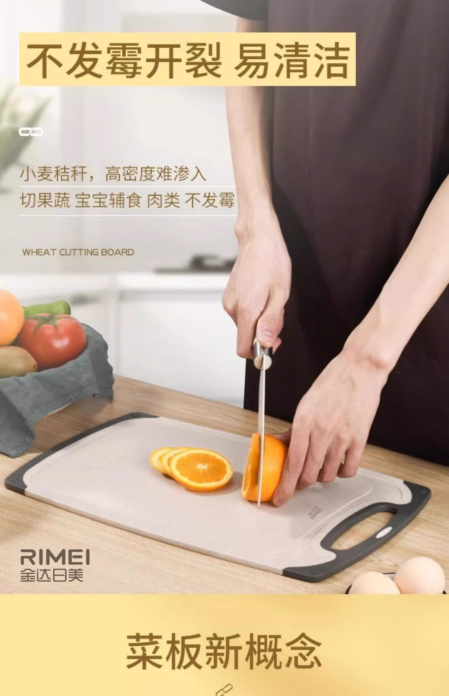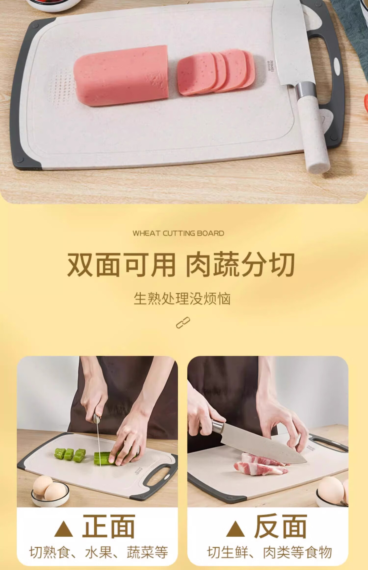 金达日美菜板双面砧板家用小麦秸秆切菜板抗菌防霉塑料案板多功能水果垫板 【中号】小麦菜板 长方形