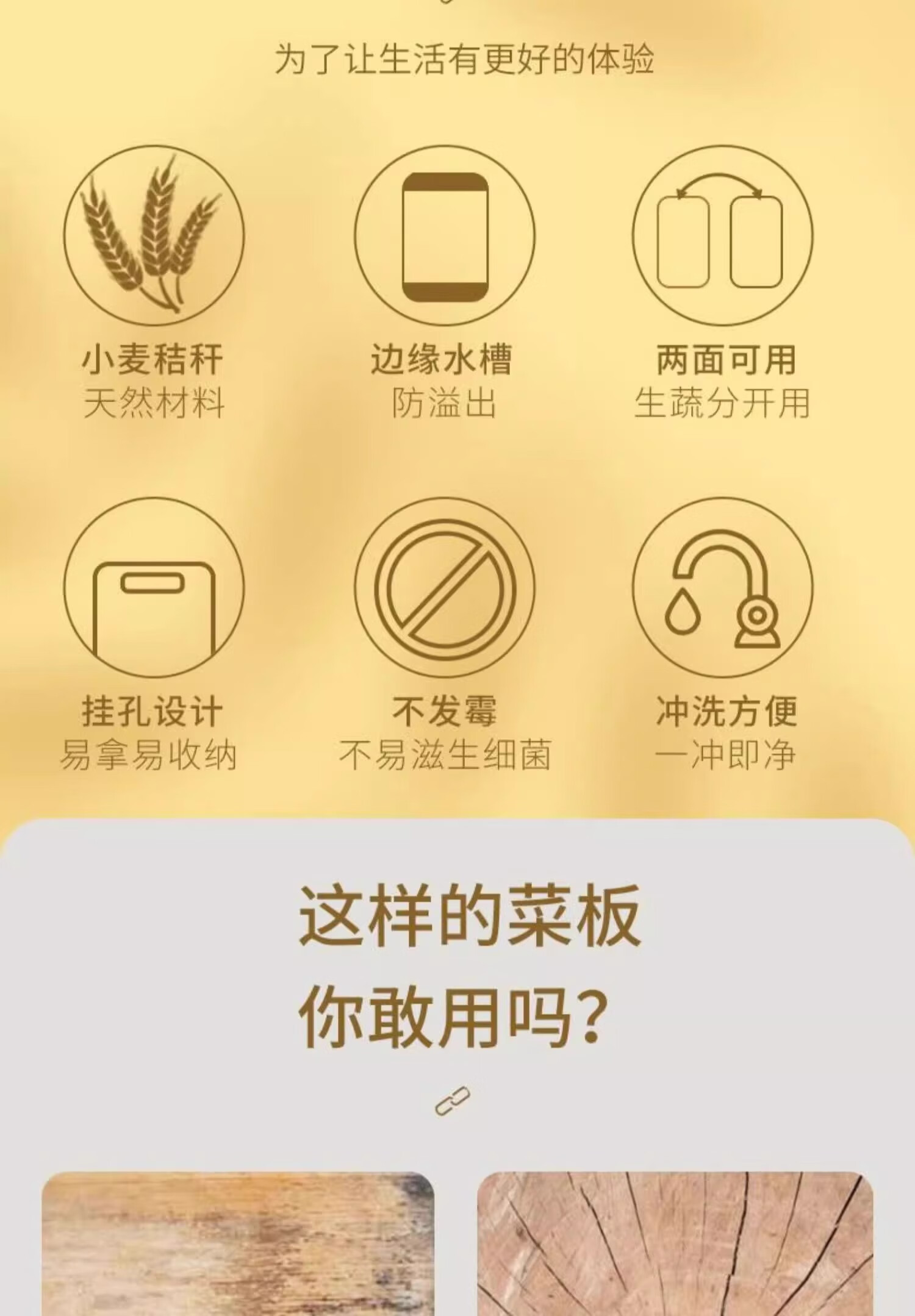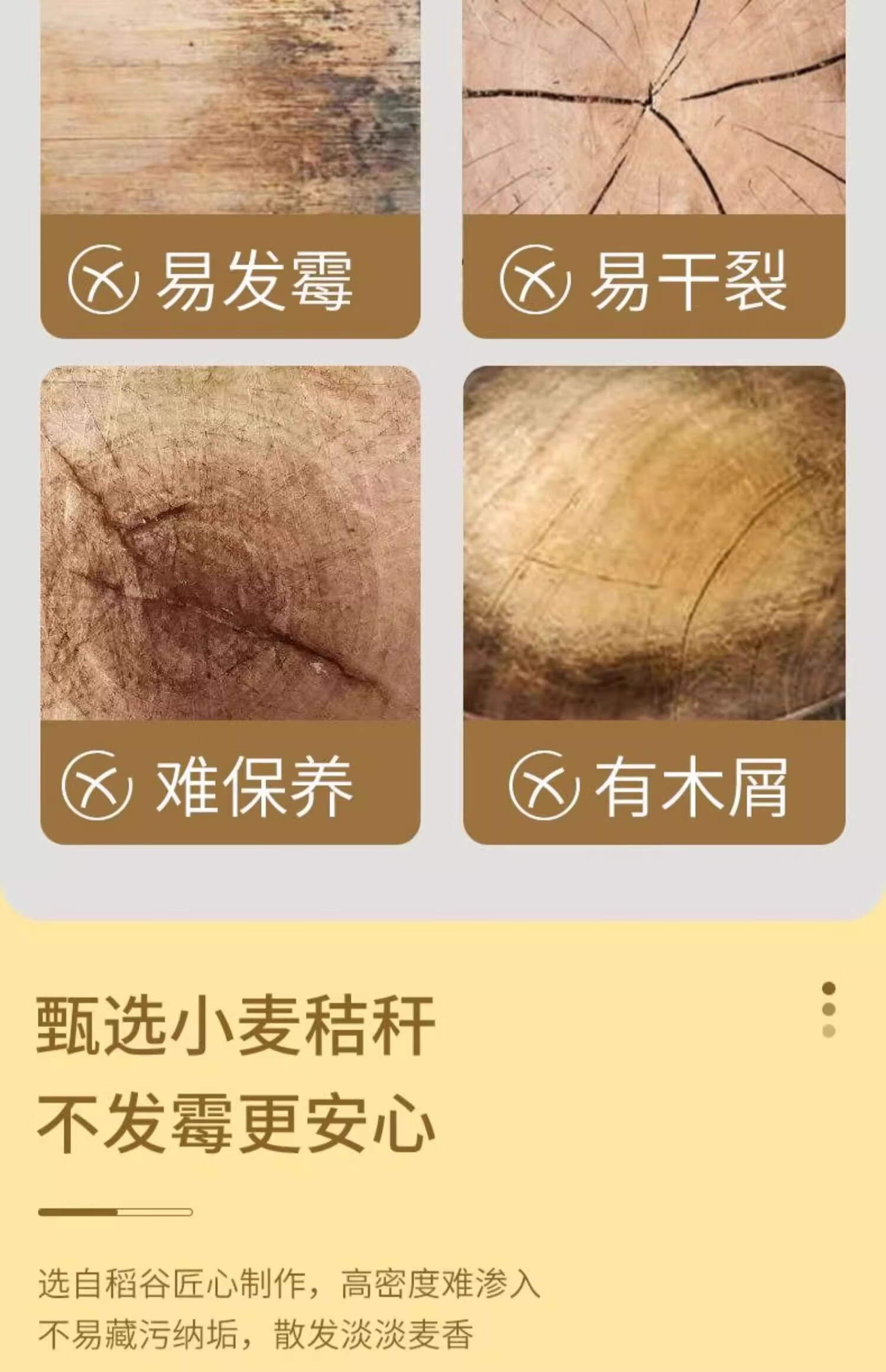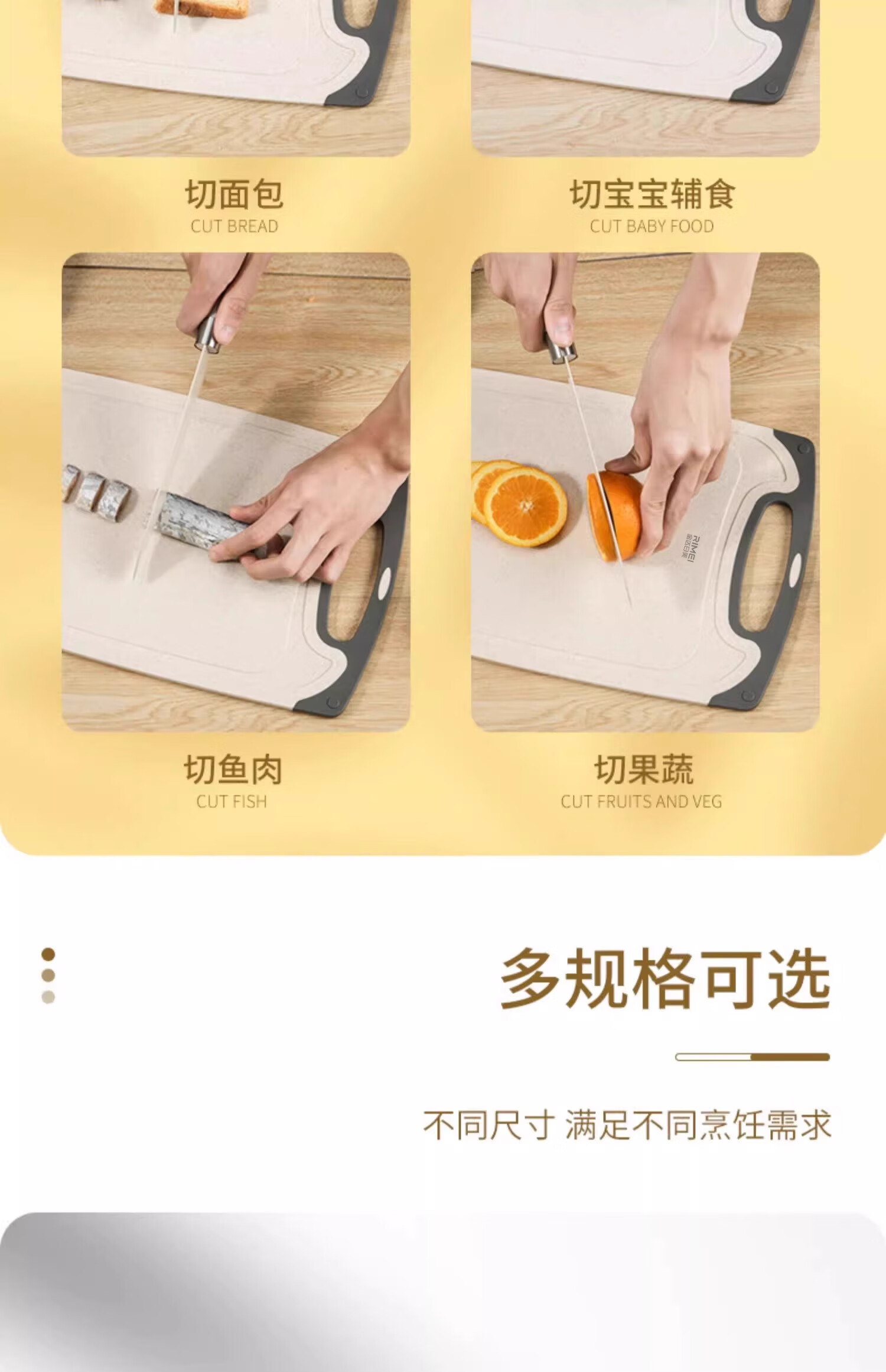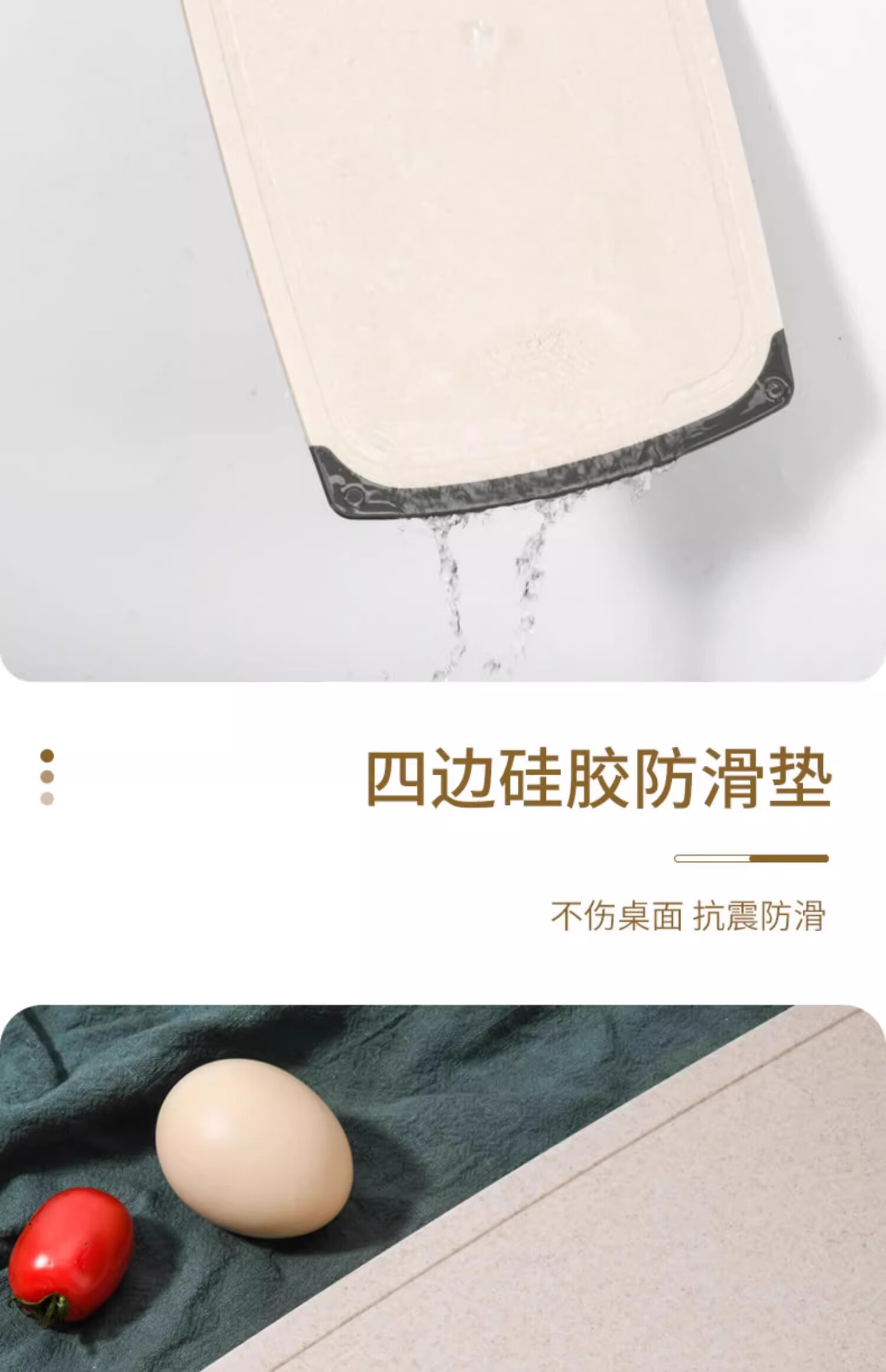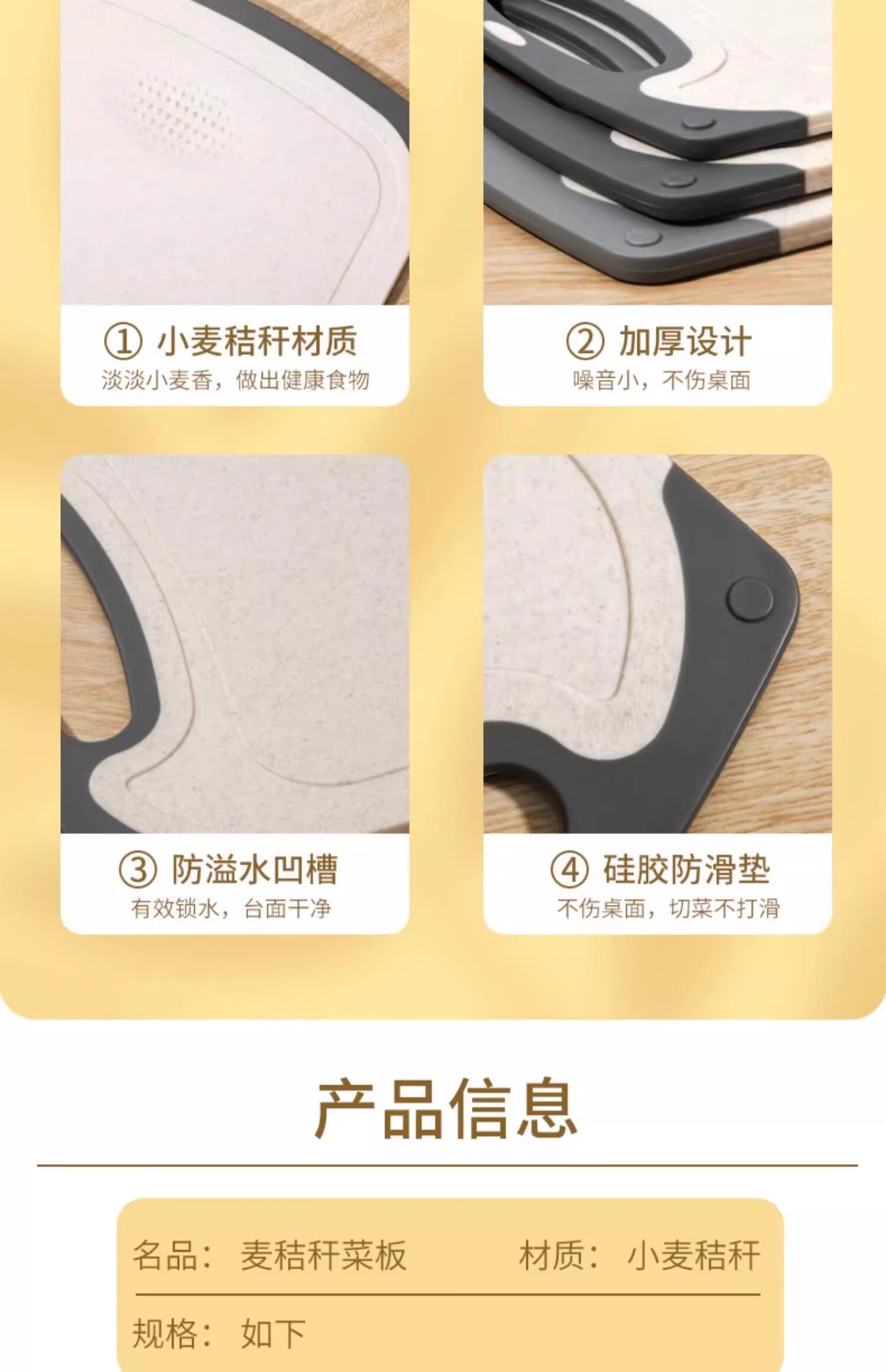 金达日美菜板双面砧板家用小麦秸秆切菜板抗菌防霉塑料案板多功能水果垫板 【中号】小麦菜板 长方形