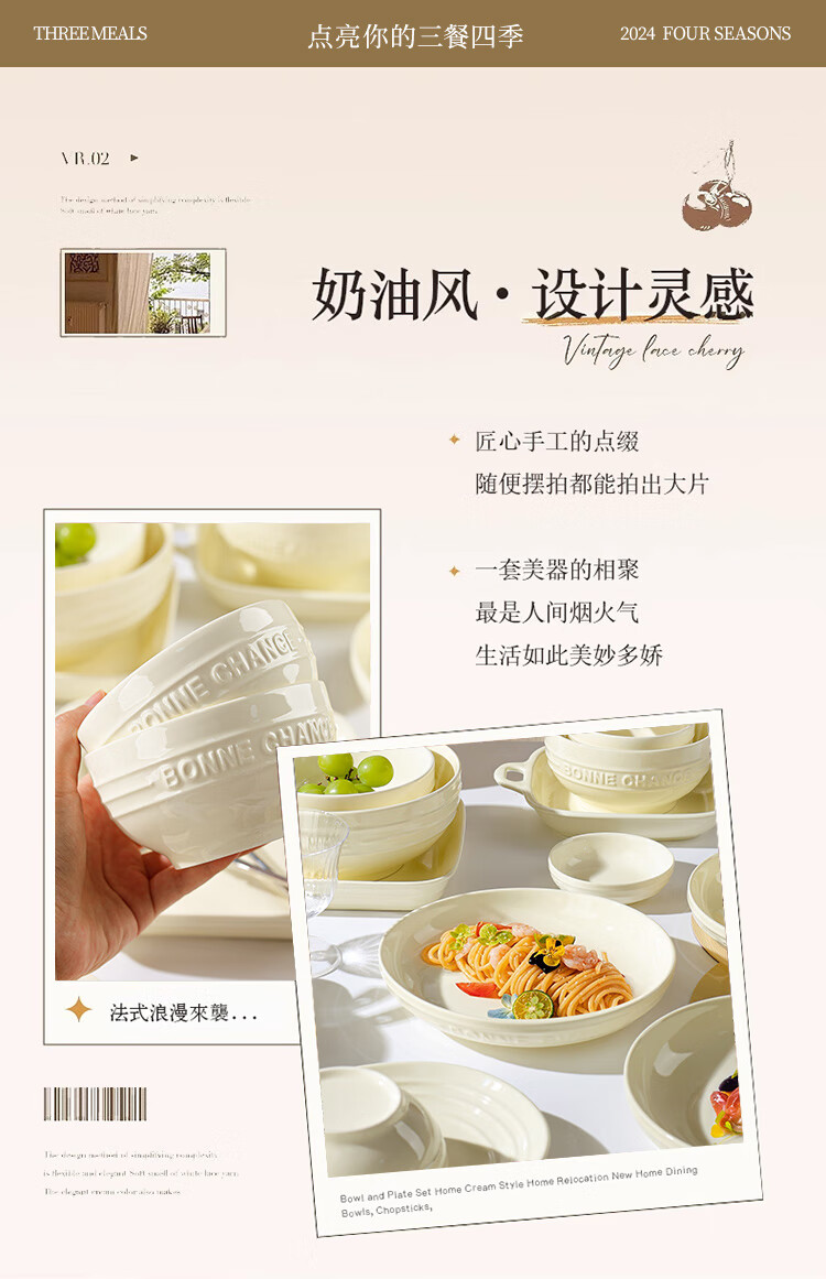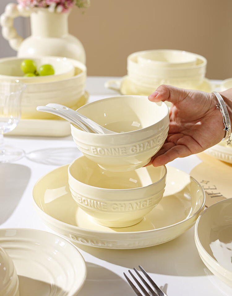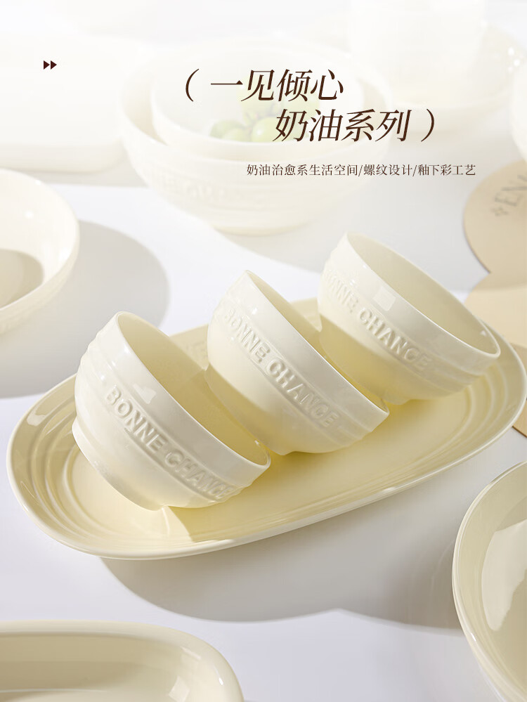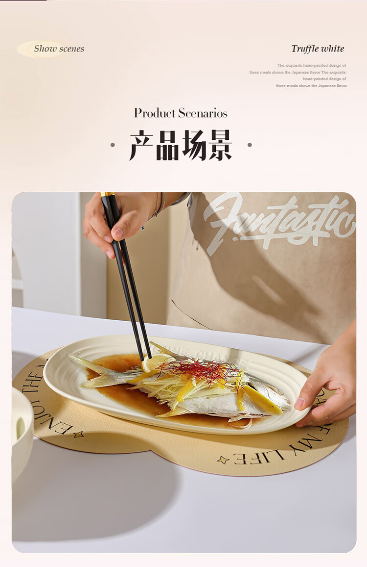 贺川屋陶瓷鱼盘奶油风高颜值陶瓷盘釉下彩12英寸蒸鱼盘菜盘子