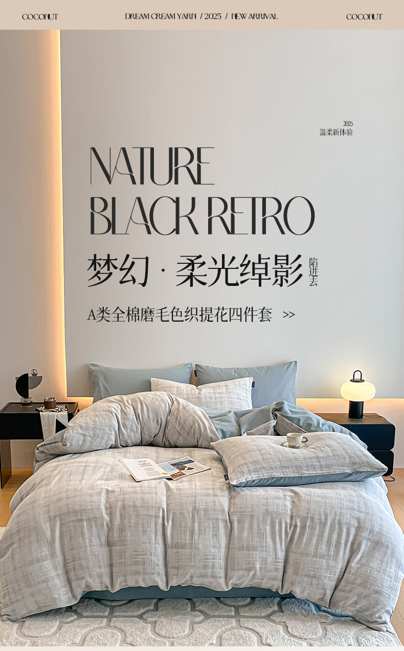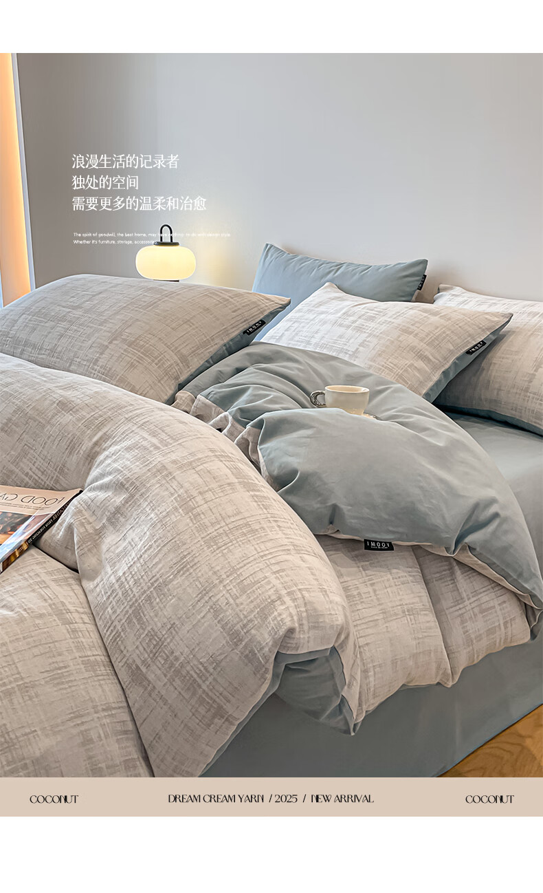 苏萱轻奢高级感加厚磨毛四件套2025新款纯棉全棉被套秋冬款床单三件套 经纬赋 2.0m 床单款 四件套-被套220x240cm
