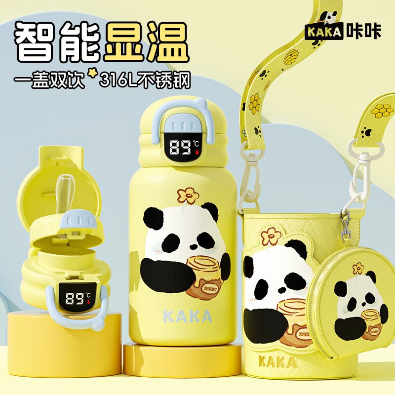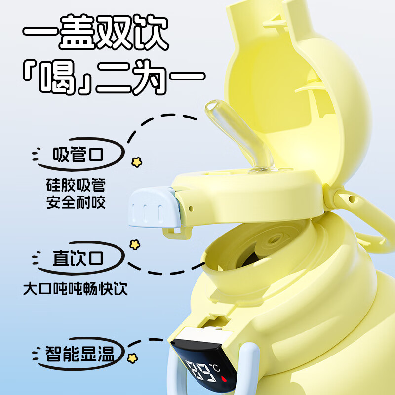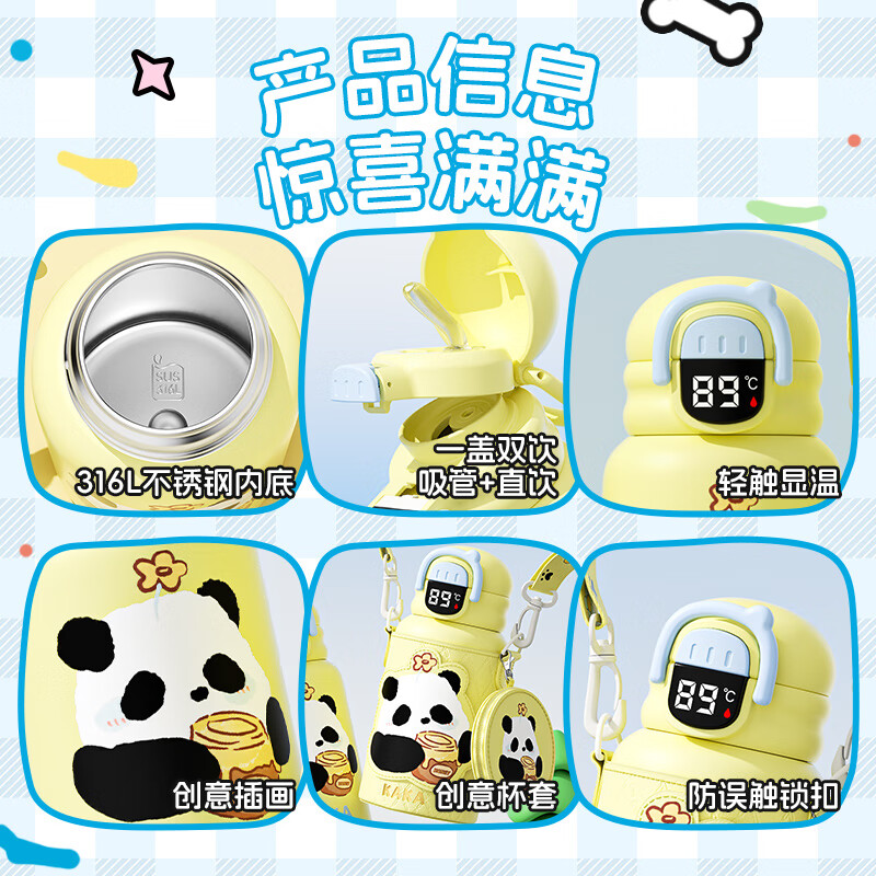皇家洛克智能儿童保温杯大容量水杯子吸管316不锈钢便携小学生幼儿园水壶 蓝色小狗500ml