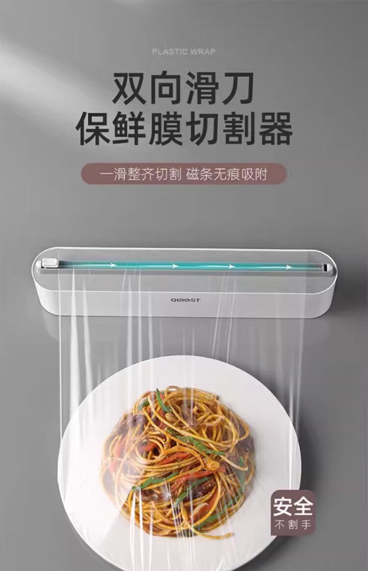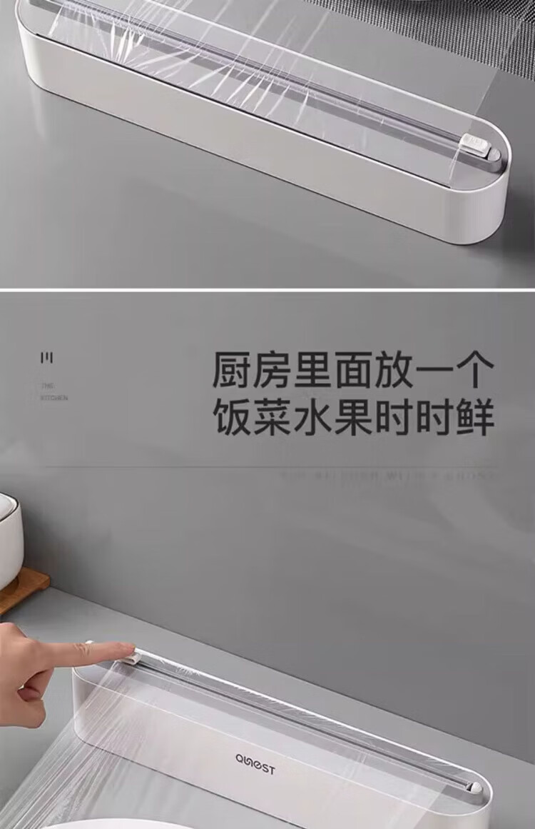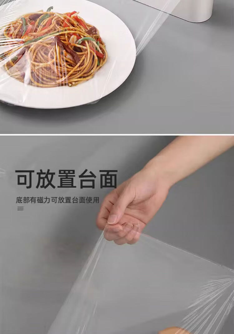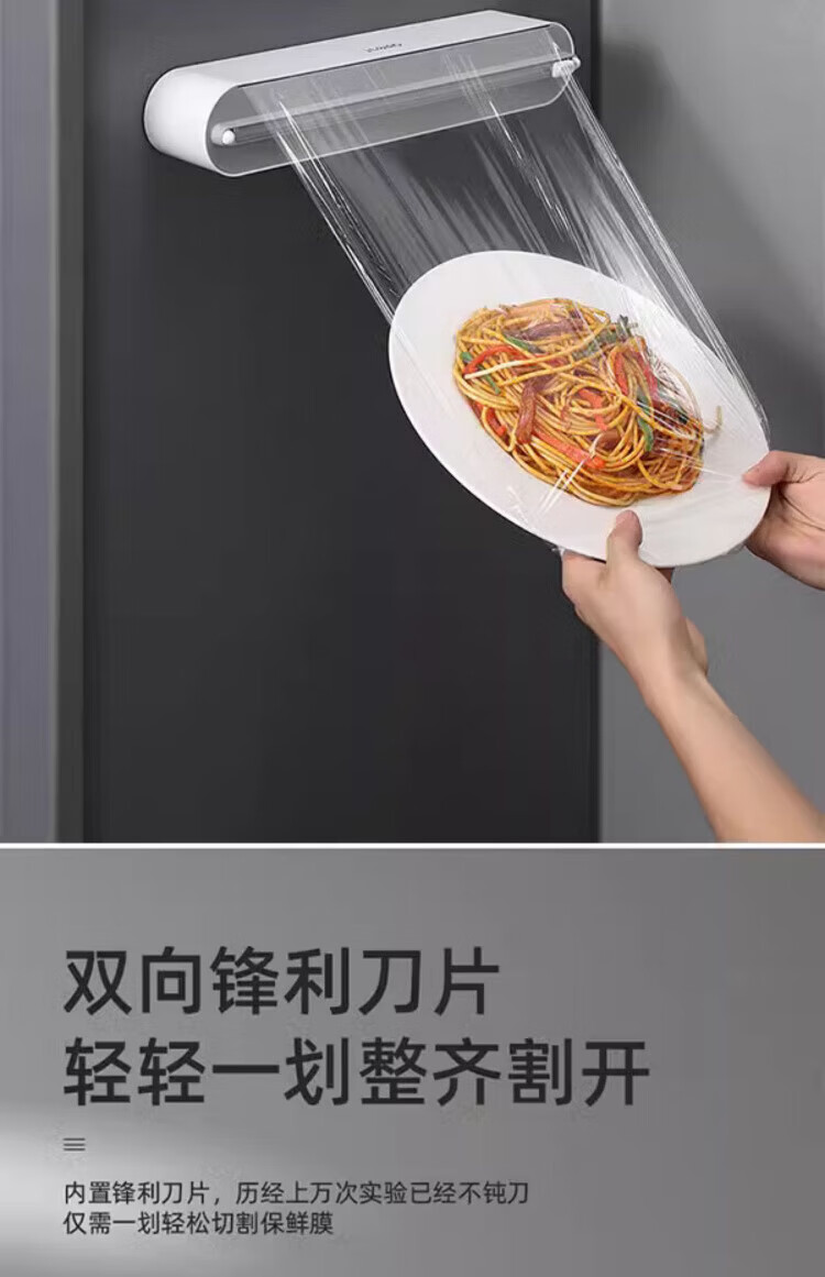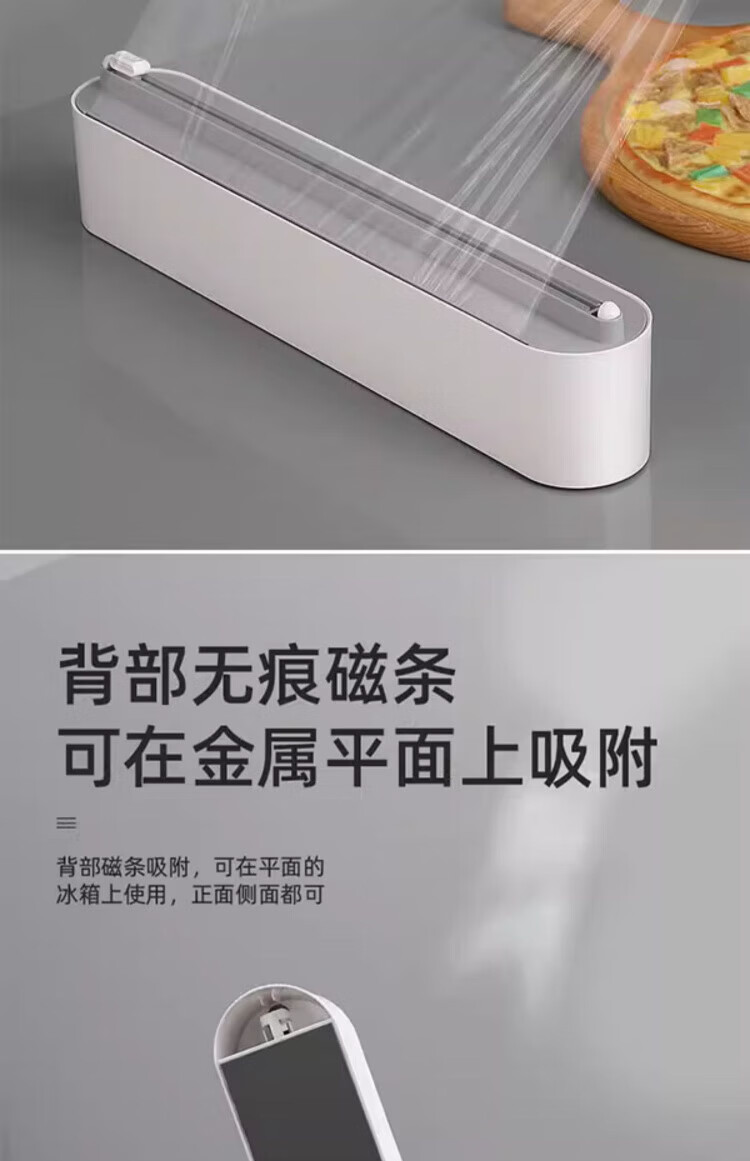 WCZ高端厨房一次性保鲜膜切割器家用保鲜膜罩食品专用切割盒磁吸冰箱 百塔灰切割器+50米保鲜膜