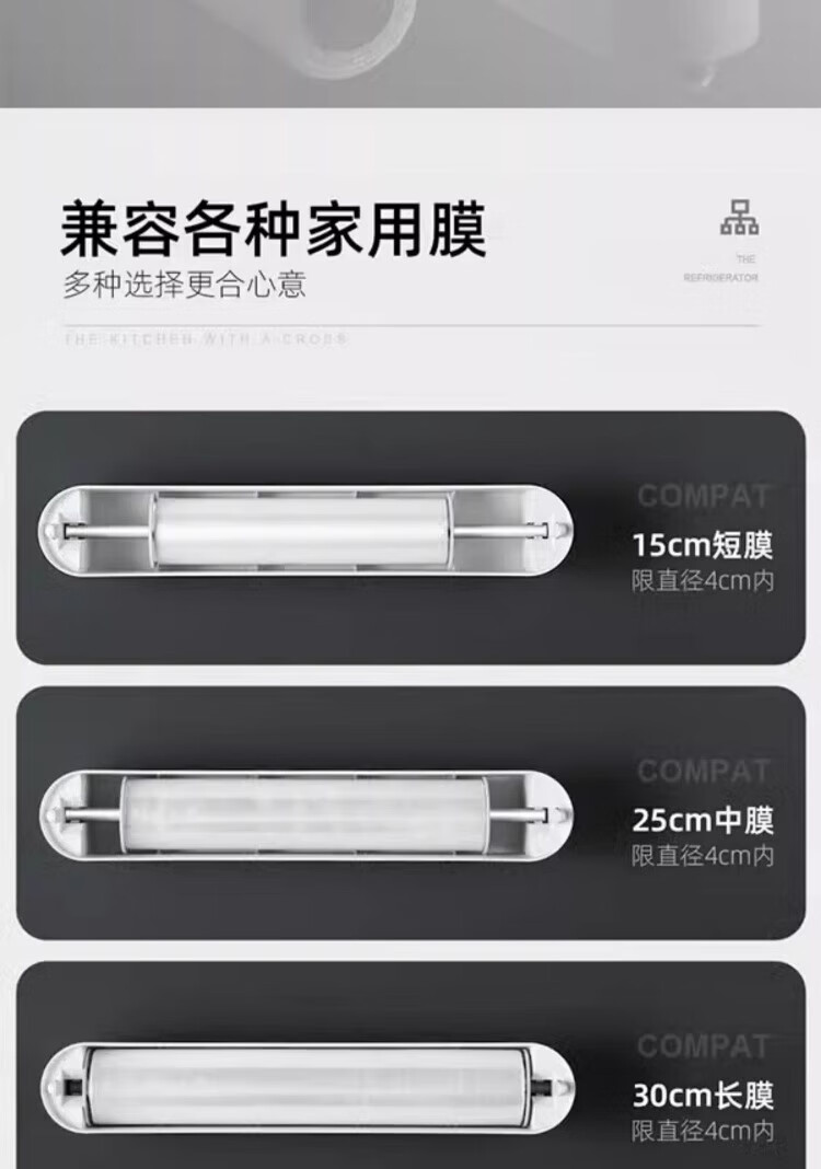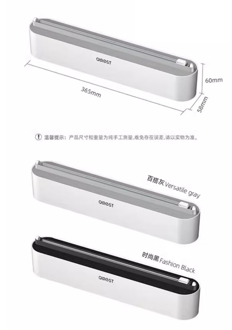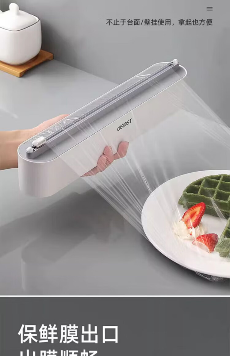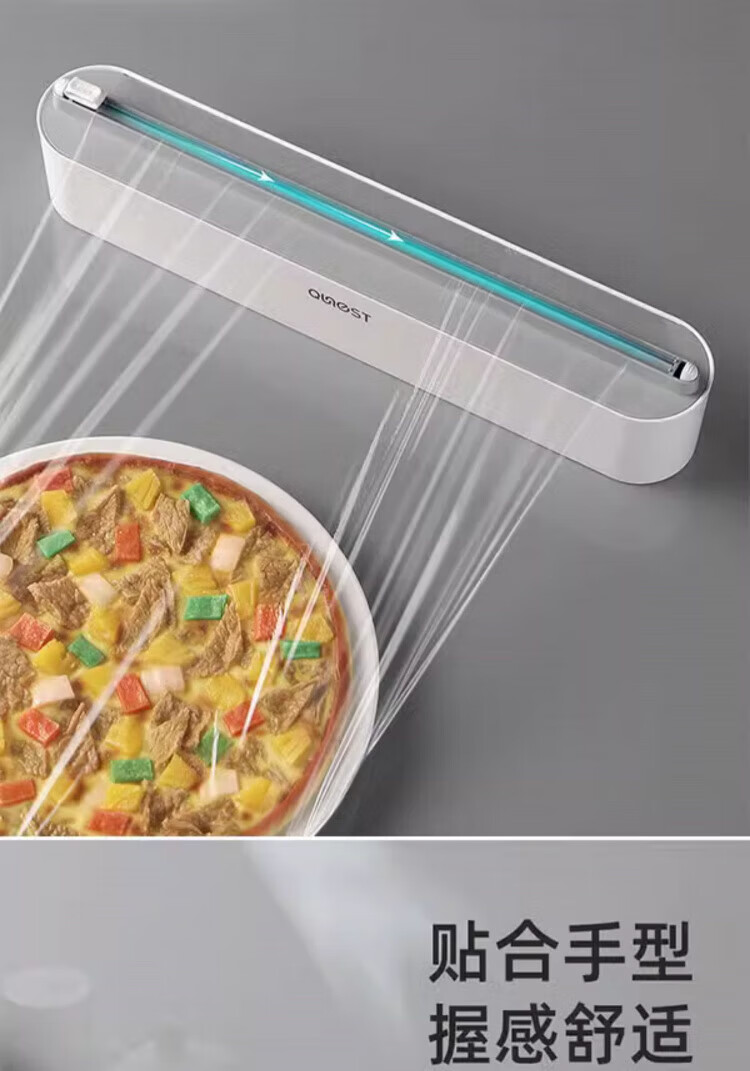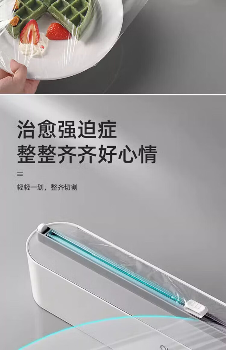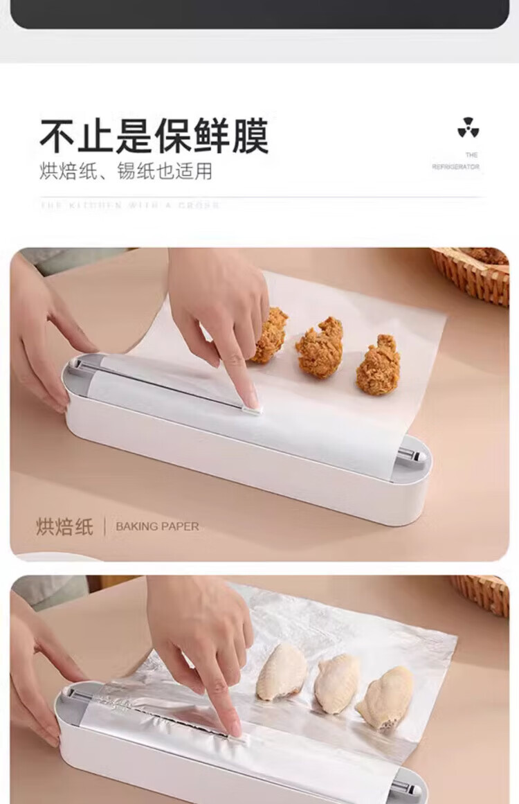 WCZ高端厨房一次性保鲜膜切割器家用保鲜膜罩食品专用切割盒磁吸冰箱 百塔灰切割器+50米保鲜膜