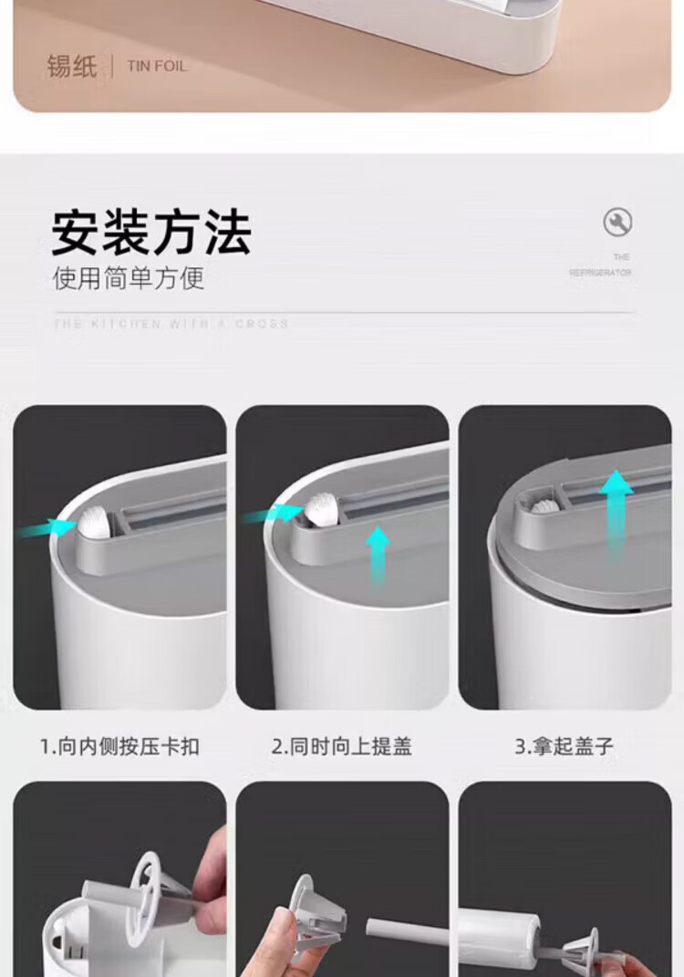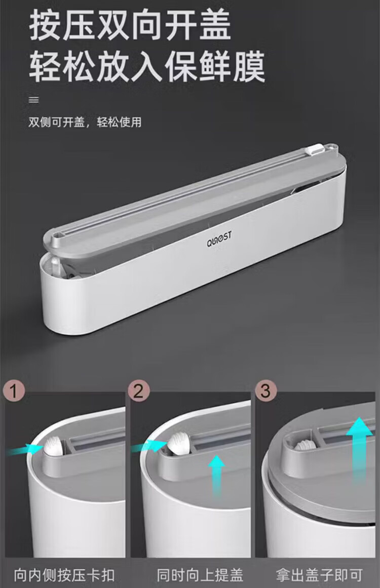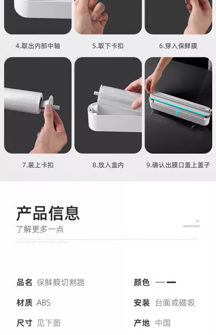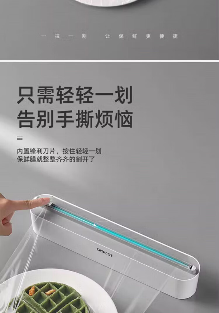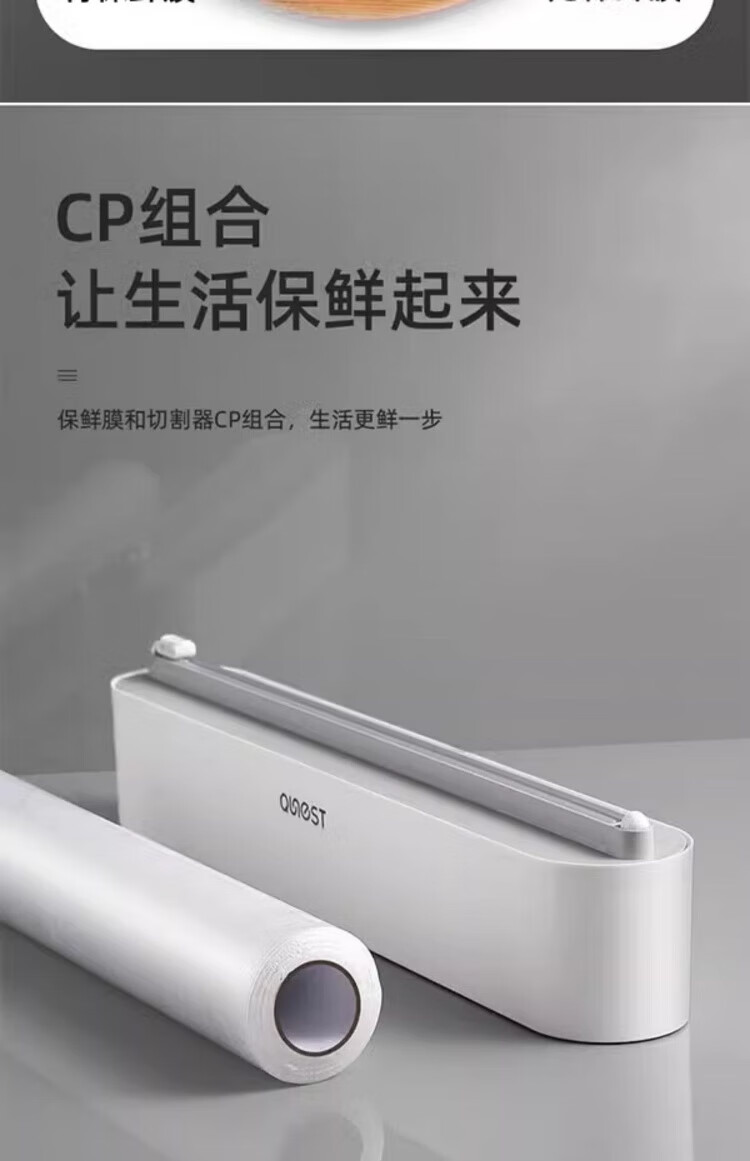 WCZ高端厨房一次性保鲜膜切割器家用保鲜膜罩食品专用切割盒磁吸冰箱 百塔灰切割器+50米保鲜膜