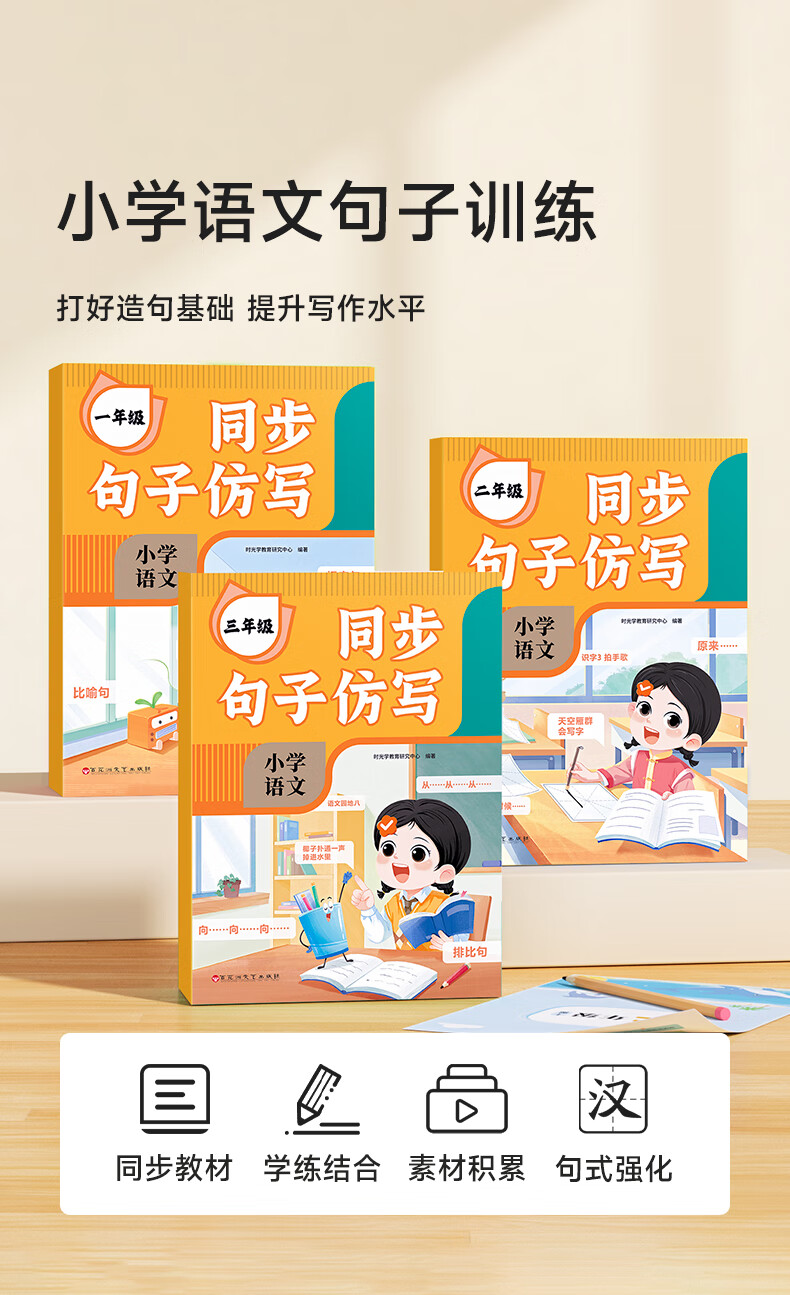 【时光学】同步句子仿写小学一二三年级仿写句子专项训练人教版上下册语文同步作文专项练习题连词成句字词 同步句子仿写(1年级) 无规格