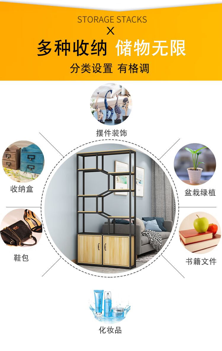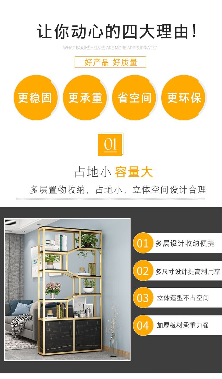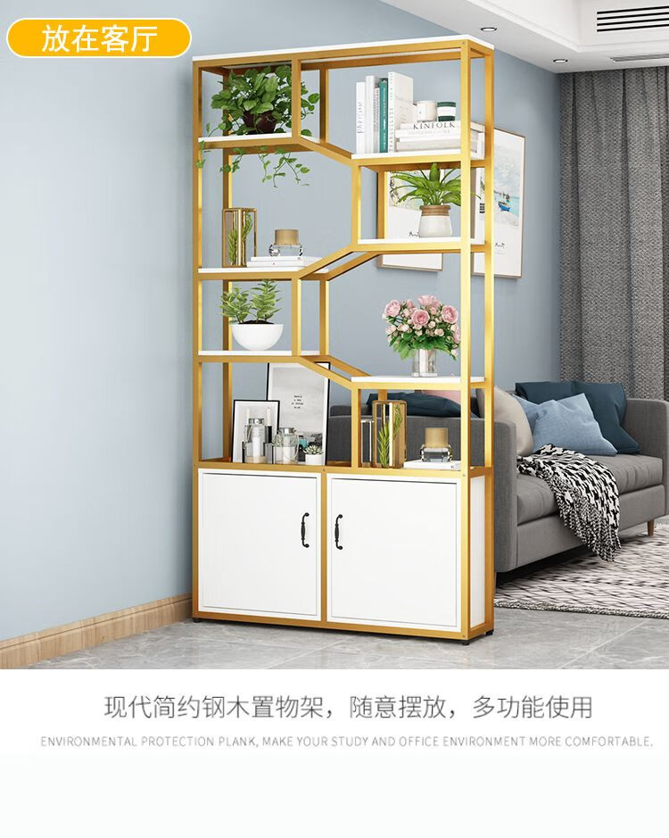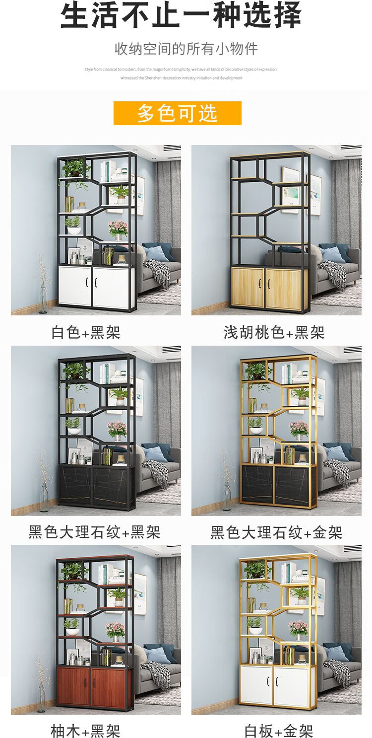 迈途森铁艺屏风办公室隔断柜客厅储物柜展示柜进门玄关柜遮挡家居家具 金色架子+暖白板材 160长*24深*200高
