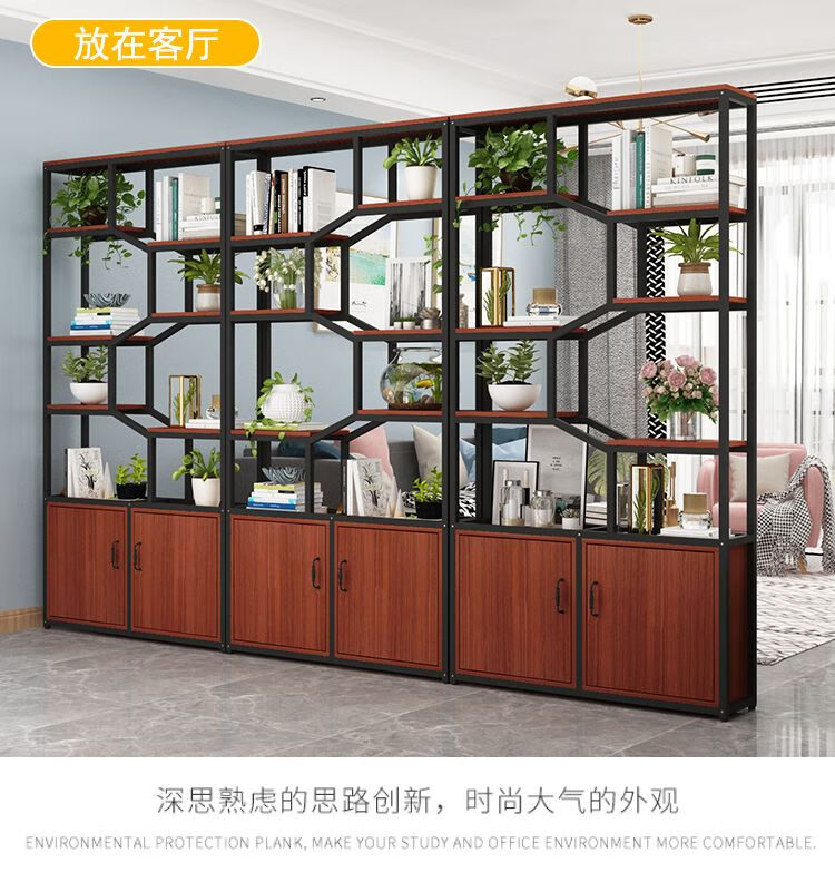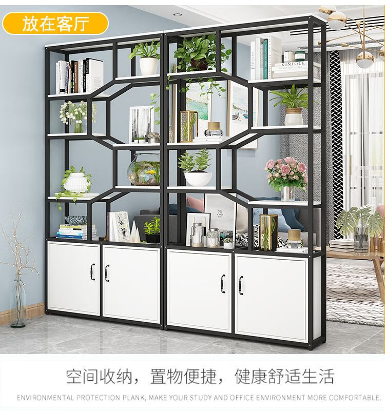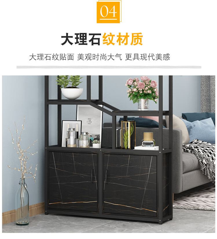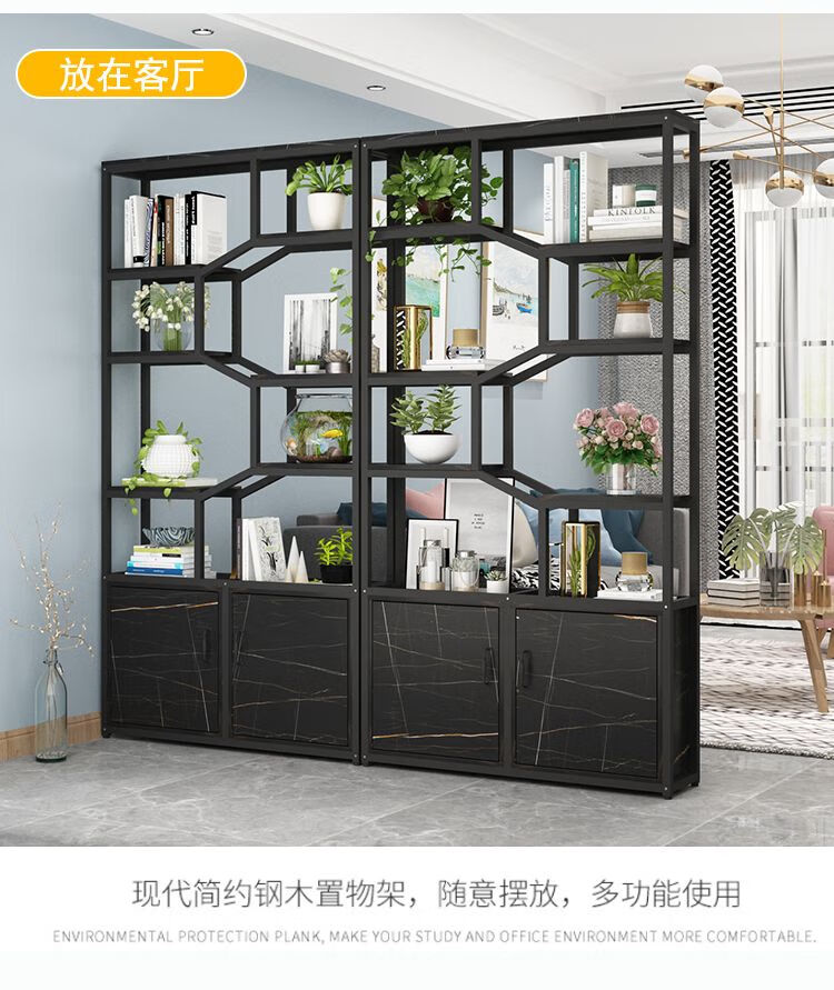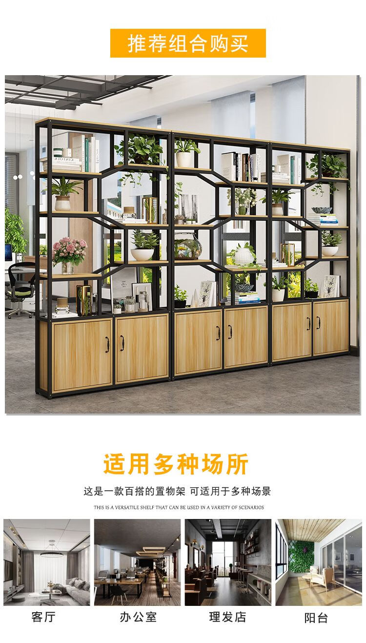 迈途森铁艺屏风办公室隔断柜客厅储物柜展示柜进门玄关柜遮挡家居家具 金色架子+暖白板材 160长*24深*200高