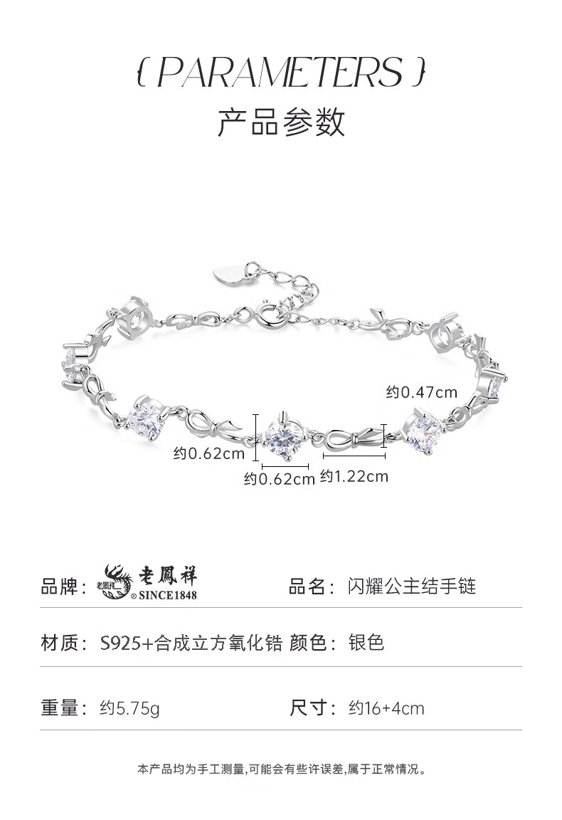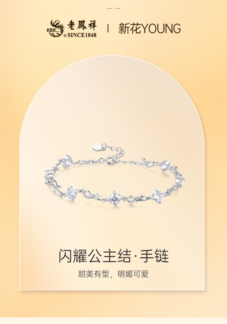 老凤祥925银公主蝴蝶结手链女轻奢高级银饰生日礼物送女友老婆 京速达/闪耀公主手链【品牌礼盒】