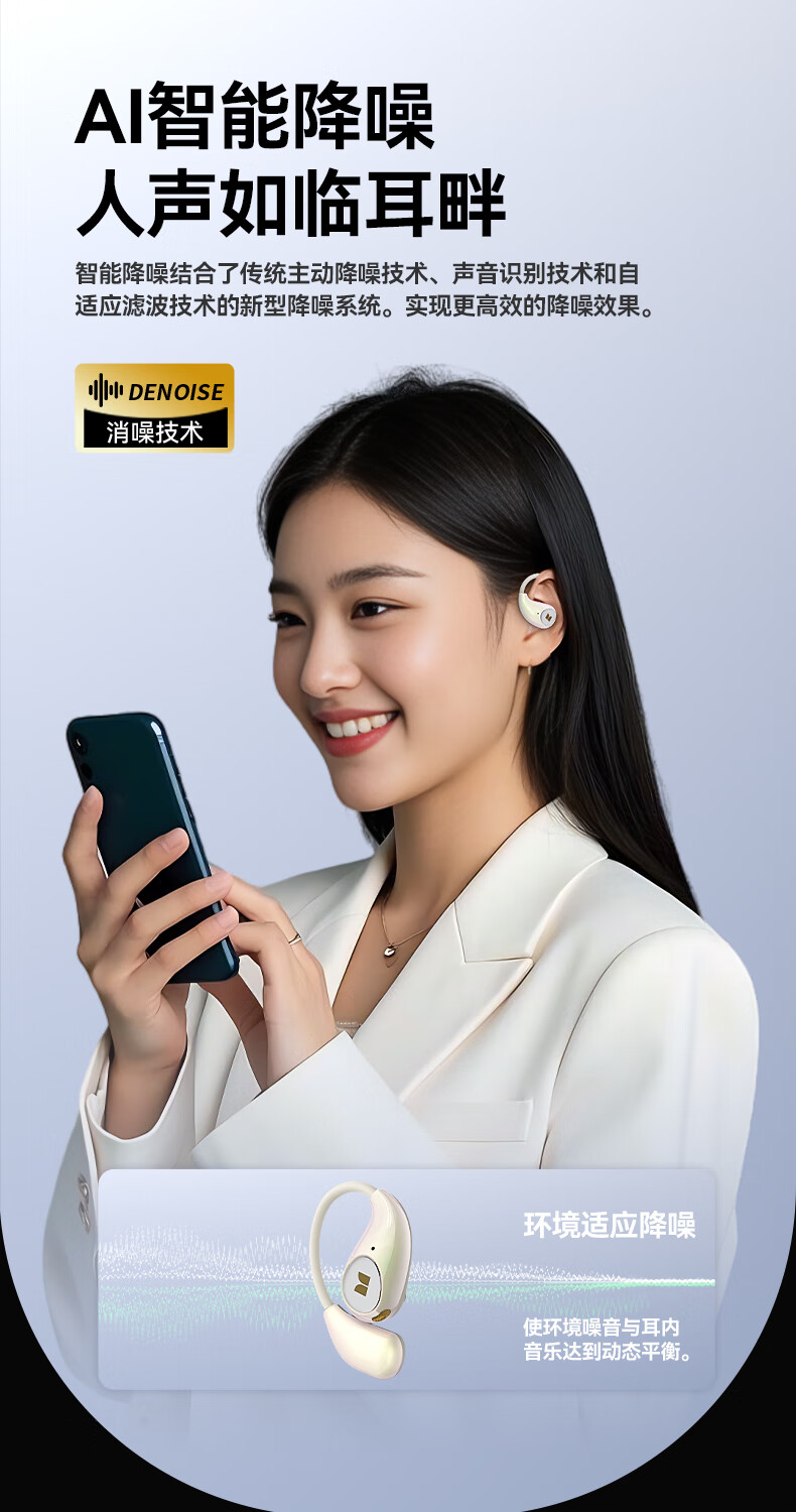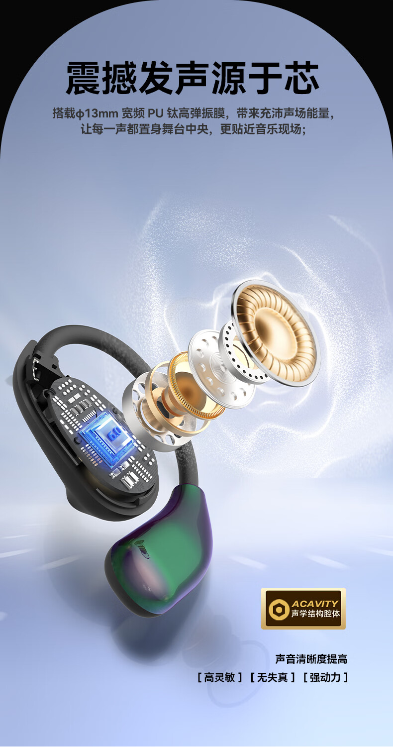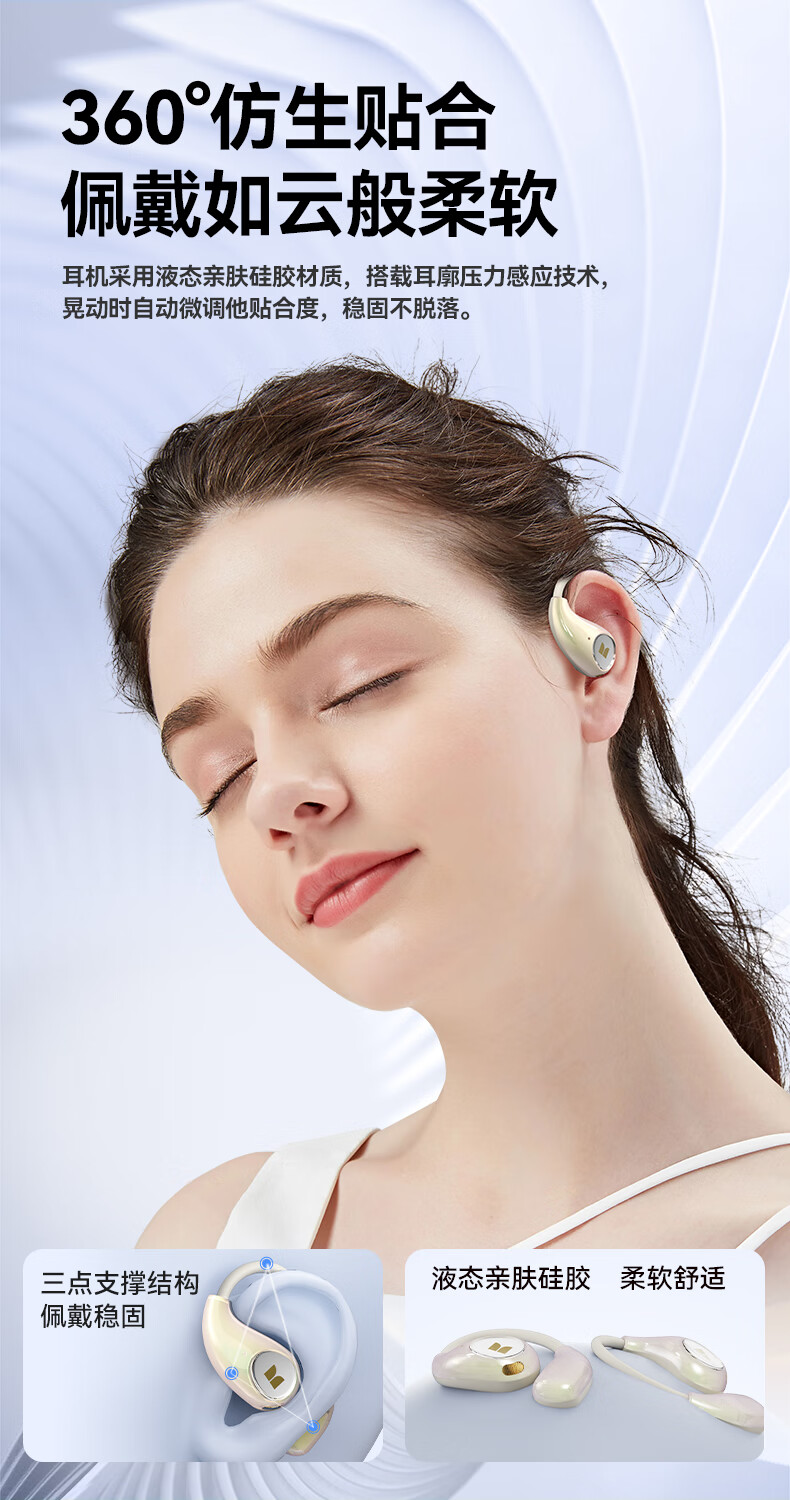 艾勒丝汀【晶钻小巨蛋丨挂耳式狂甩不掉】蓝牙耳机开放式运动跑步无线骨传导超长续航降噪耳夹式不入耳式 云岩肤【独立空间音频】 【空间环绕音+开放不入耳+舒适不漏音】