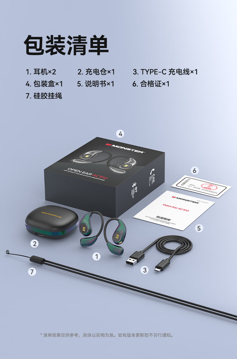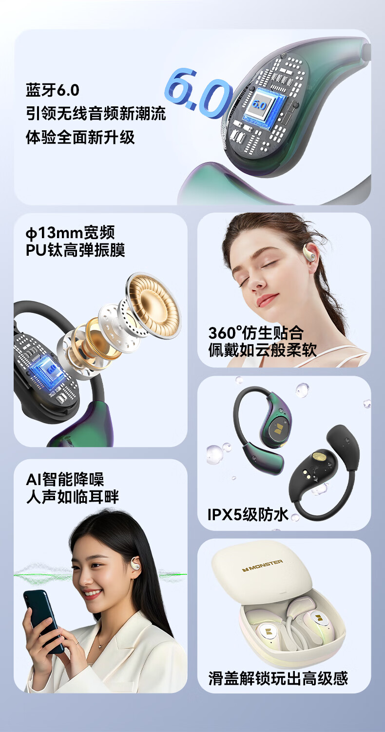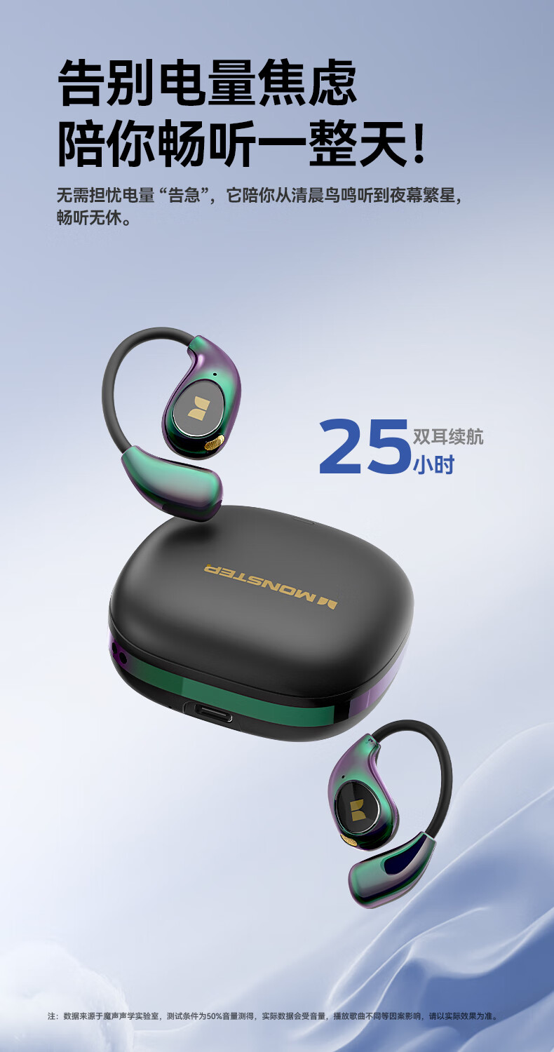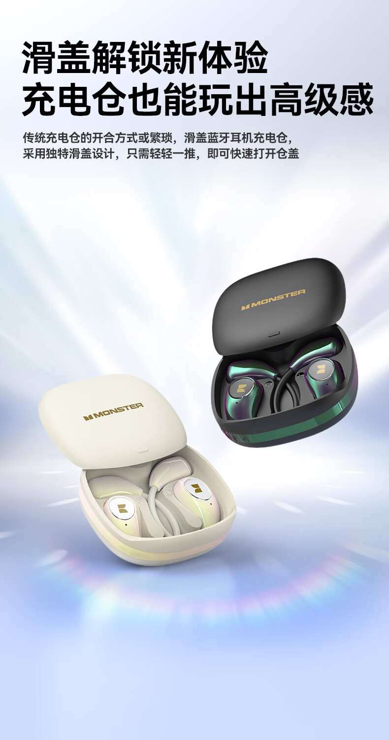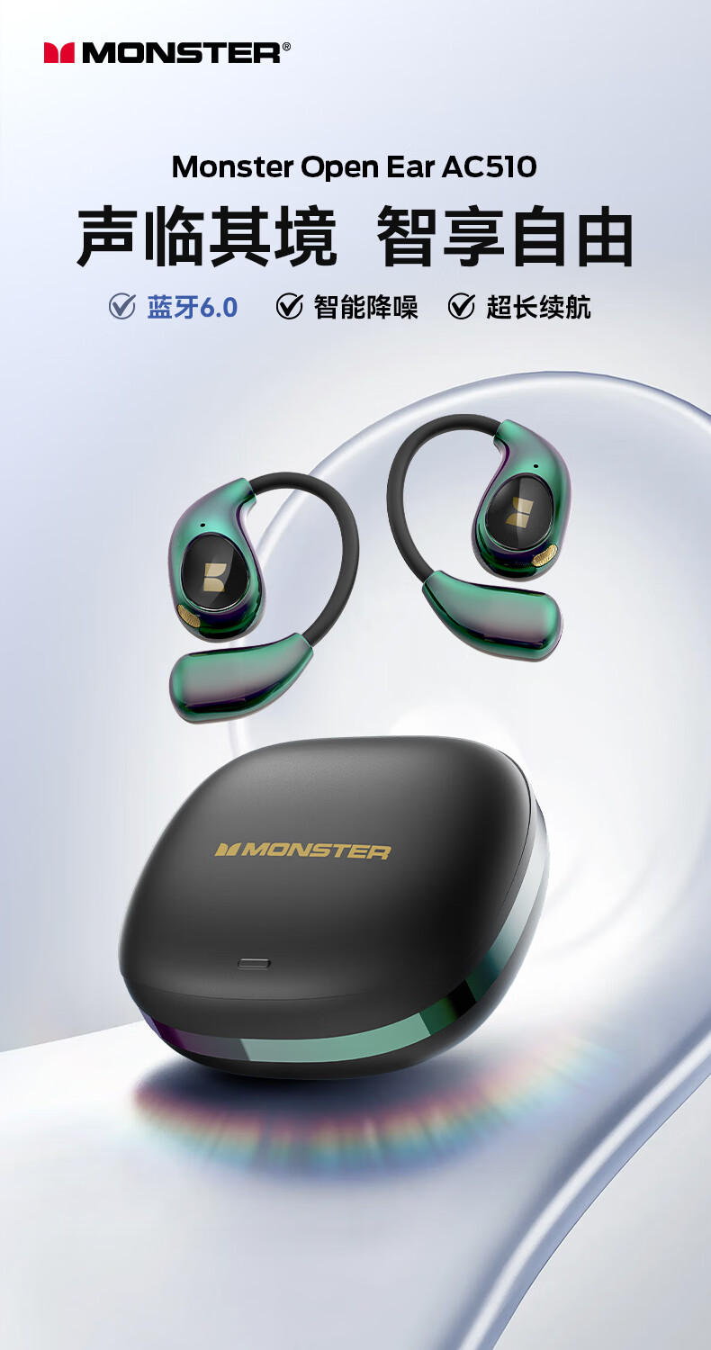 魔声(MONSTER)AC510蓝牙耳机挂耳式运动耳机通话降噪蓝牙6.0超长续航七彩电镀滑盖耳机 极光黑