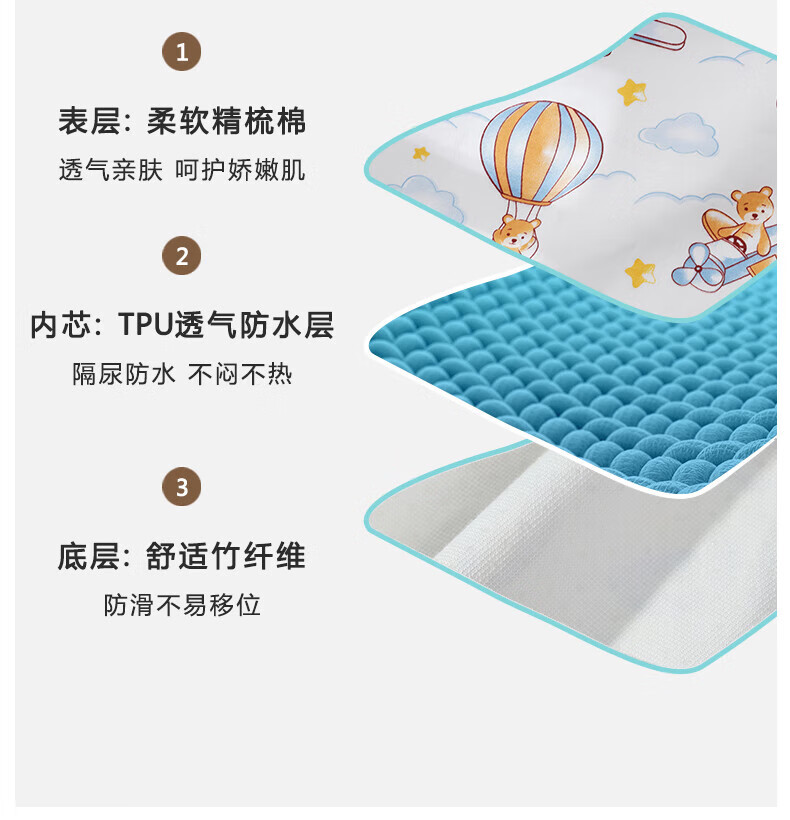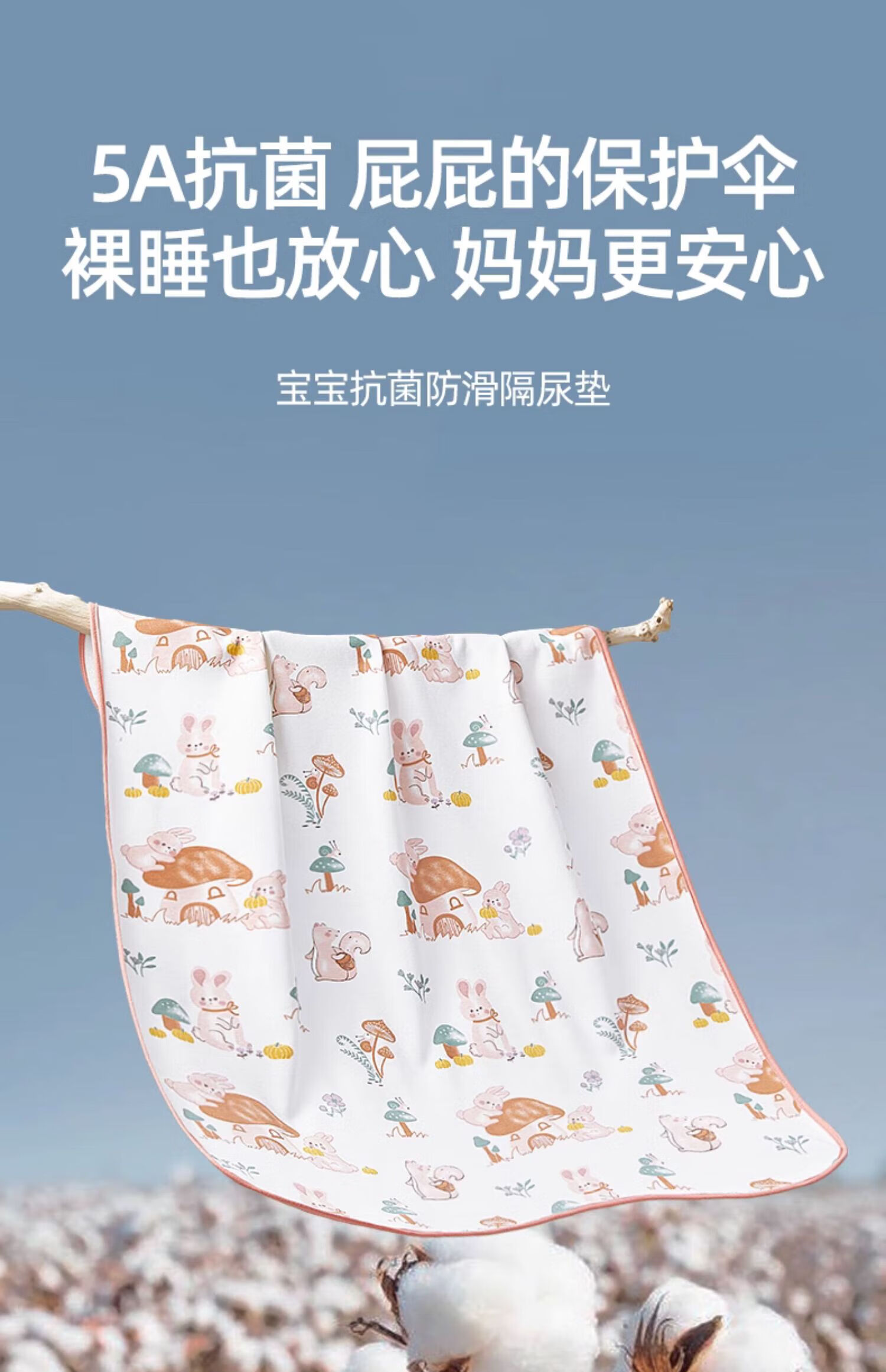 贝肽斯婴儿隔尿垫宝宝防水可洗纯棉透气床单月经生理期床单幼儿园床垫 蘑菇屋-5A级抗菌 30x45cm