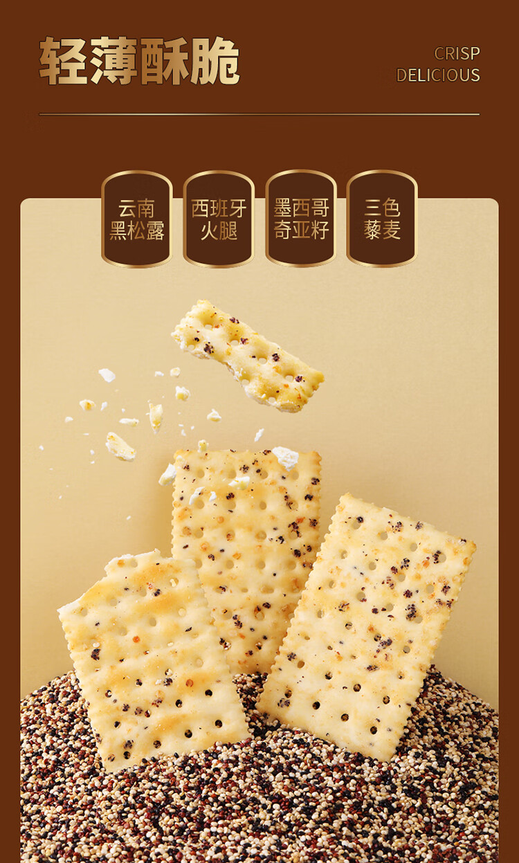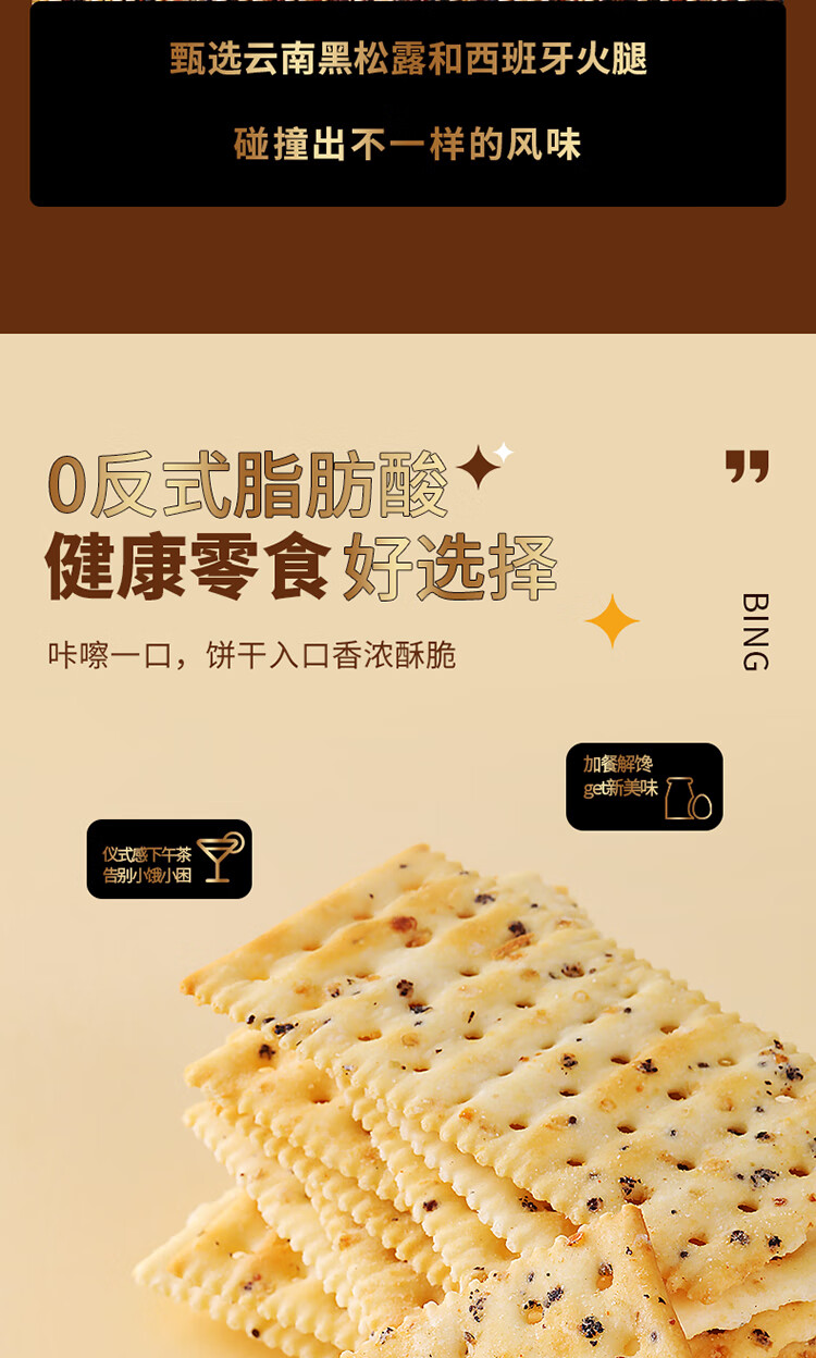 不多言2箱黑松露火腿苏打饼干整箱藜麦奇亚籽小零食山早餐姆官方旗舰店 【1箱/400g/18包/52片】