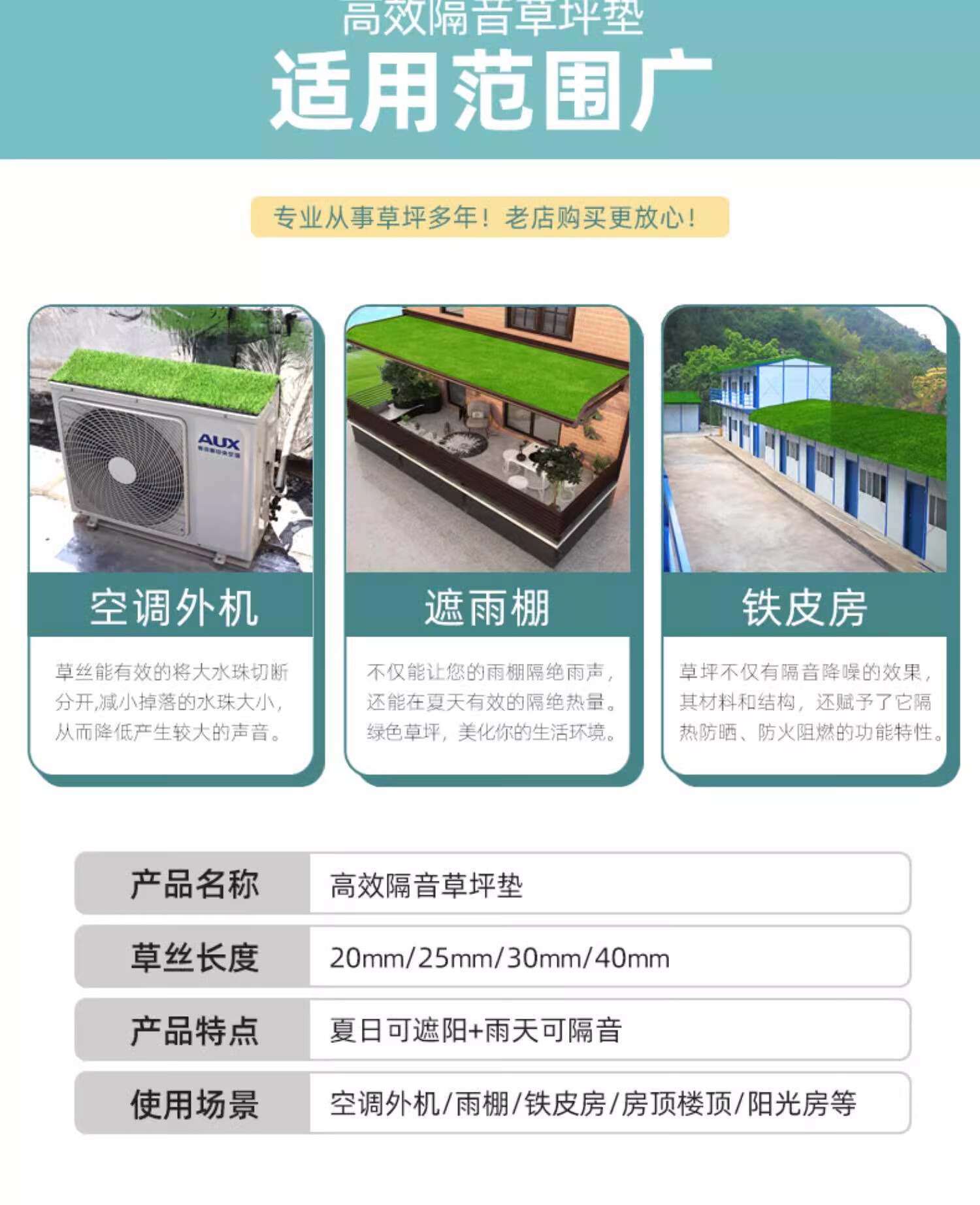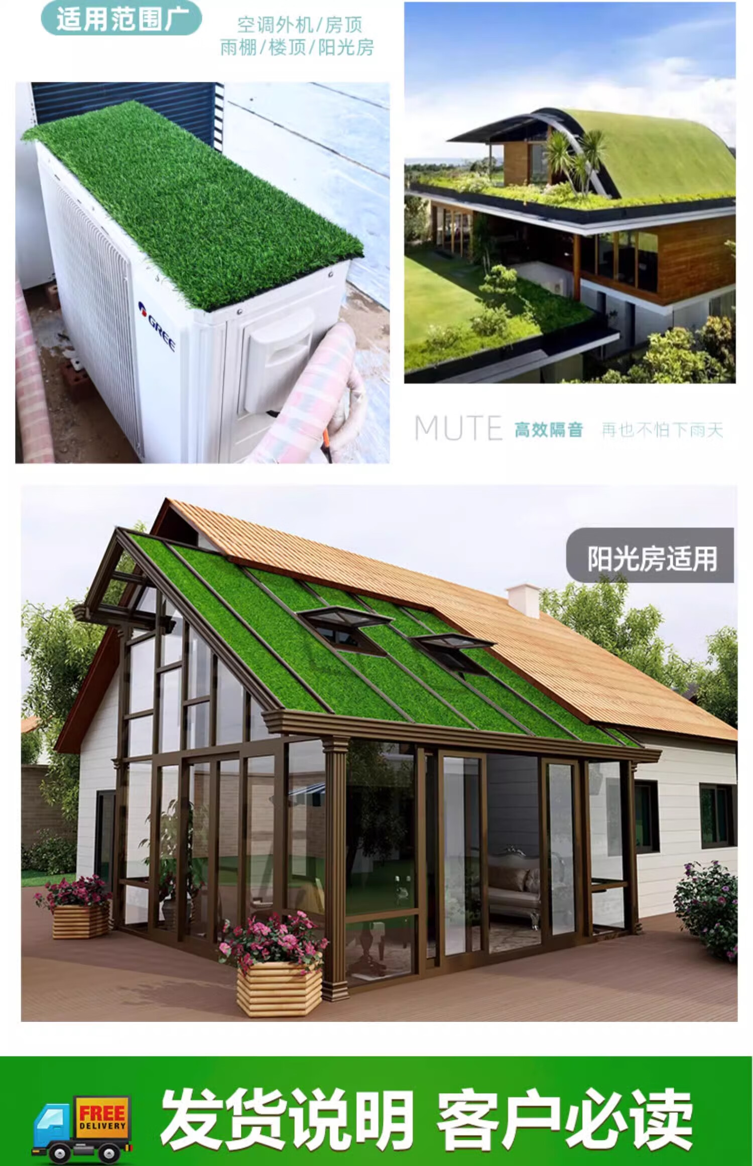 清雅仿真草坪隔音垫子假草皮屋顶阳台隔热防滴水声空调外机雨棚假草坪 3cm加密款消音草(1米宽*1米长)