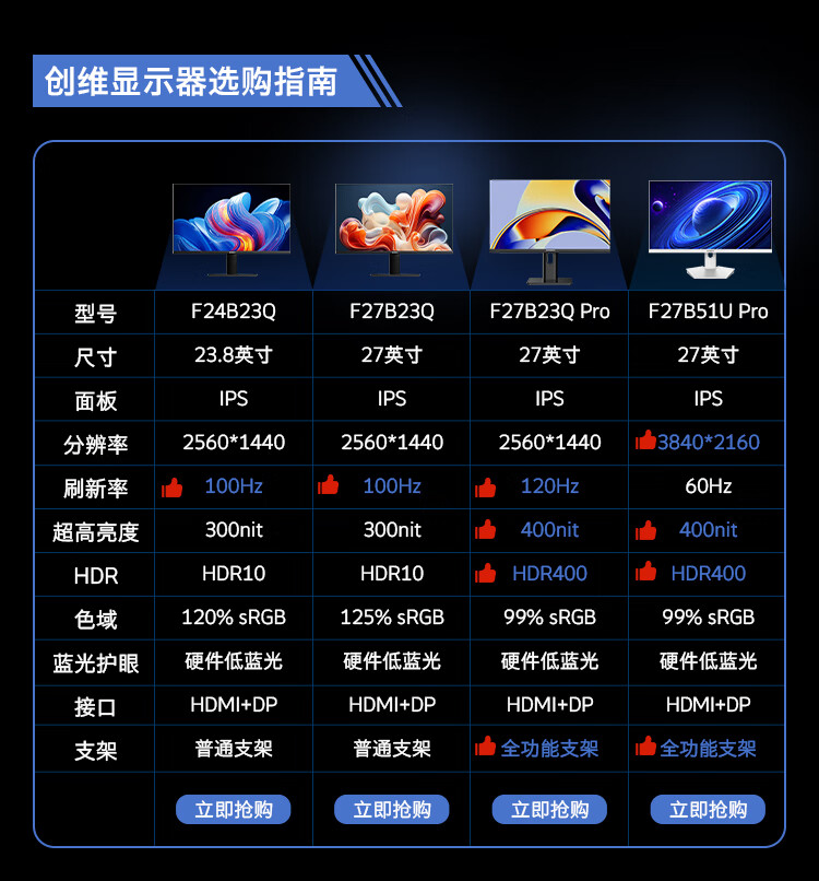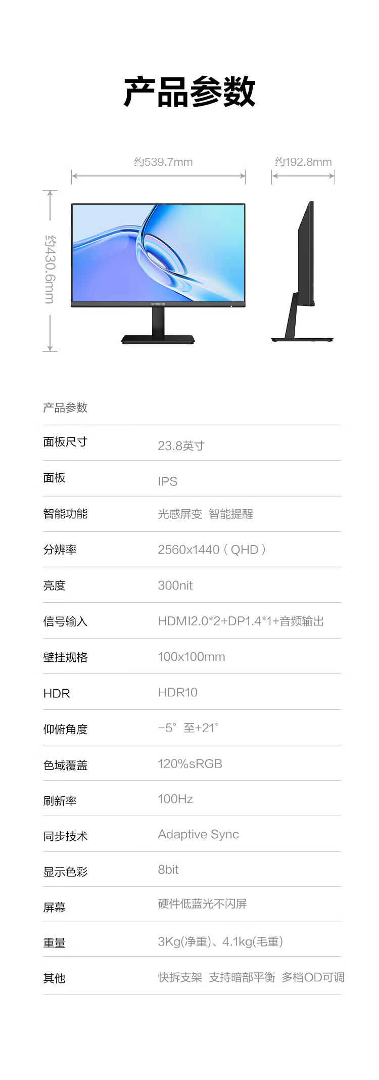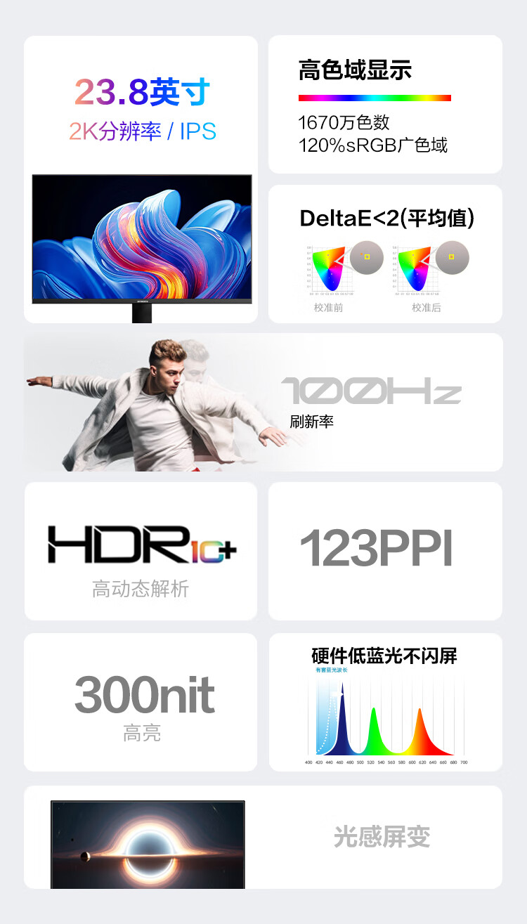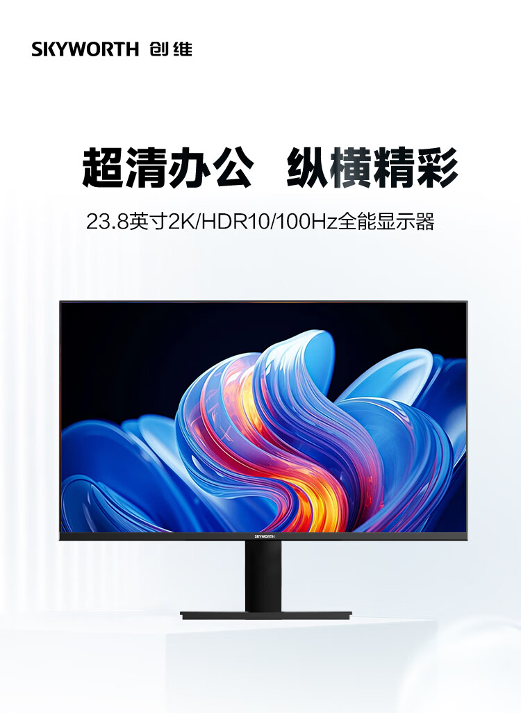 创维23.8英寸 2K高清 IPS广色域 100Hz 硬件低蓝光 HDR10 智能光感 可壁挂 轻电竞办公显示器F24B23Q