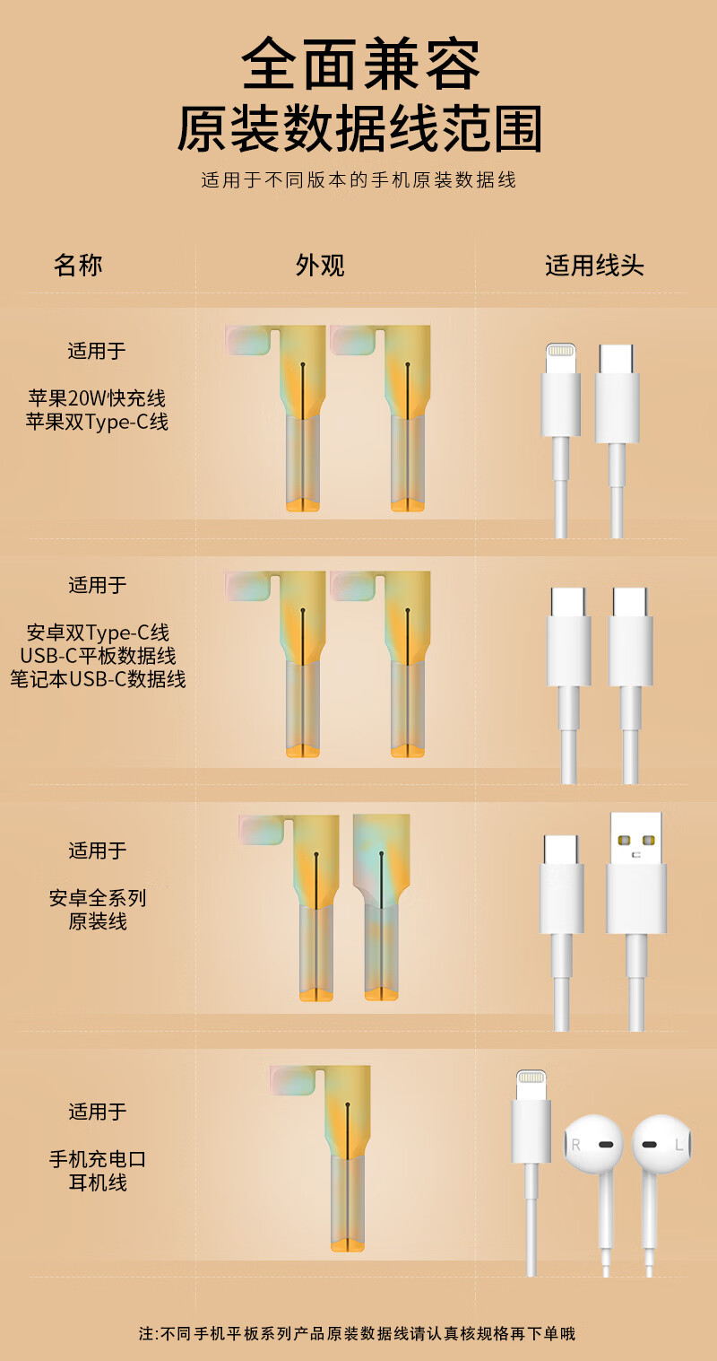 MPPMCK手机充电线保护套防断头数据线保护套防折断适用于苹果16promax手机充电线保护头华为vivo专用 双typec【粉色】七代新款数据线保护套