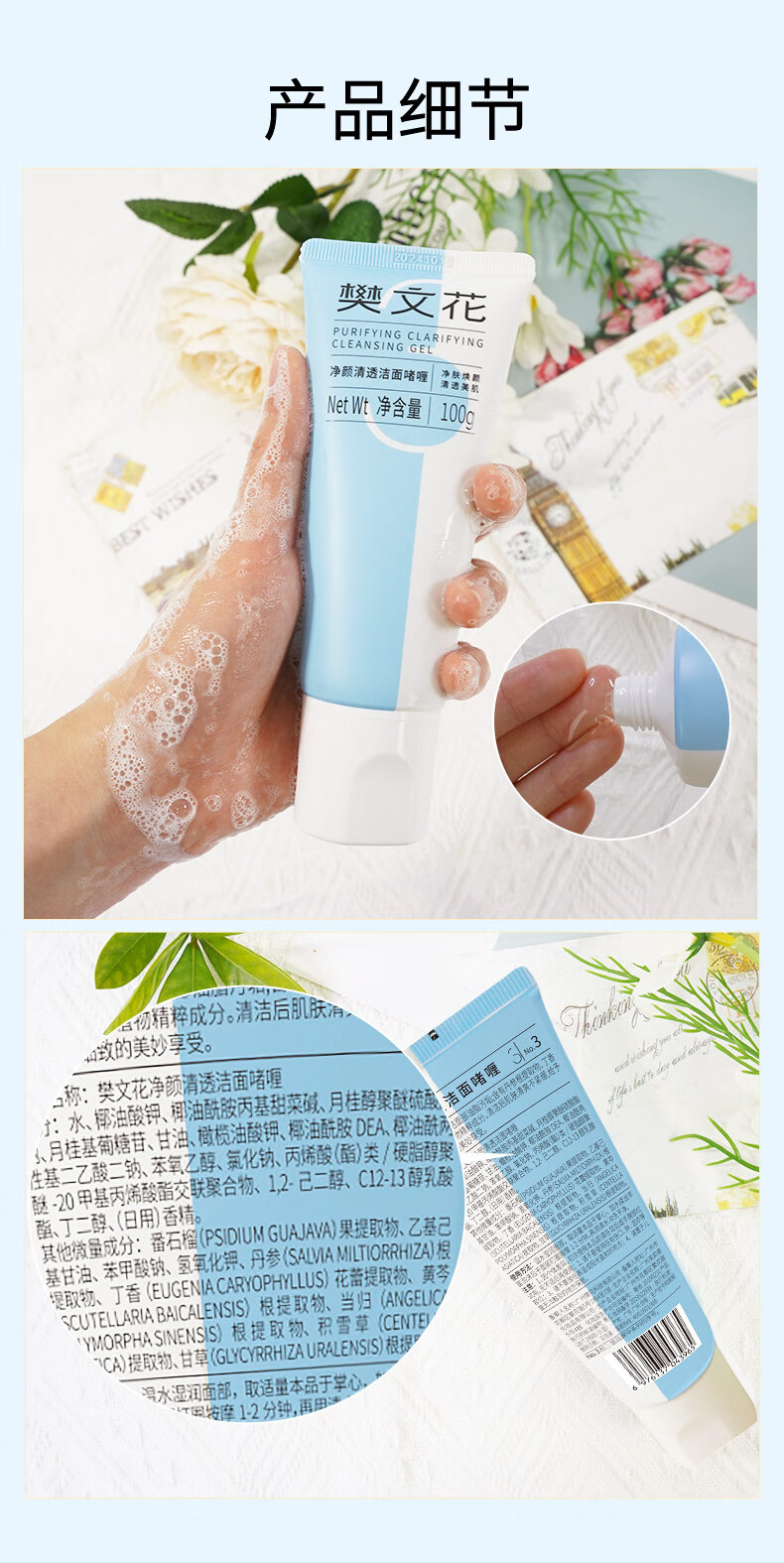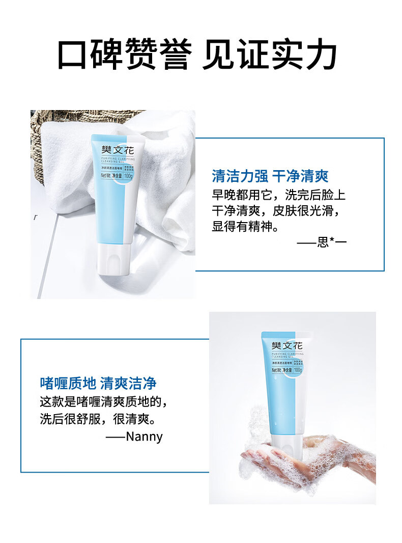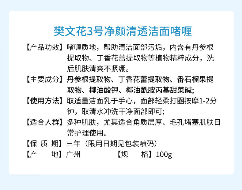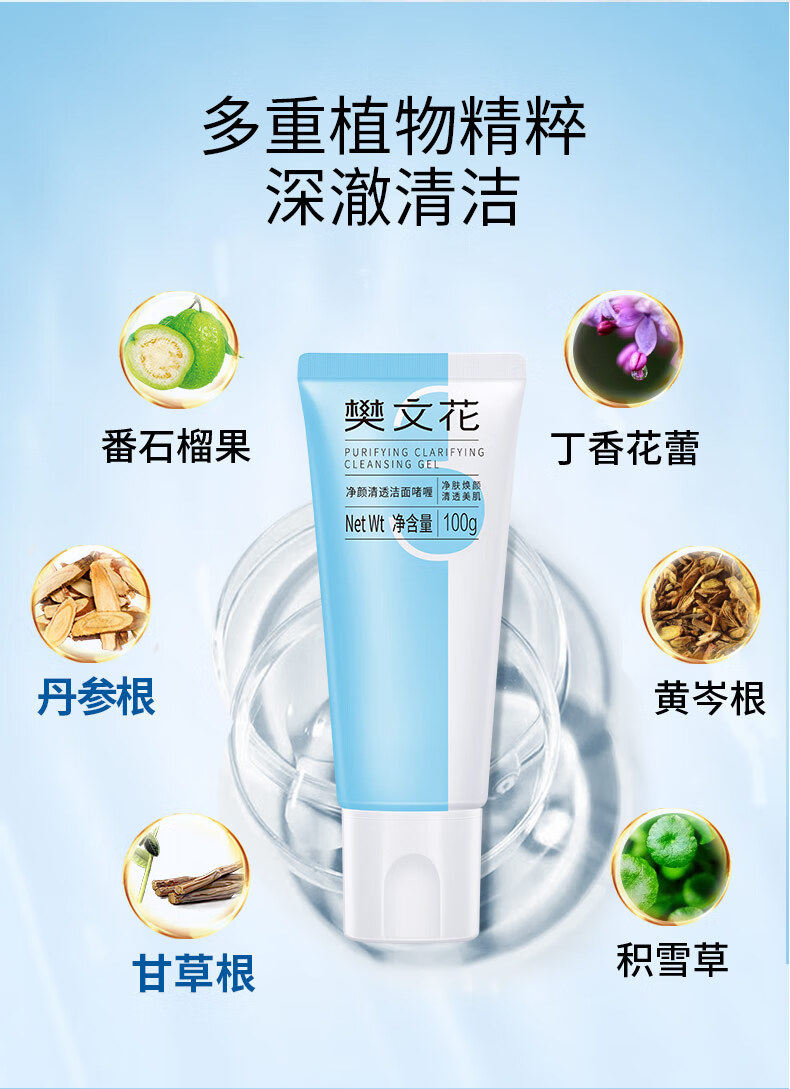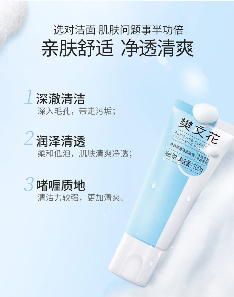 樊文花(fawa)3号净颜清透洁面啫喱清洁脸部肌肤油皮洗面奶送女生礼物 100g