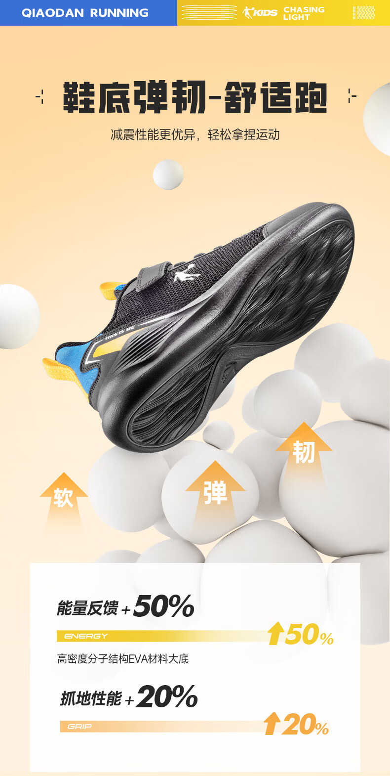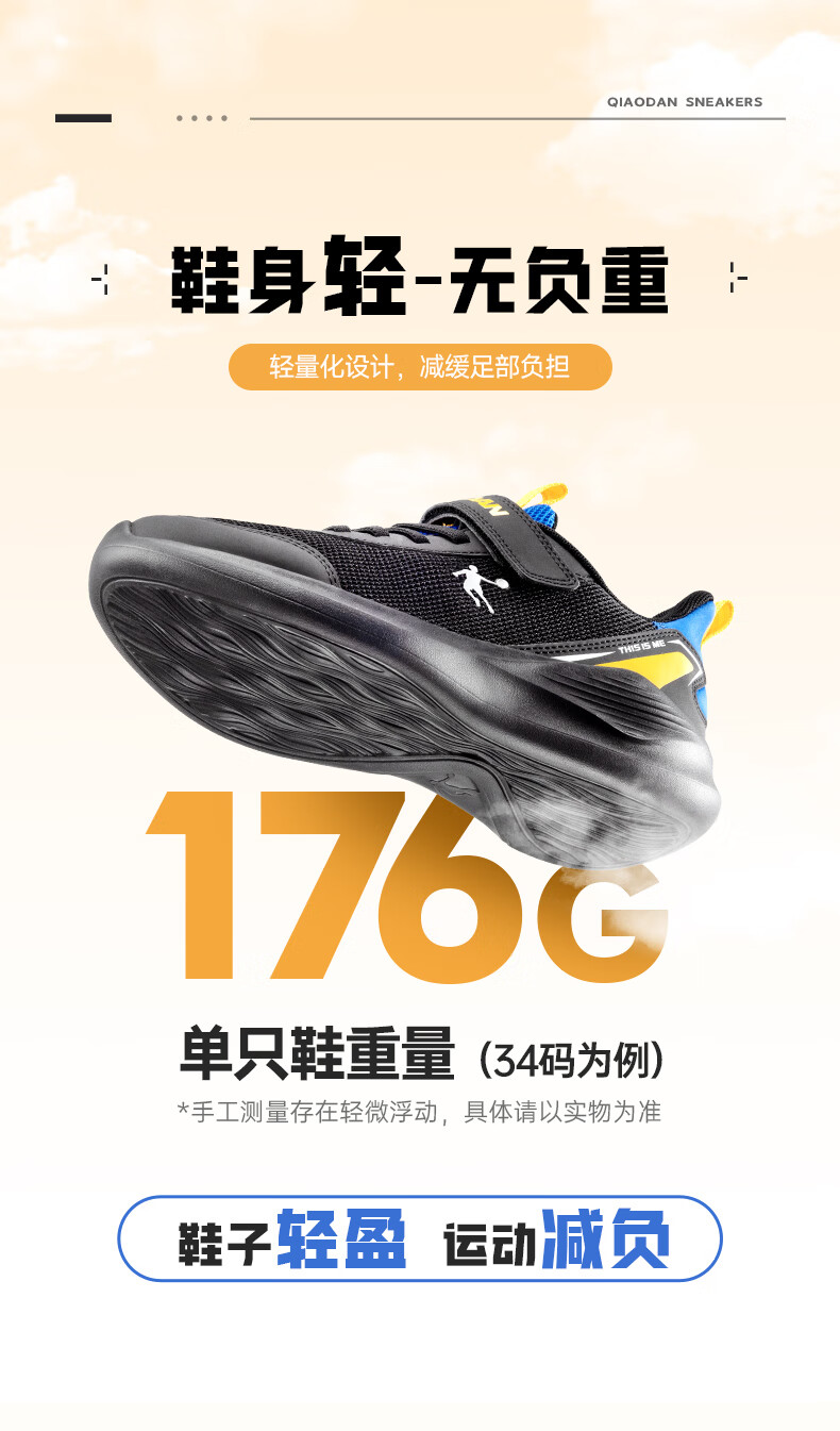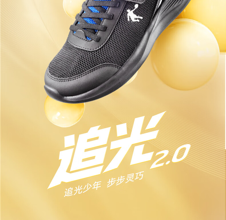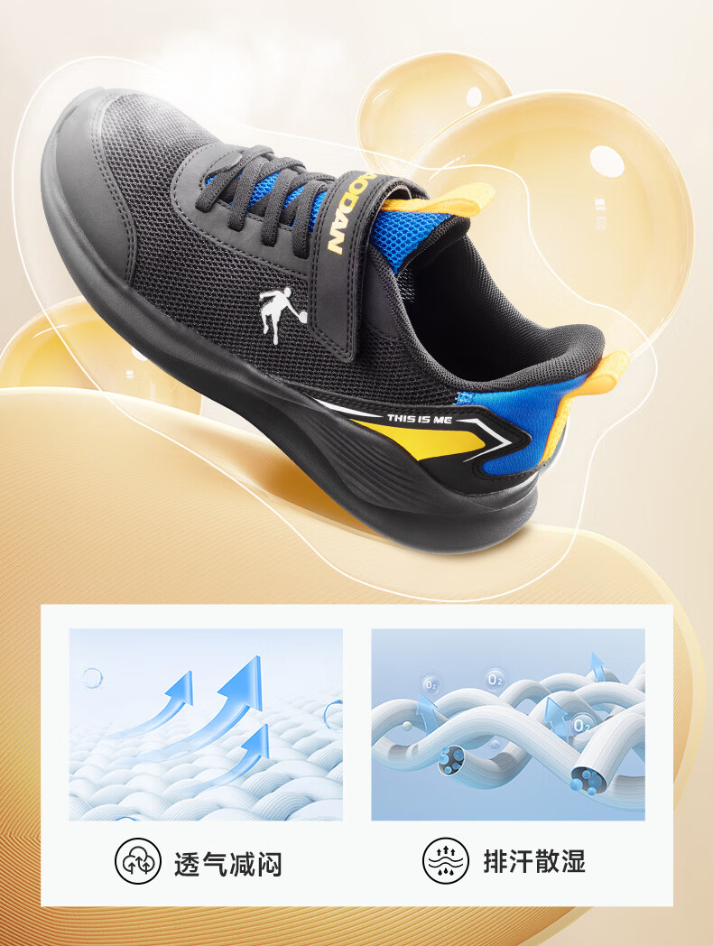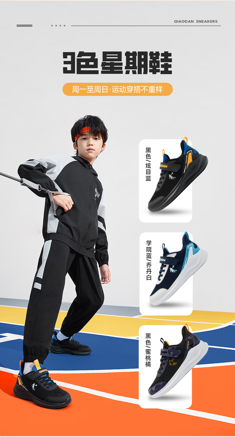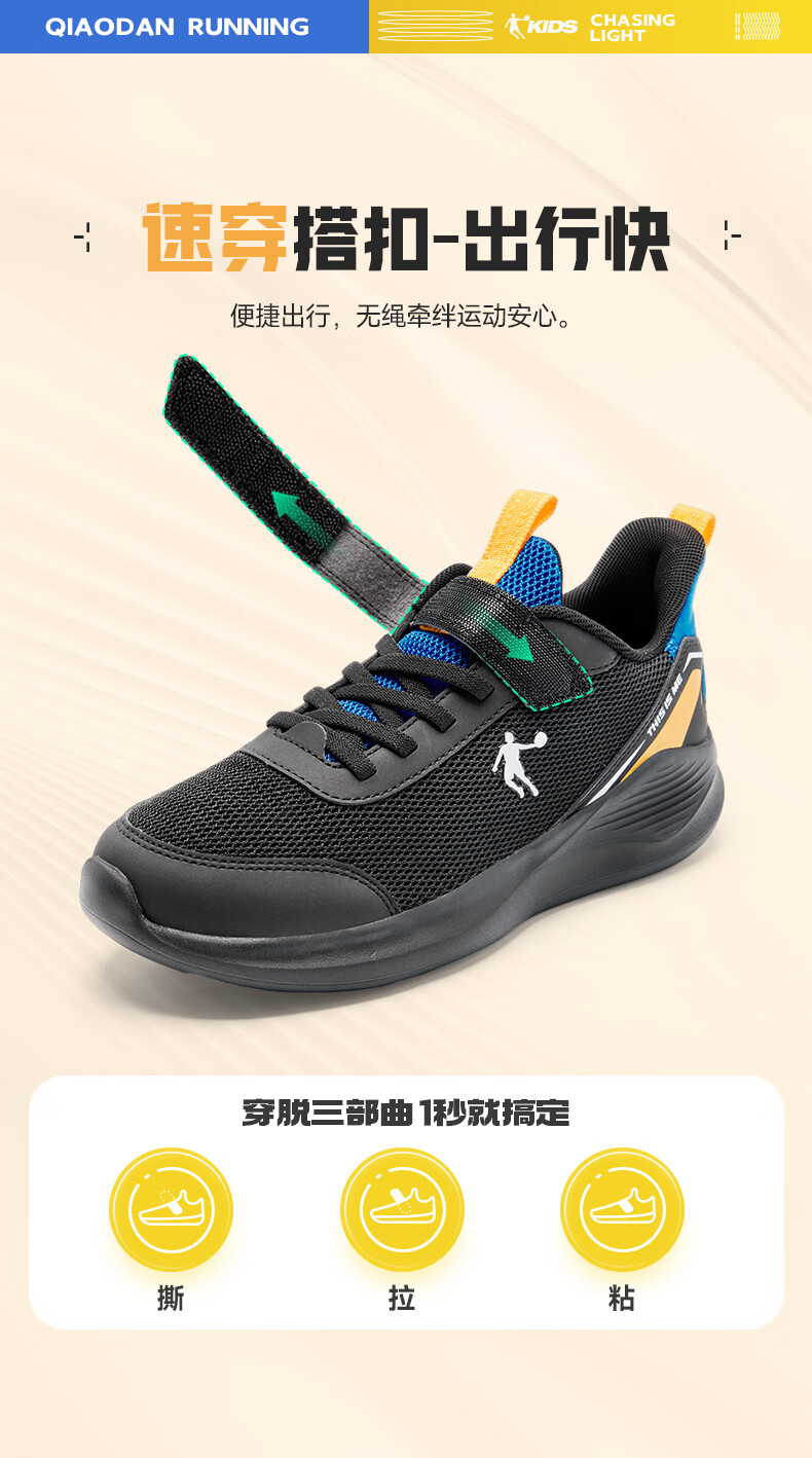 乔丹男大童跑步鞋春秋季儿童运动鞋子小孩密网童鞋 黑色-蜜桃橙38