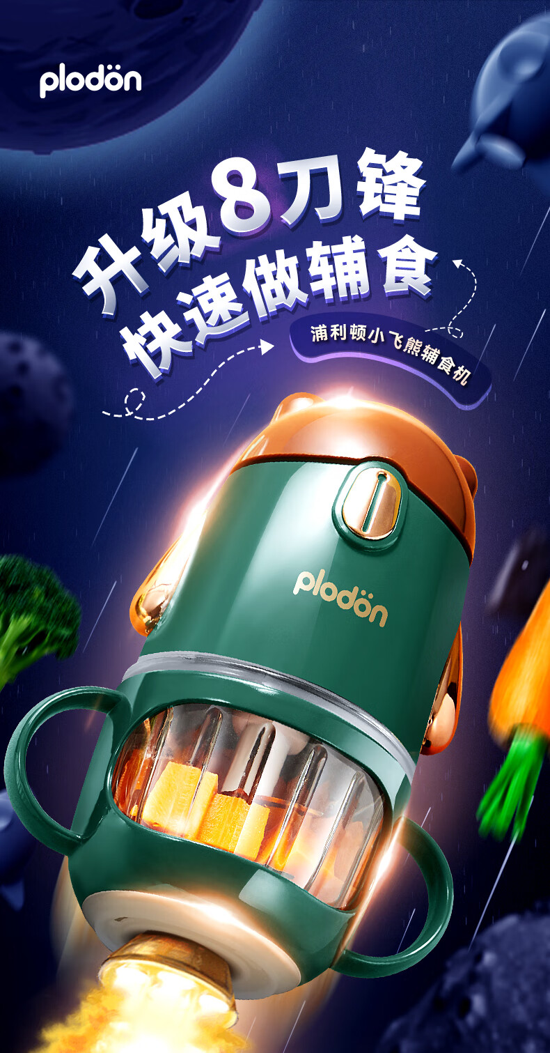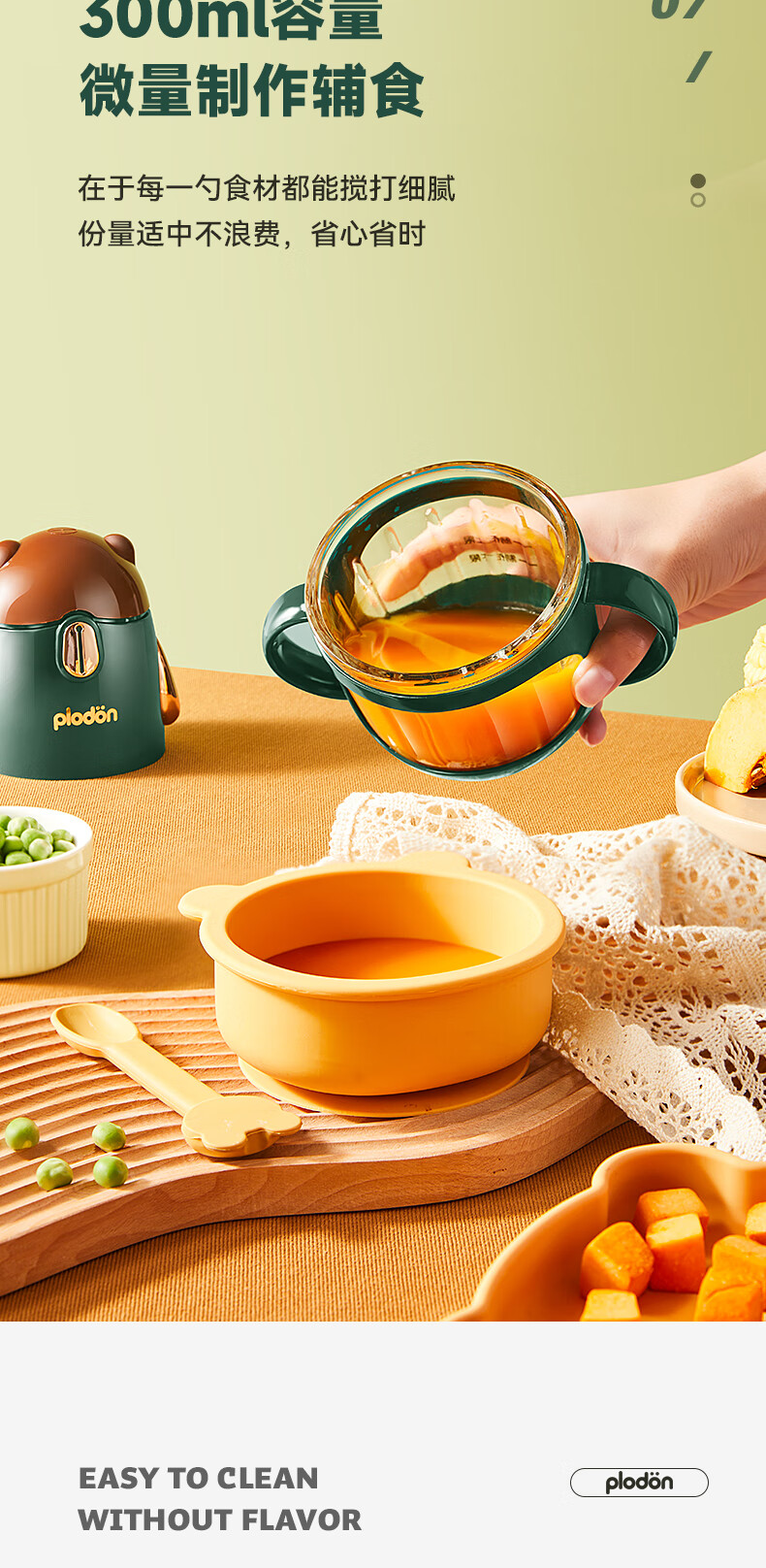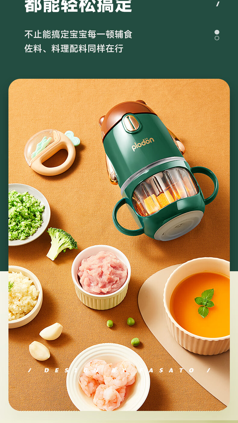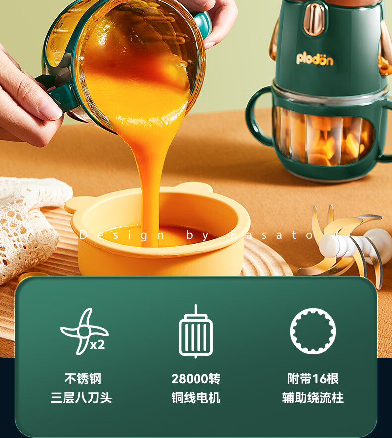 浦利顿(PLODON)婴儿辅食机多功能辅食料理机 棕5 小棕熊辅食机单杯 8叶刀头 防飞溅