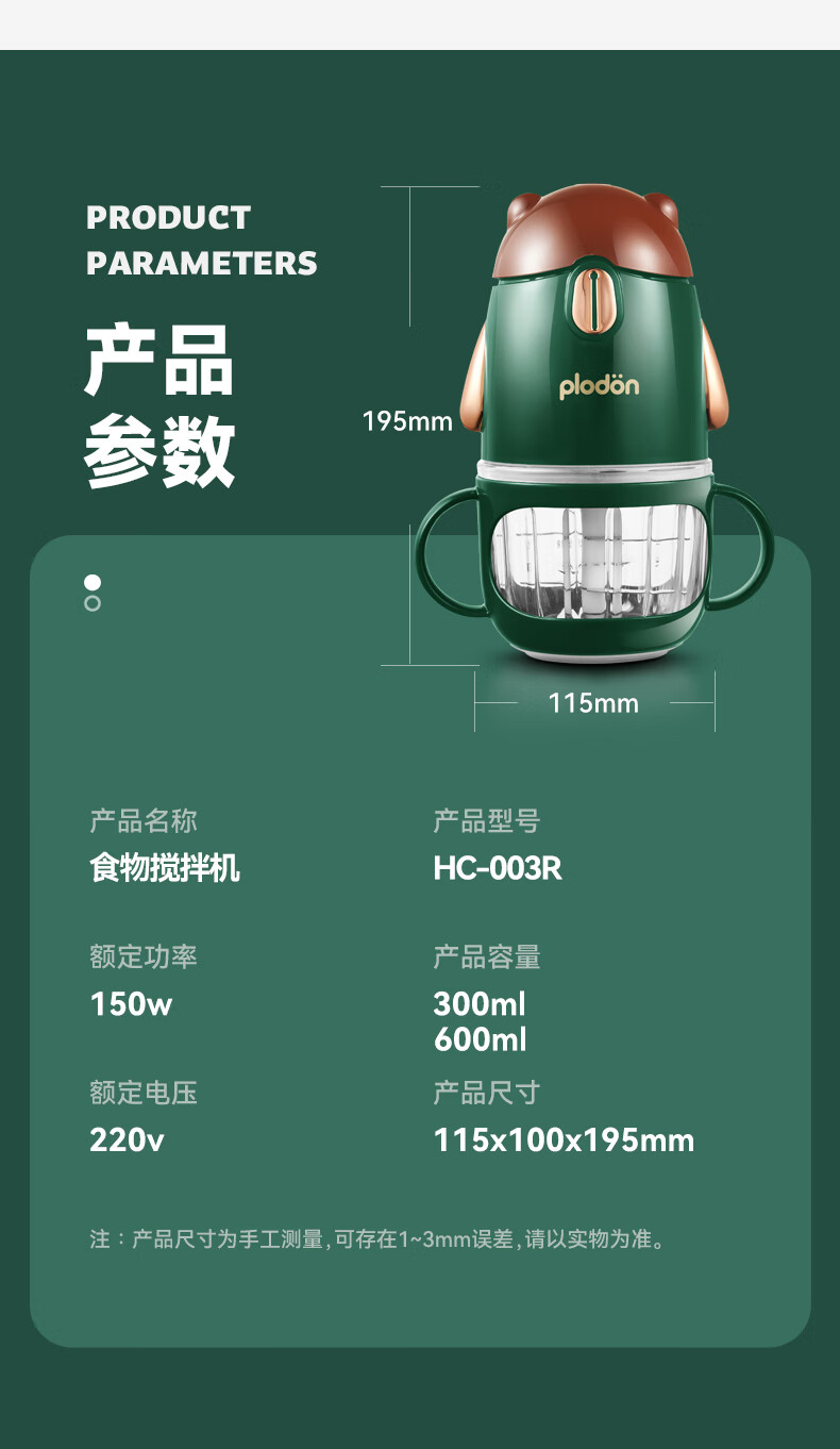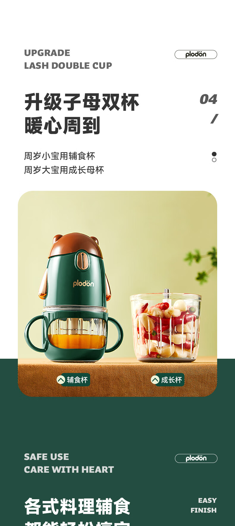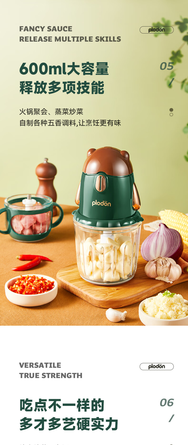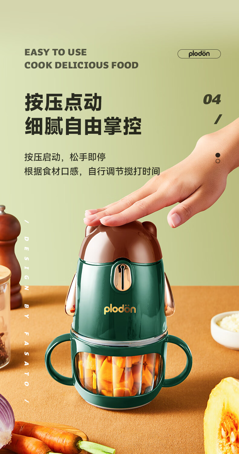 浦利顿(PLODON)婴儿辅食机多功能辅食料理机 棕5 小棕熊辅食机单杯 8叶刀头 防飞溅