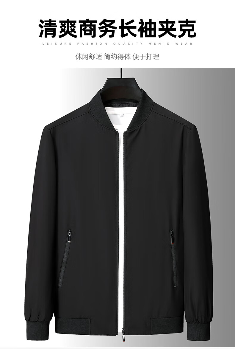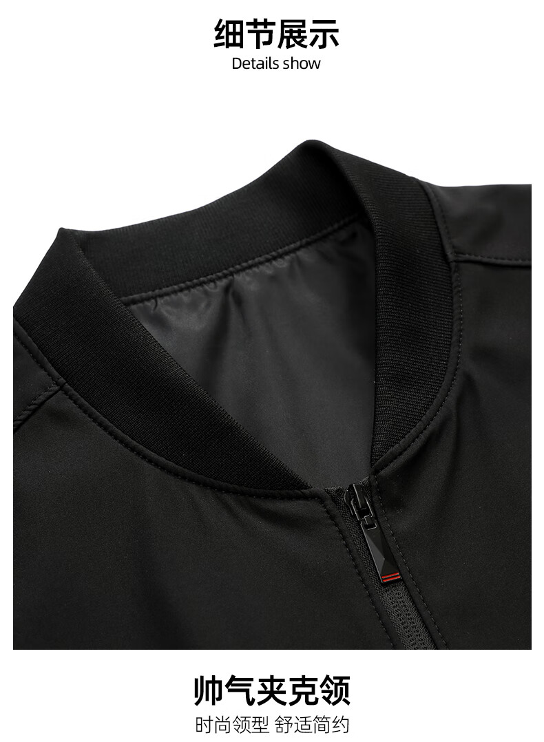 罗蒙(ROMON)夹克男外套春秋新款商务休闲男士通勤棒球服茄克衫男装上衣 黑色 2XL (建议体重140-155斤)