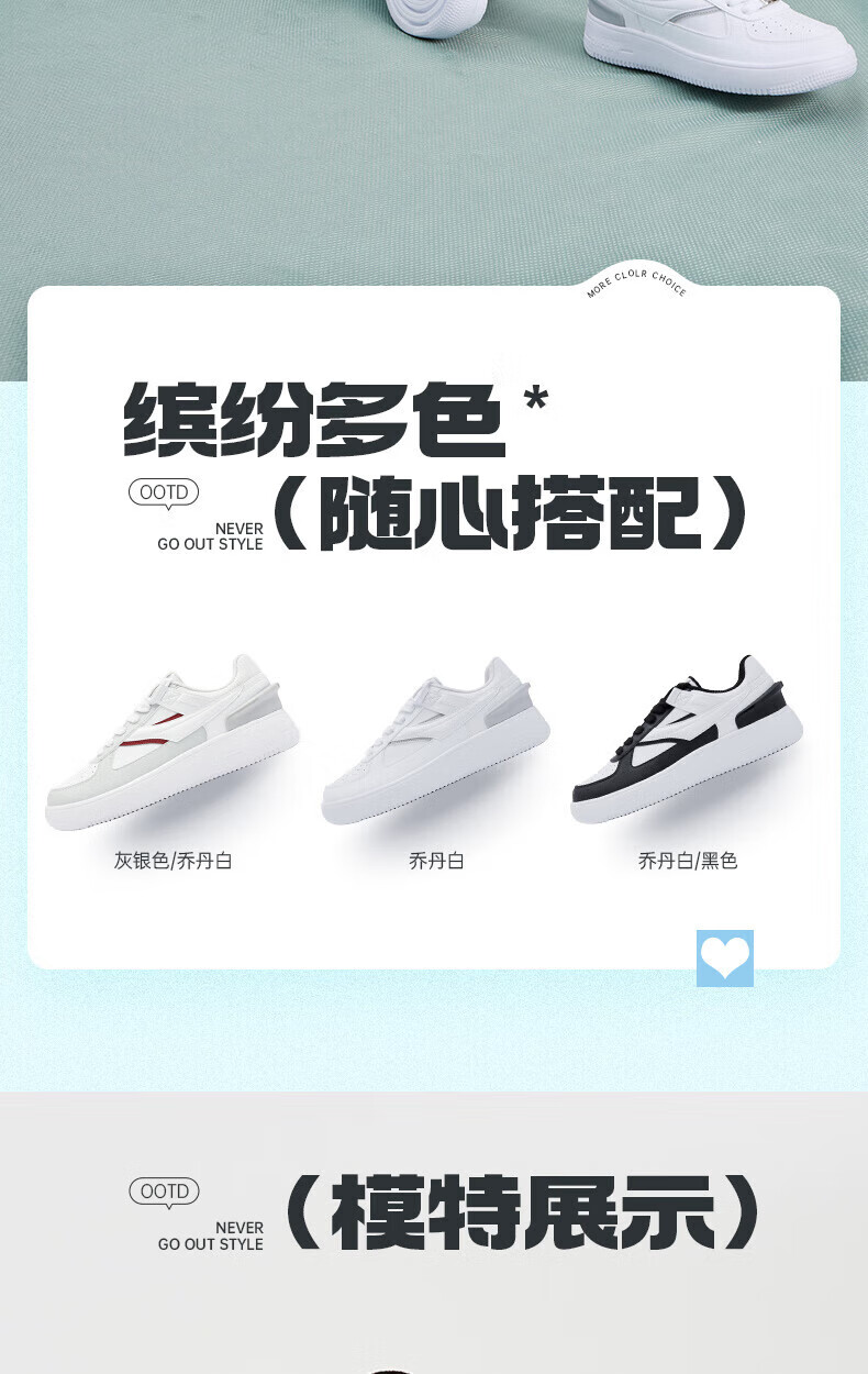 乔丹QIAODAN男鞋板鞋新款潮流运动休闲鞋学生百搭舒适减震小白鞋 灰银色/乔丹白 39
