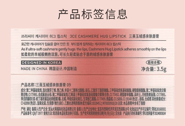 3CE口红唇绒围炉棕#09TAUPEBEIGE唇膏生日礼物送女友中秋礼品