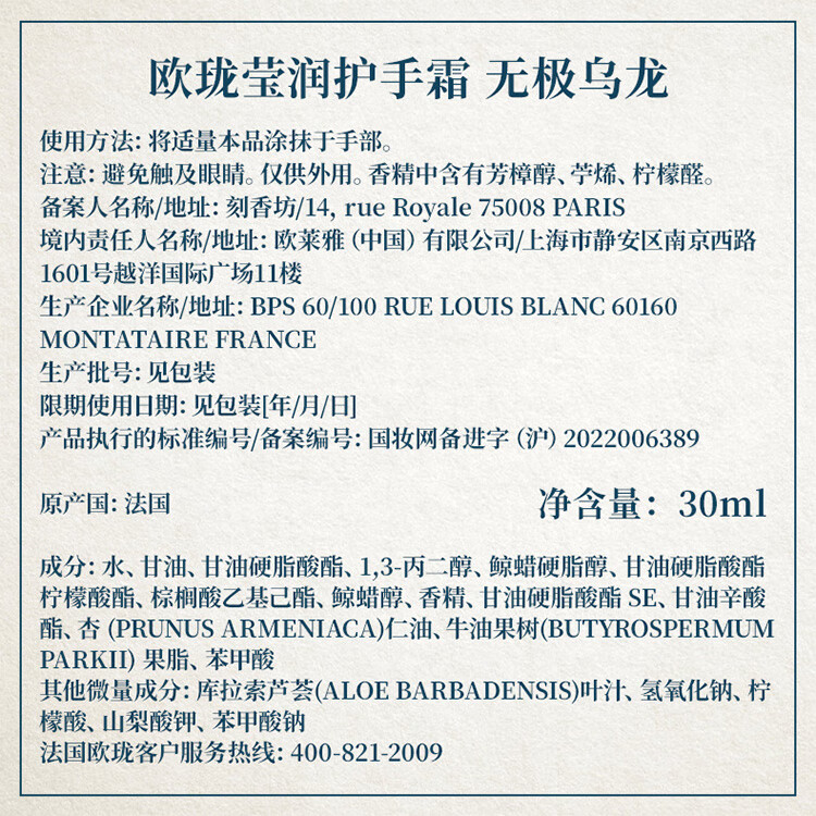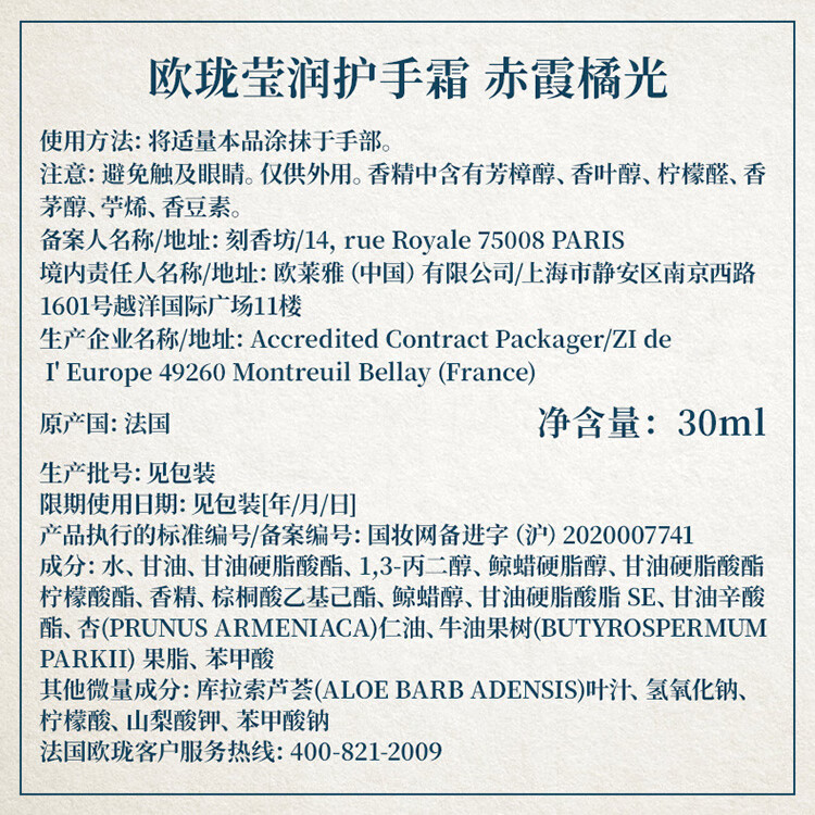 欧珑赤霞橘光护手霜30ml礼盒装生日礼物节日礼物送女友
