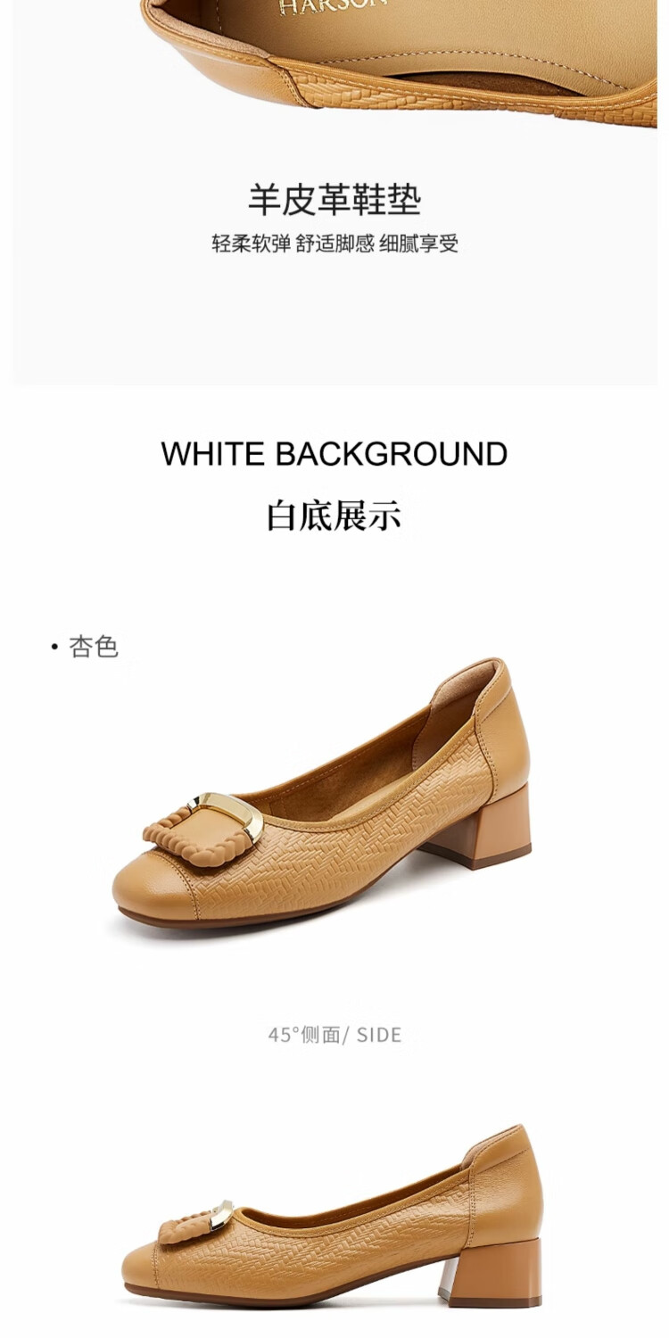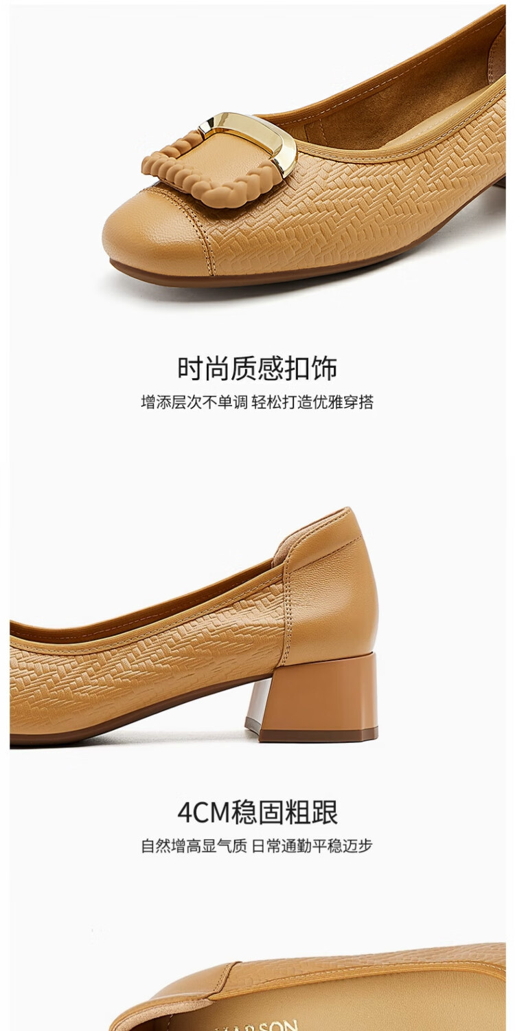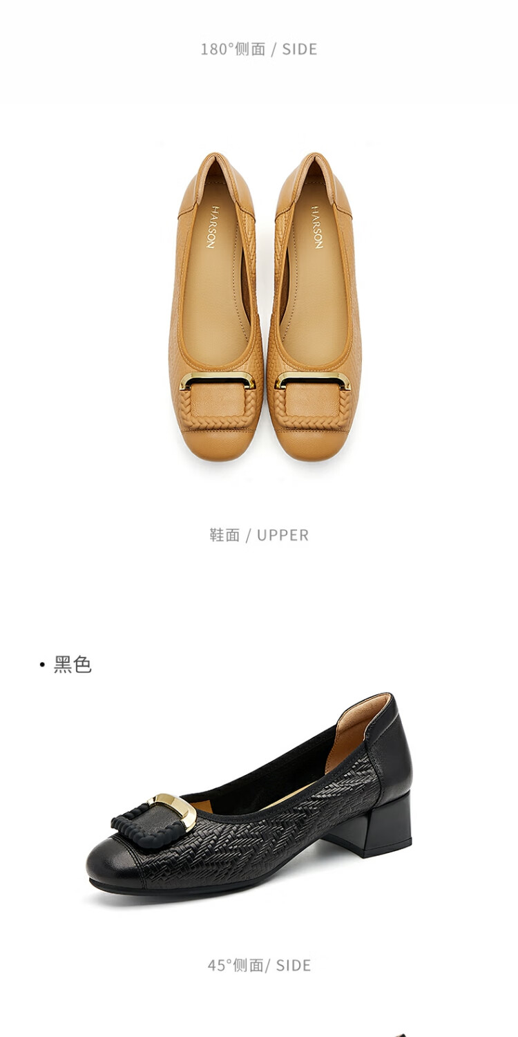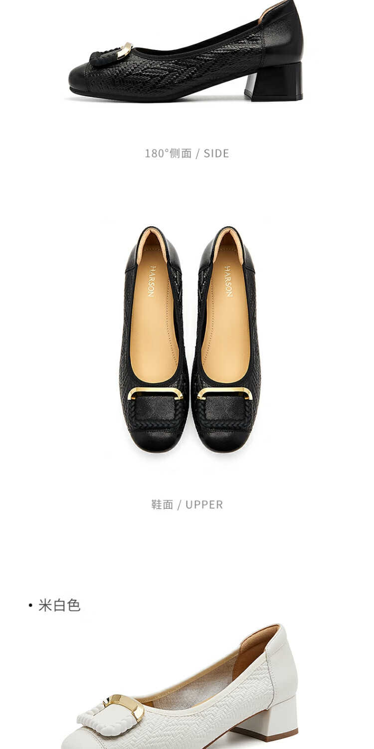 哈森时尚饰扣中粗跟百搭经典通勤上班浅口单鞋女2025秋HWL250117 黑色 羊皮革 35