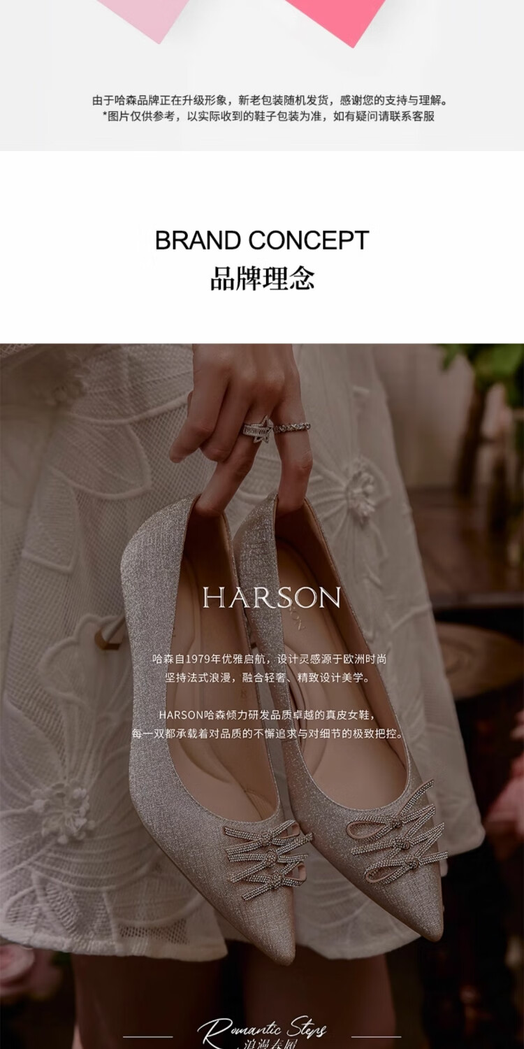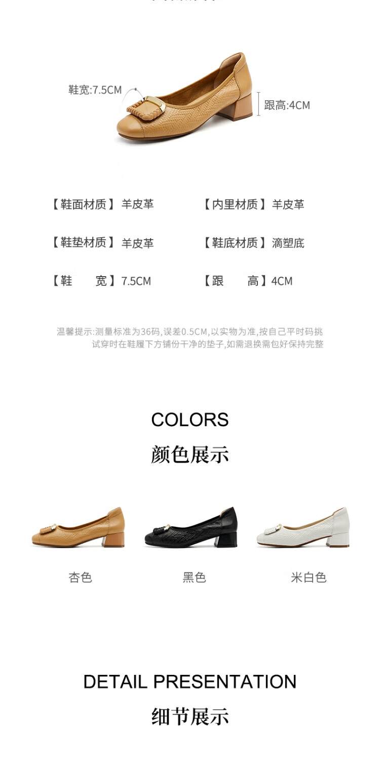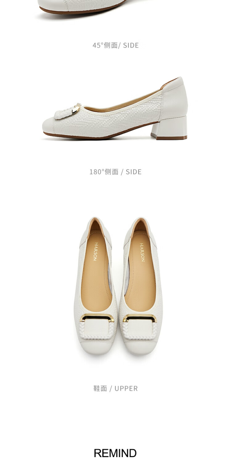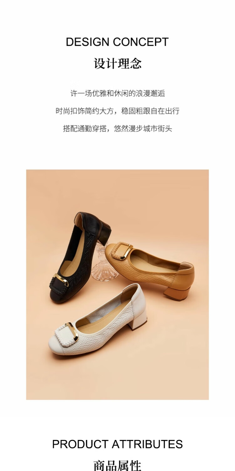 哈森时尚饰扣中粗跟百搭经典通勤上班浅口单鞋女2025秋HWL250117 黑色 羊皮革 35