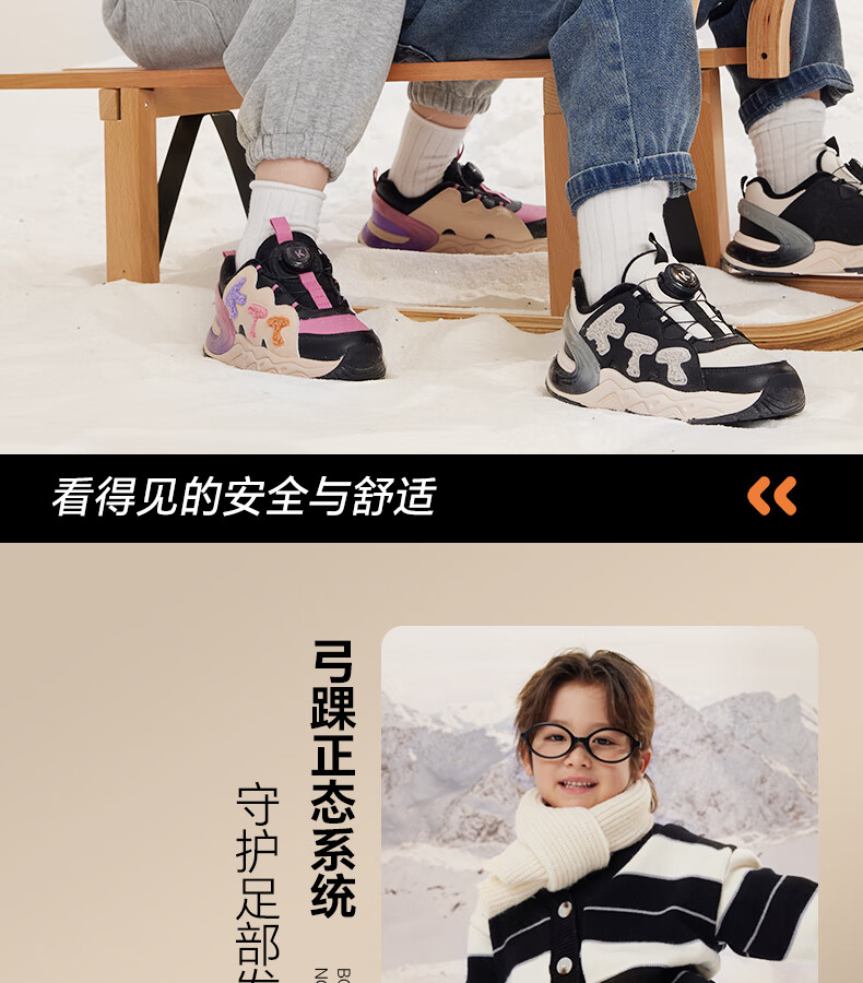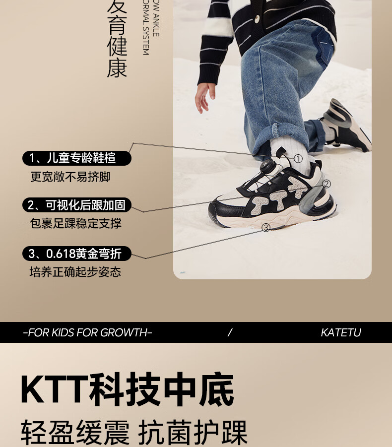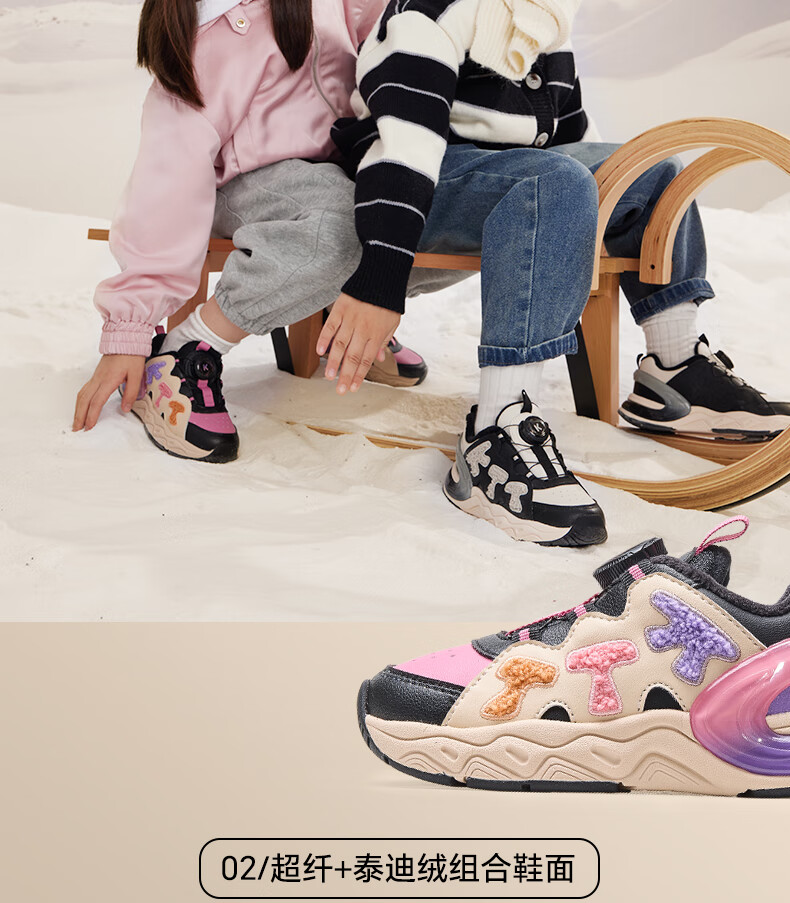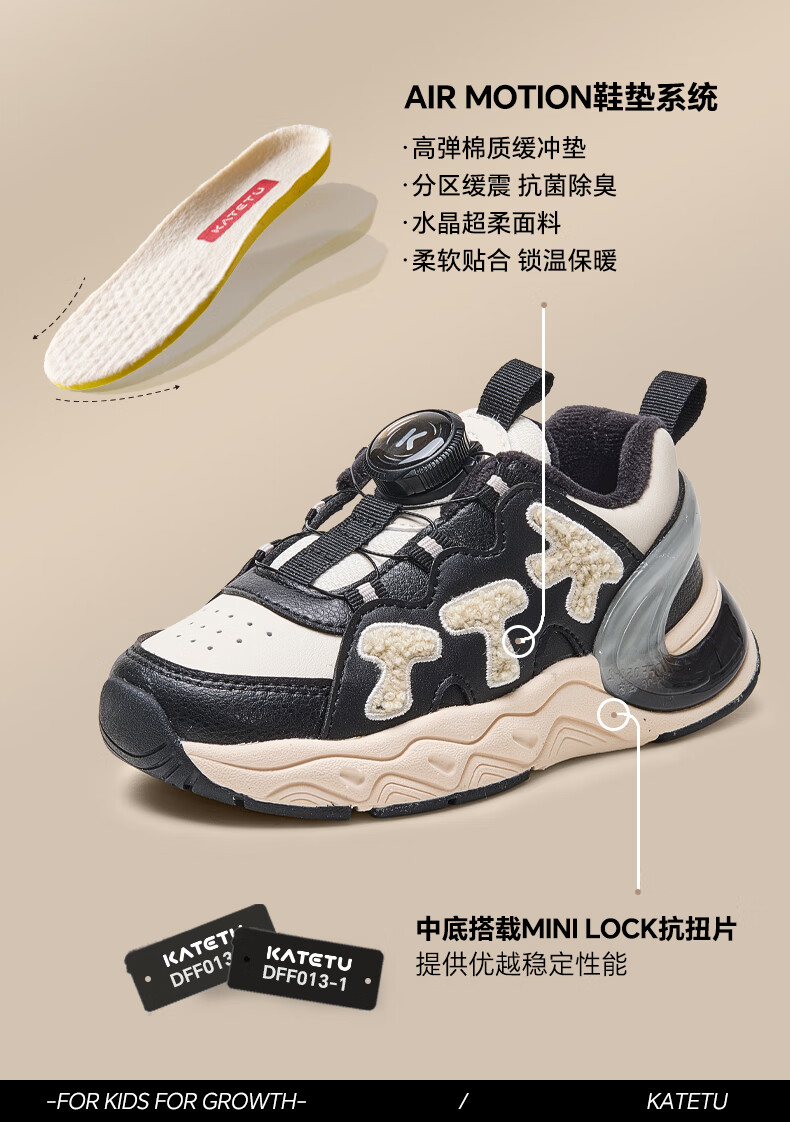卡特兔童鞋儿童运动鞋冬季跑步鞋2024新款篮球鞋防滑加绒保暖儿童拜年鞋 黑米白 30 内长18.5cm 脚长17.6-18.2