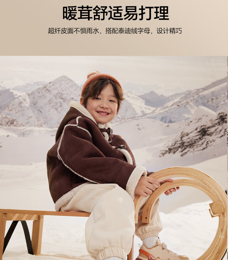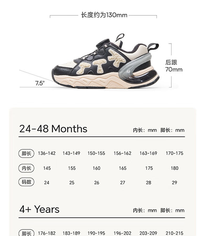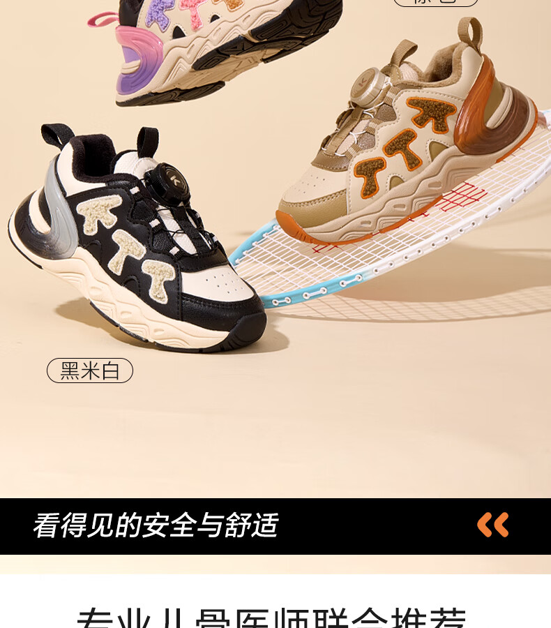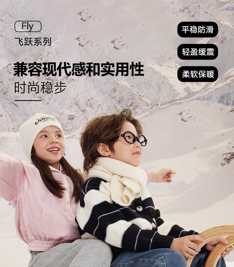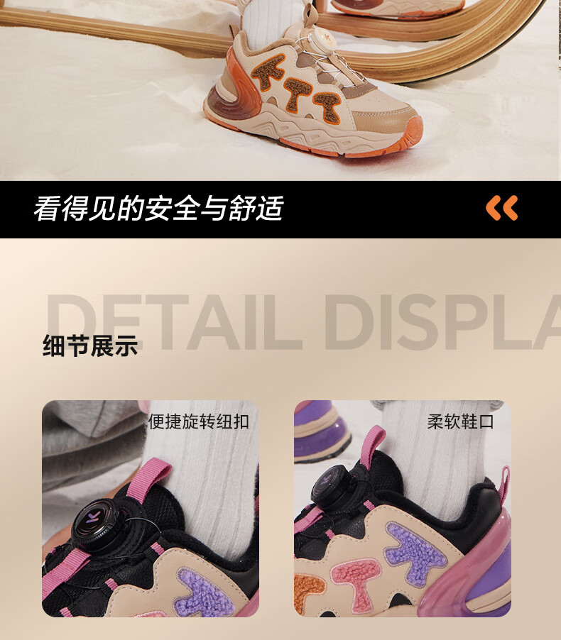 卡特兔童鞋儿童运动鞋冬季跑步鞋2024新款篮球鞋防滑加绒保暖儿童拜年鞋 黑米白 30 内长18.5cm 脚长17.6-18.2