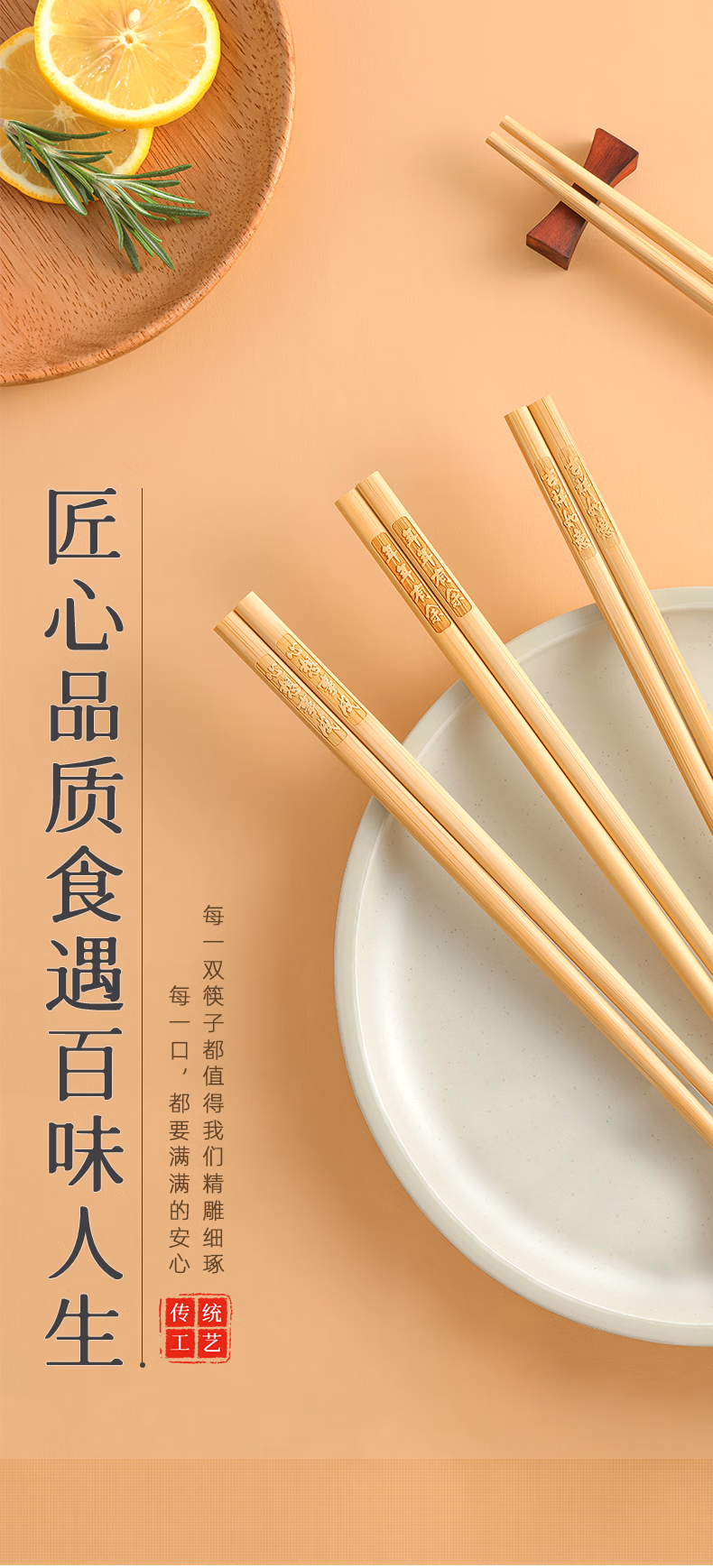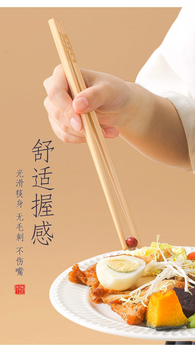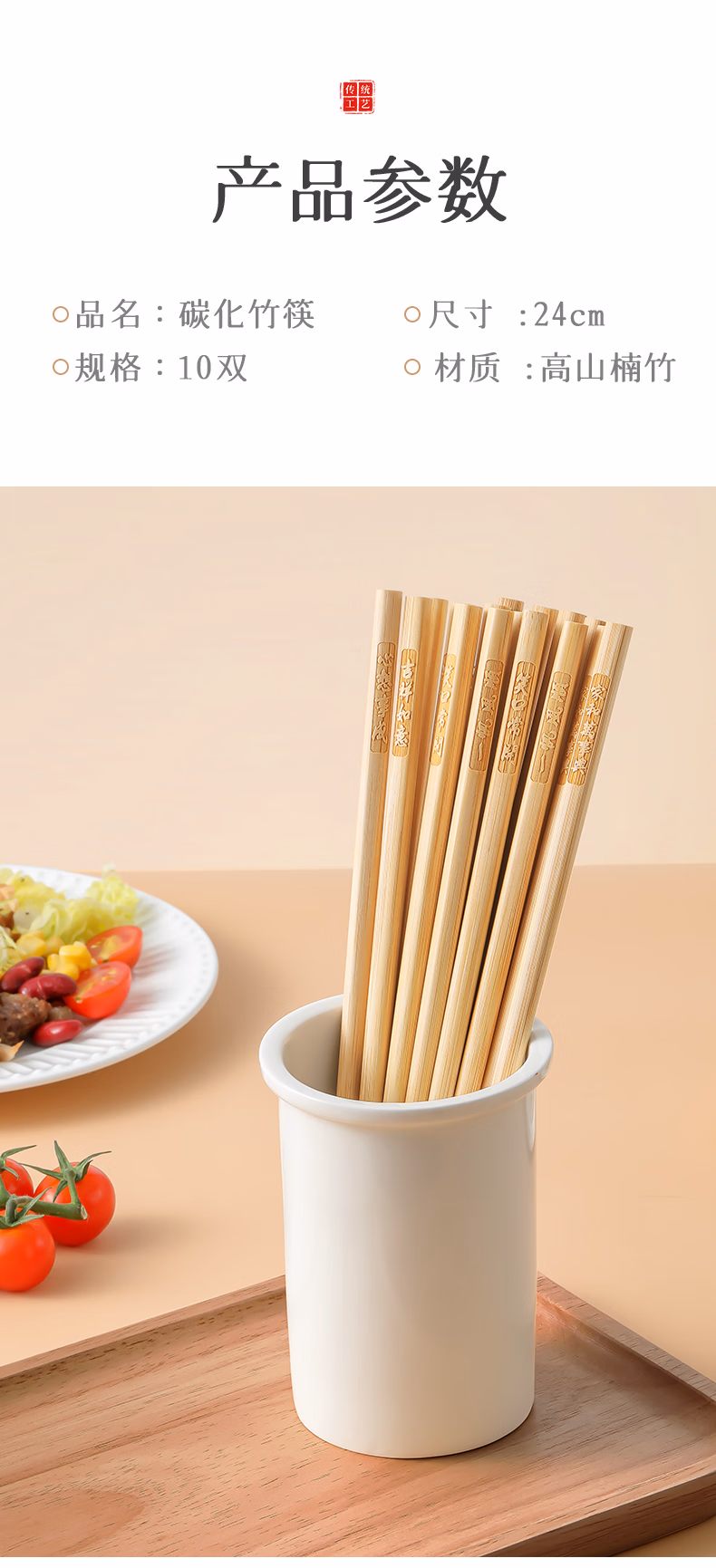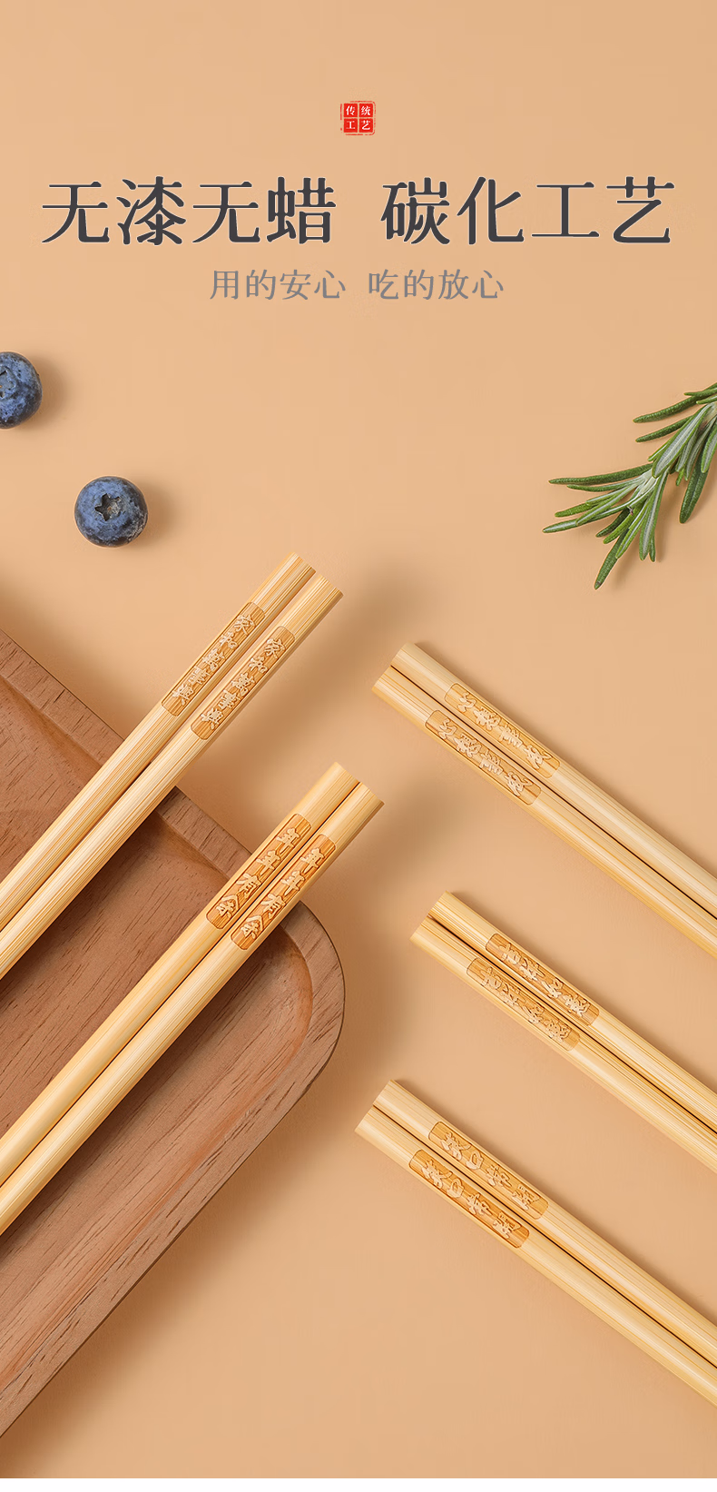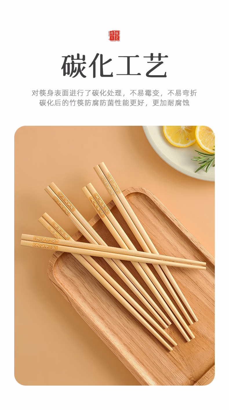 天然楠竹筷子家用高档无漆无蜡木快子抗菌防霉家庭装 10双