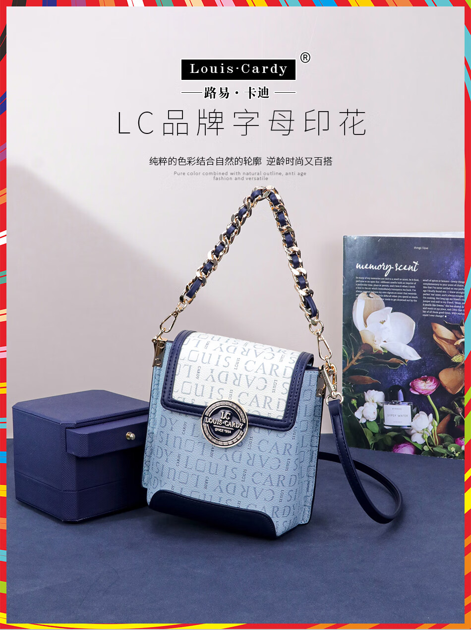 路易.卡迪斜挎包 蓝色大海老花手提包送女友老婆礼物 浅蓝