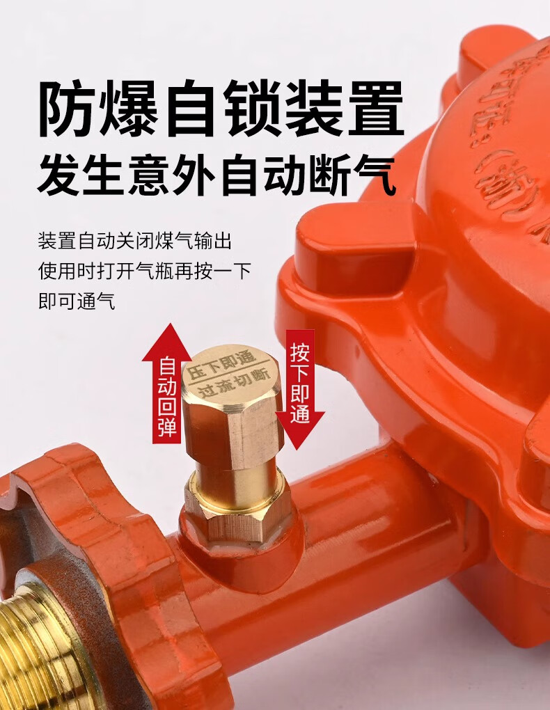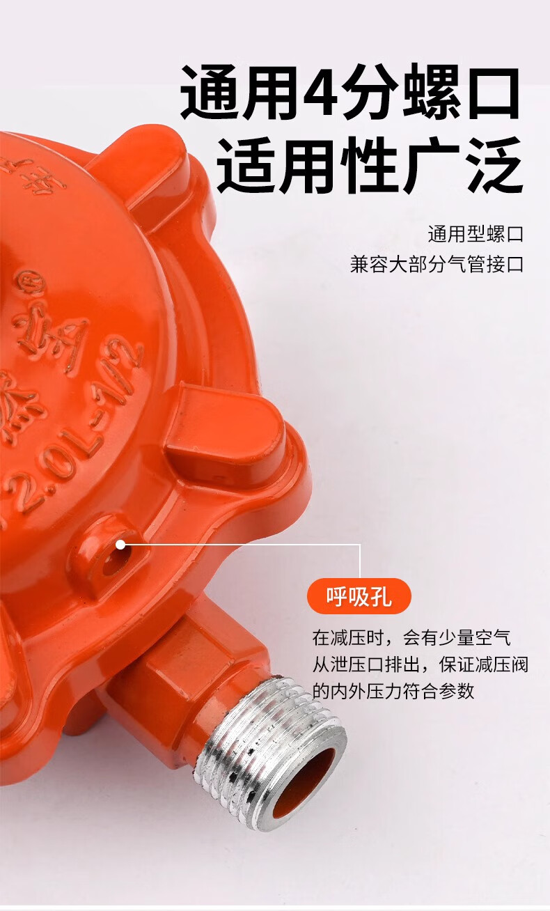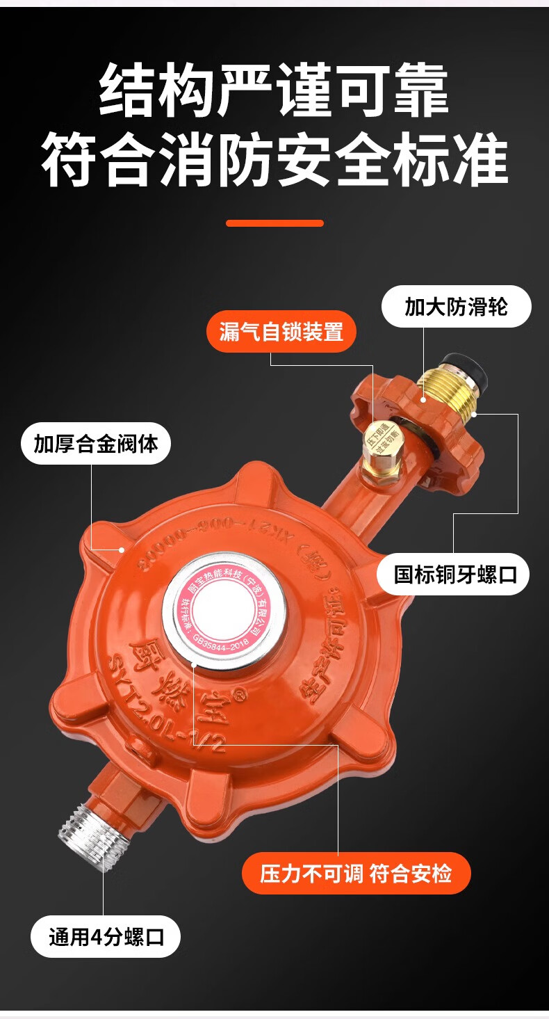 厨燃宝 国标2.0商用煤气减压阀饭店猛火灶防爆自闭液化气罐大流量安全阀 【螺口】商用2.0减压阀