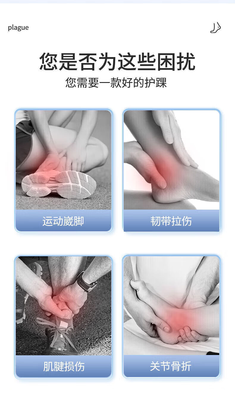 通用脚踝扭伤护具医用护踝固定康复男运动女扭伤恢复器防崴脚踝 灰色[ 灰色[固定康复护踝/左右脚通用 M(3639码)