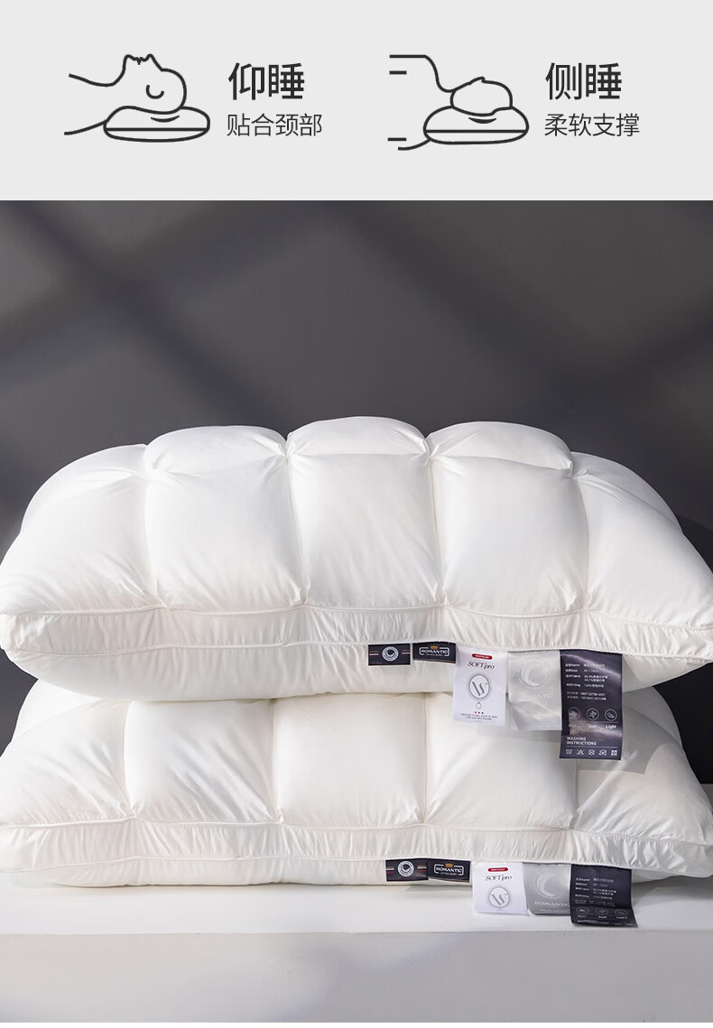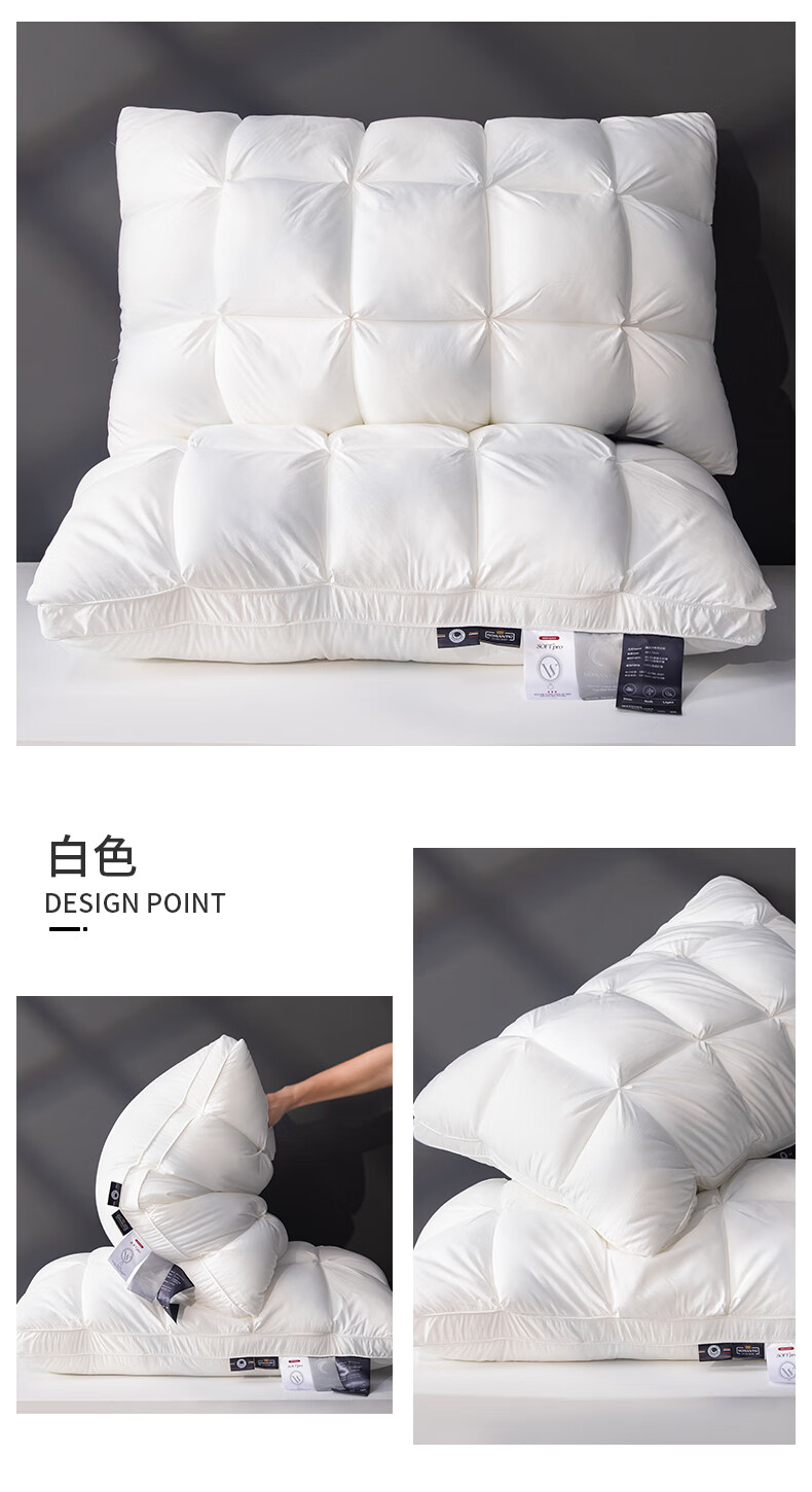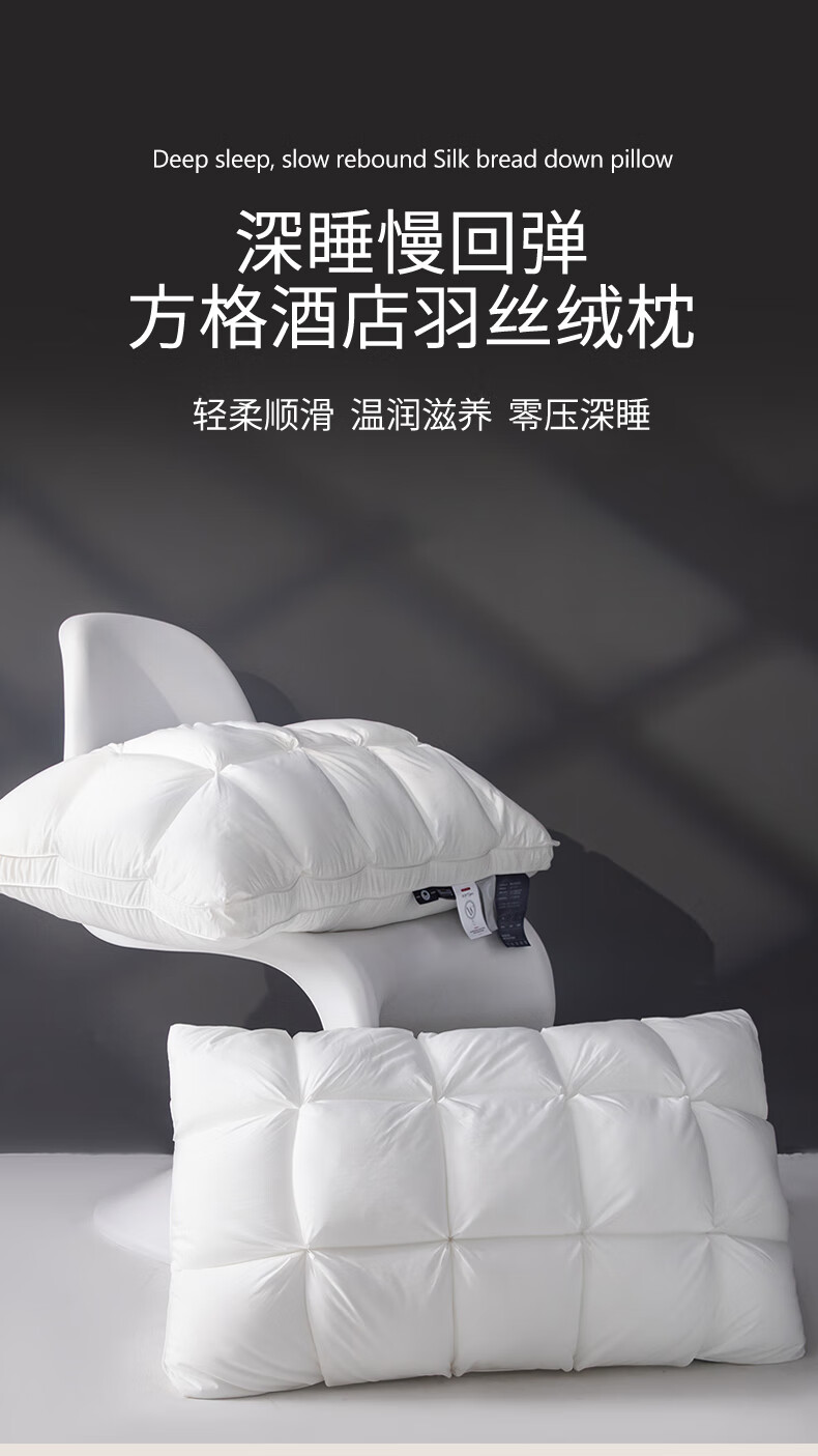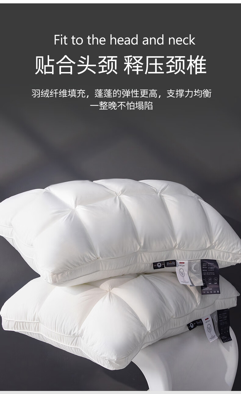 元族2025新款星级方格酒店羽丝绒枕枕头枕芯 白色/只 74cm 48*