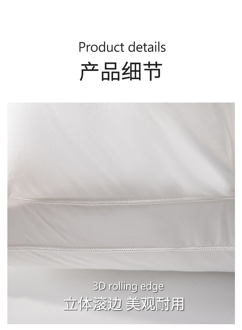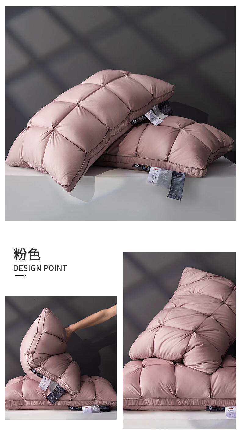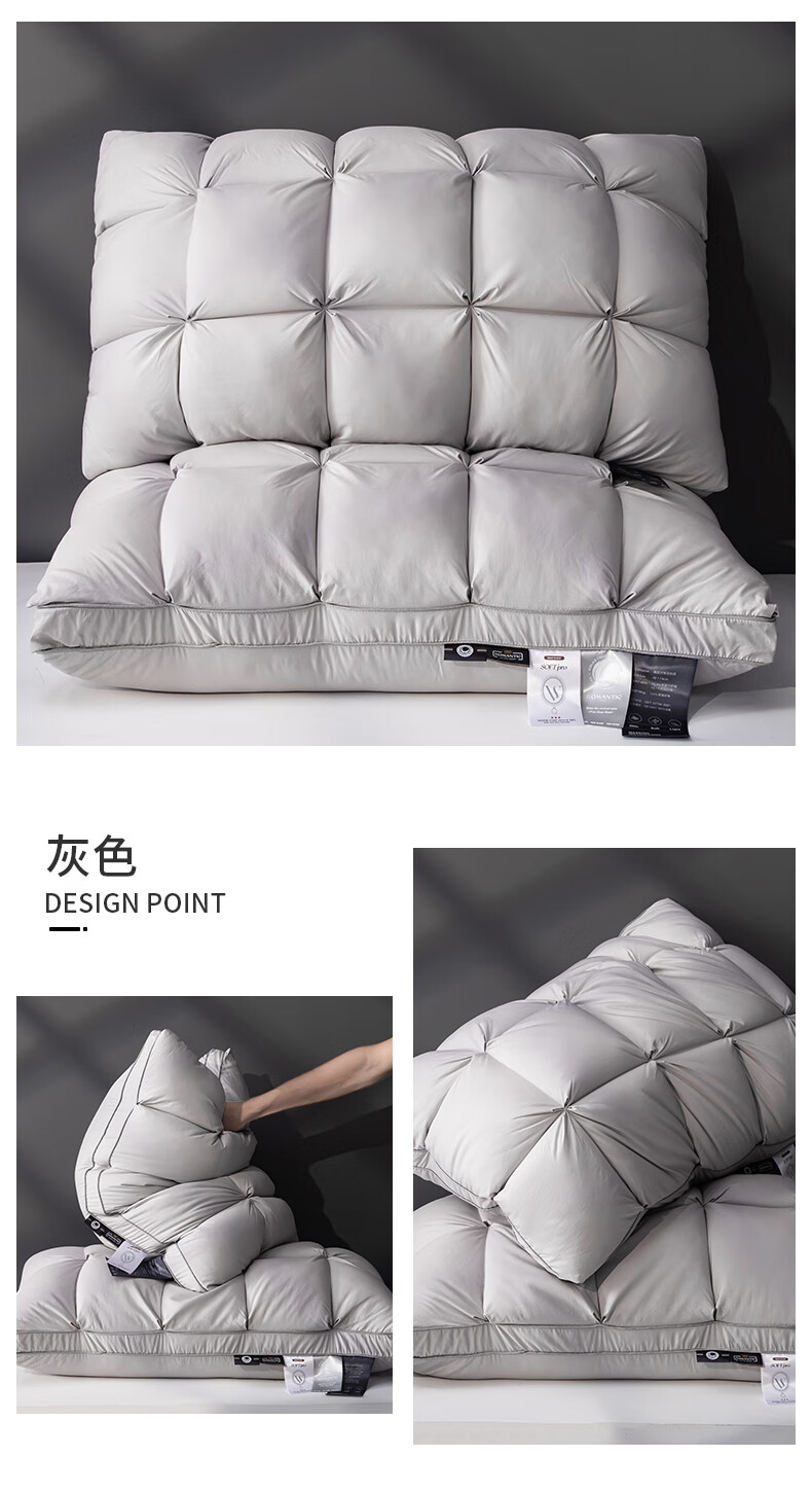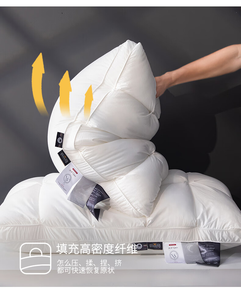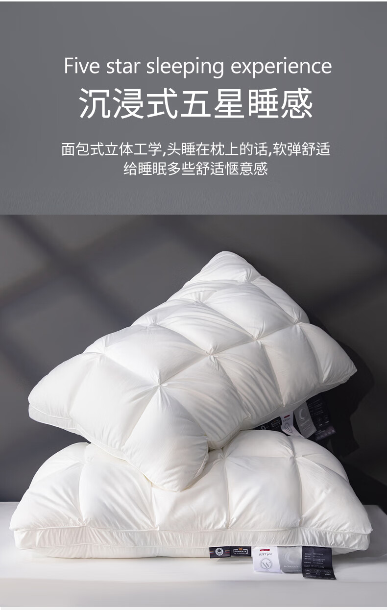 元族2025新款星级方格酒店羽丝绒枕枕头枕芯 白色/只 74cm 48*