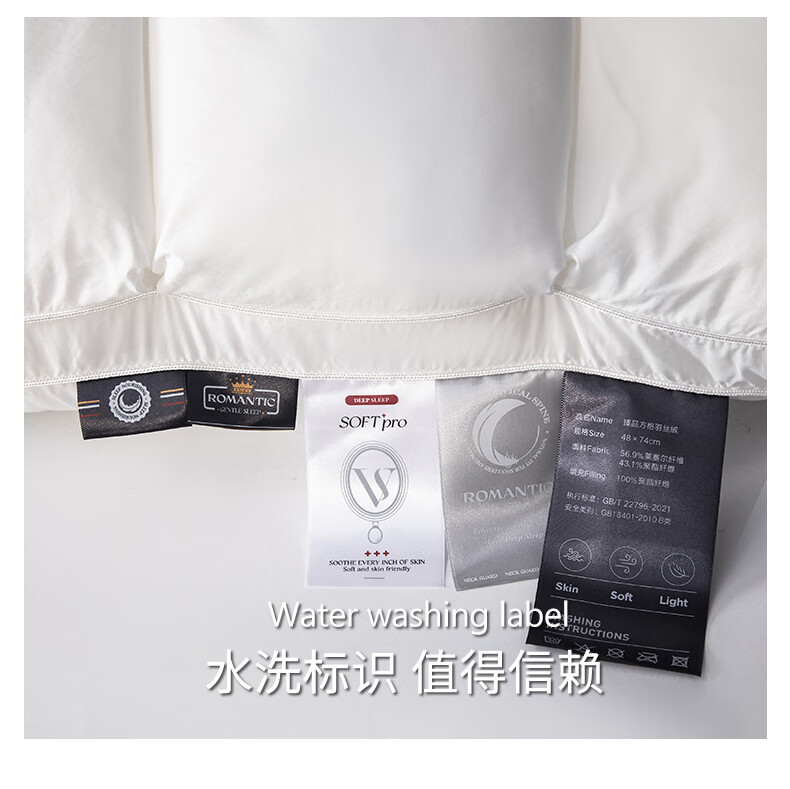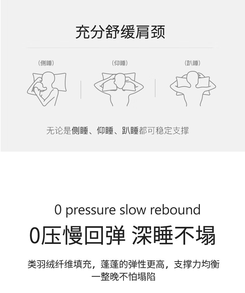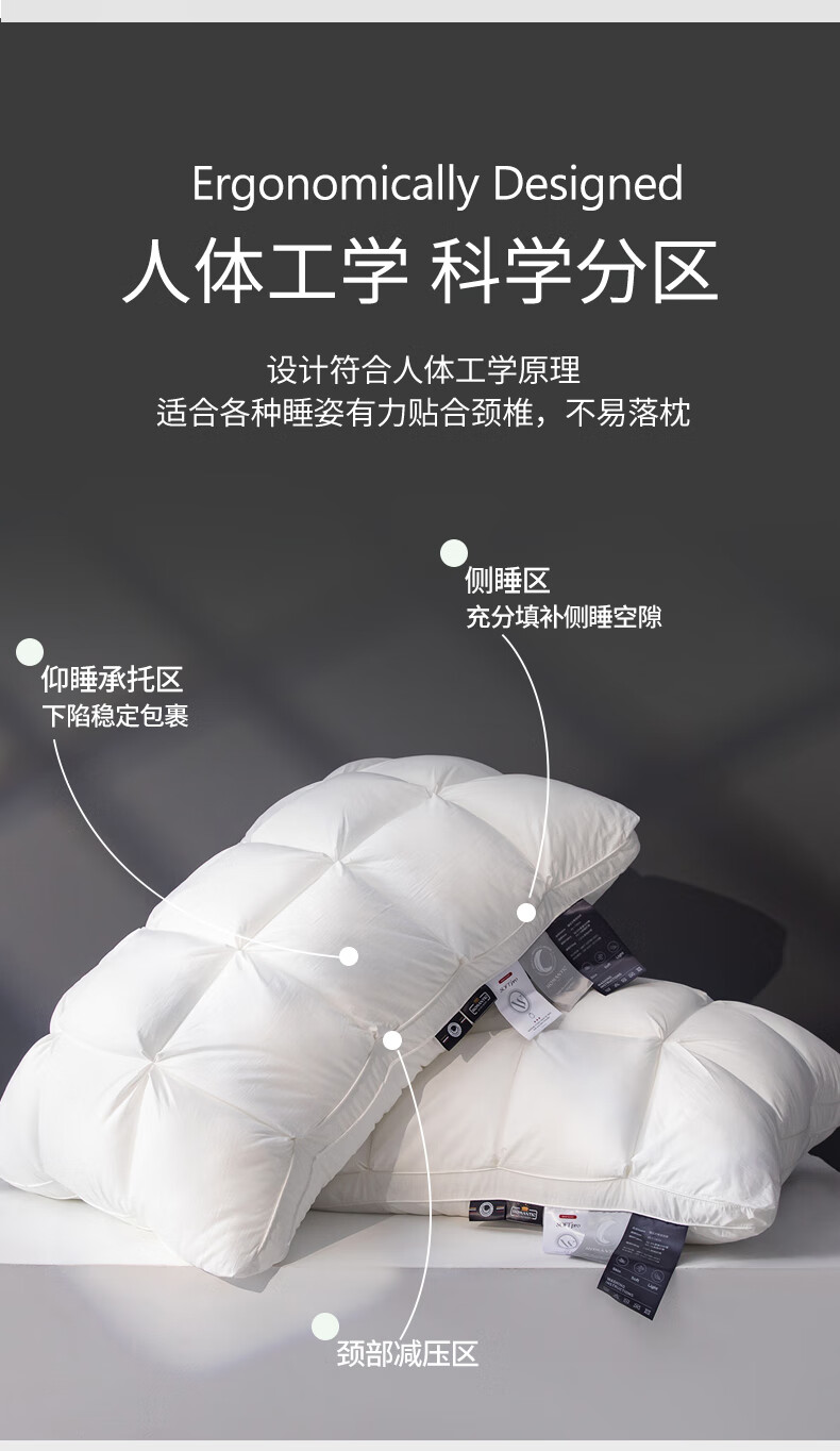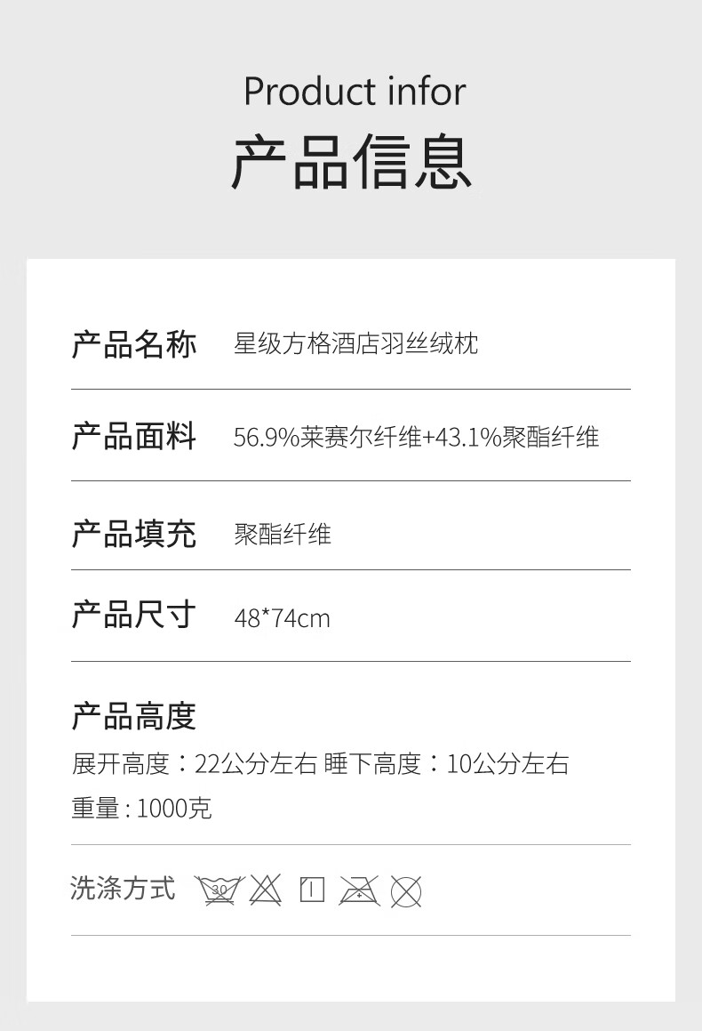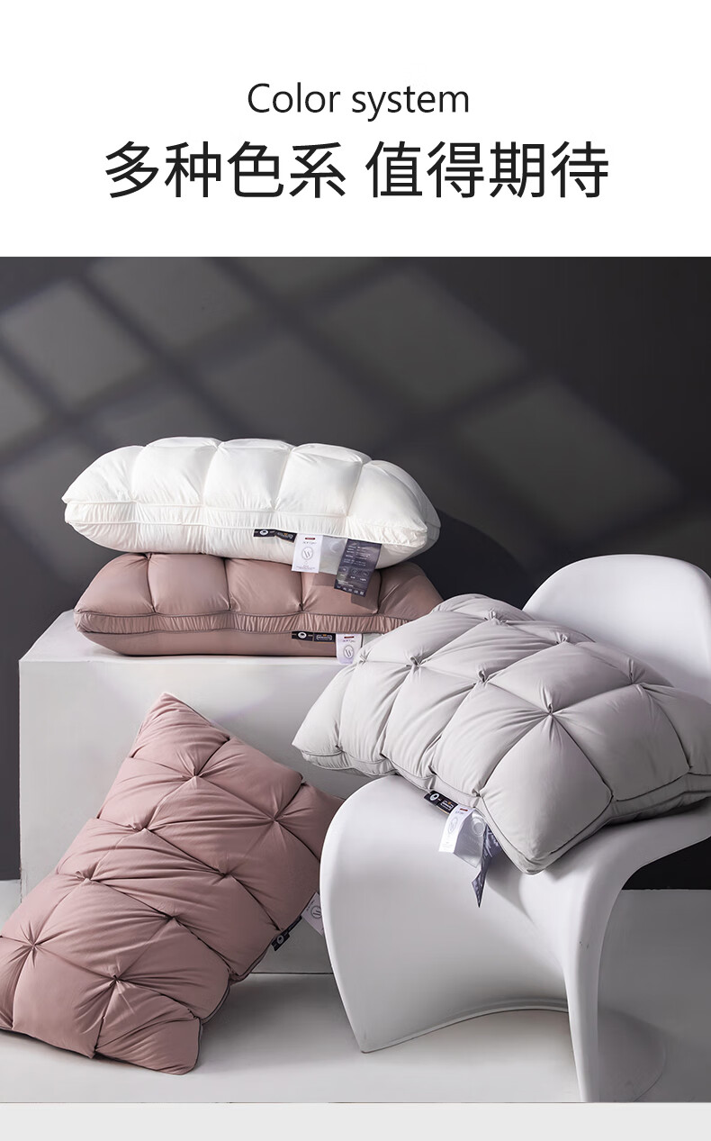 元族2025新款星级方格酒店羽丝绒枕枕头枕芯 白色/只 74cm 48*
