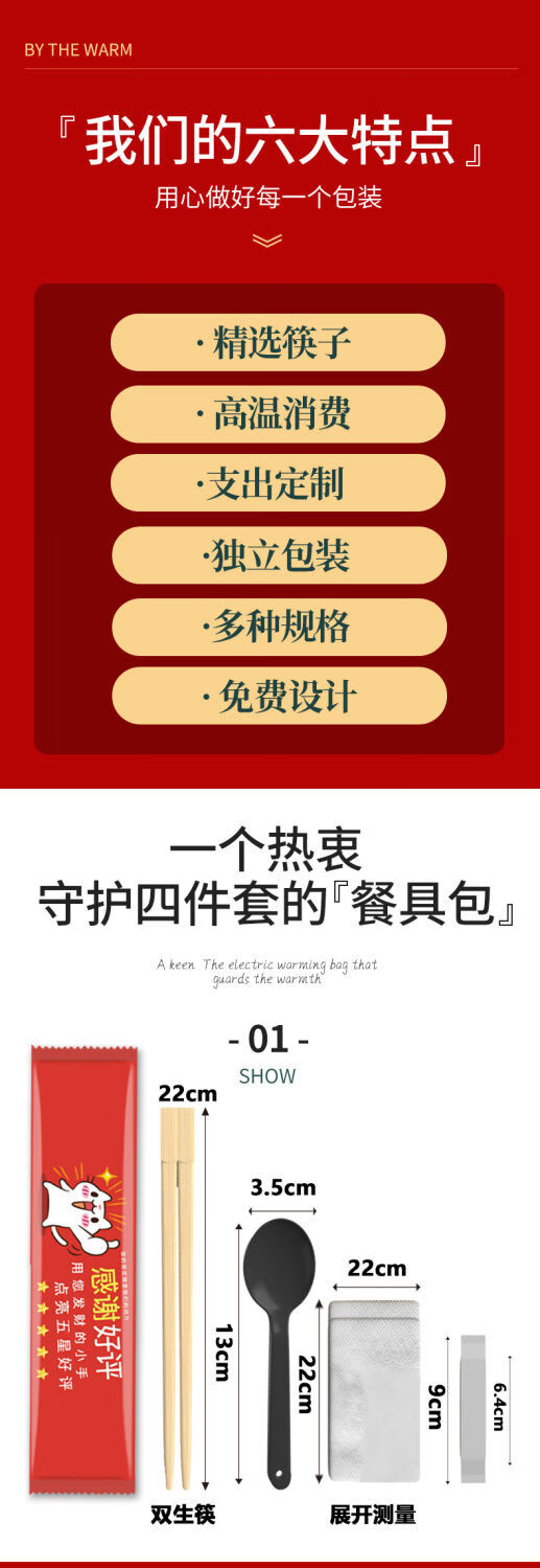 简漾一次性筷子高档牛皮纸餐具四件套定制四合一勺子外卖餐包商用量大 无印刷纯色牛皮纸包装 100套