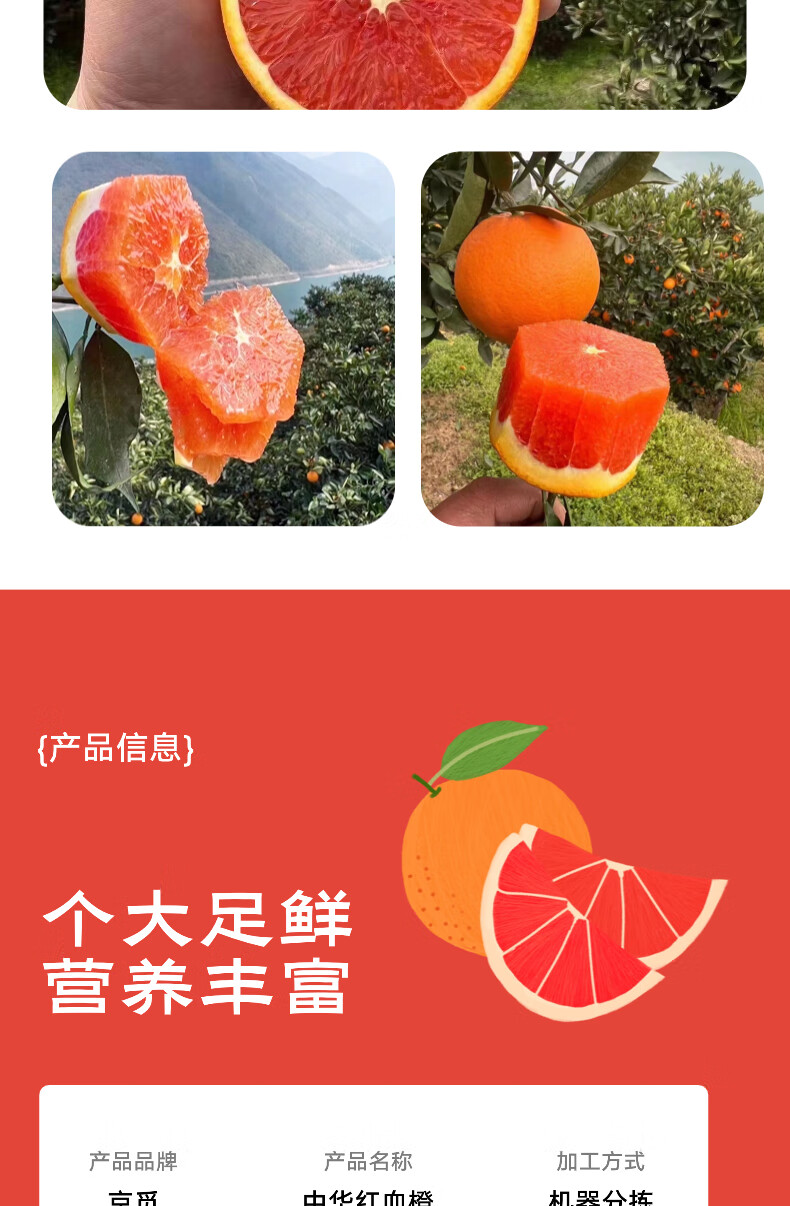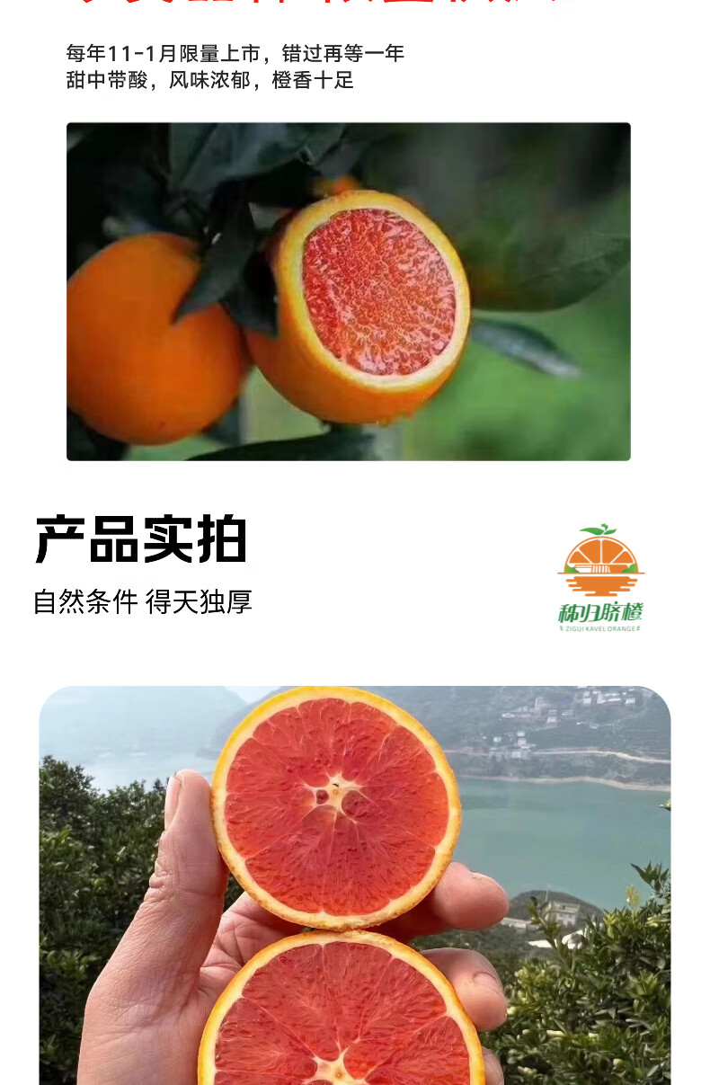 京觅秭归中华红血橙 净重4.5斤 单果150g+新鲜采摘源头直发包邮